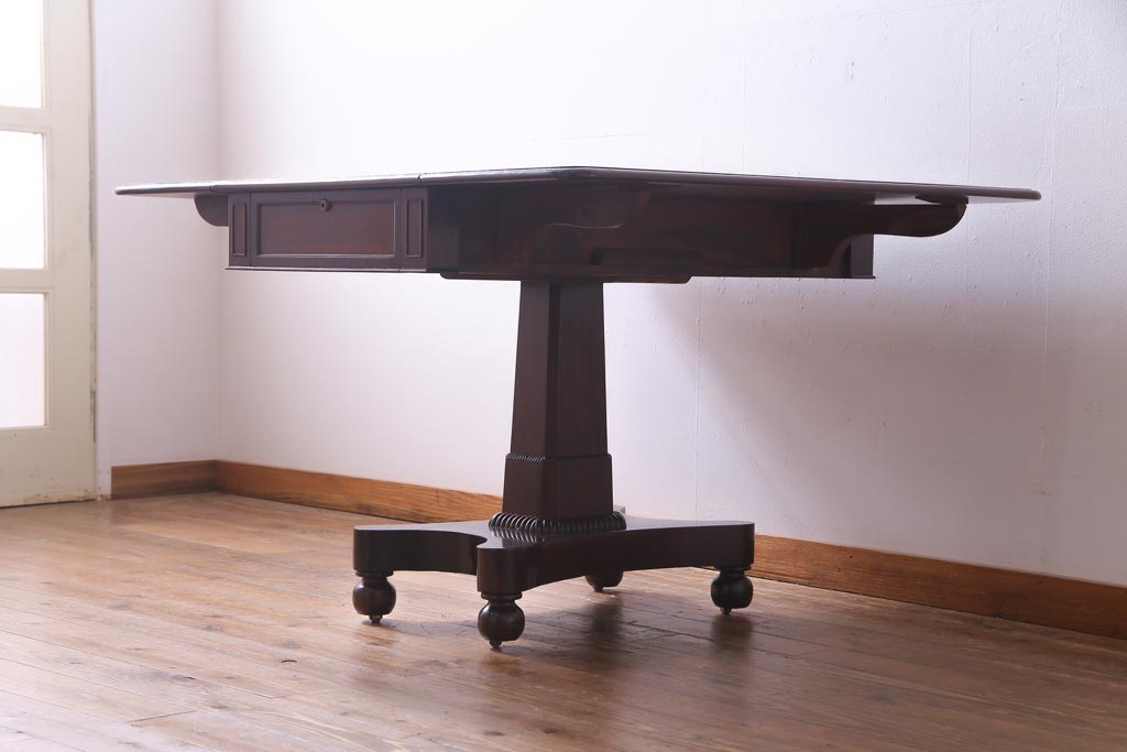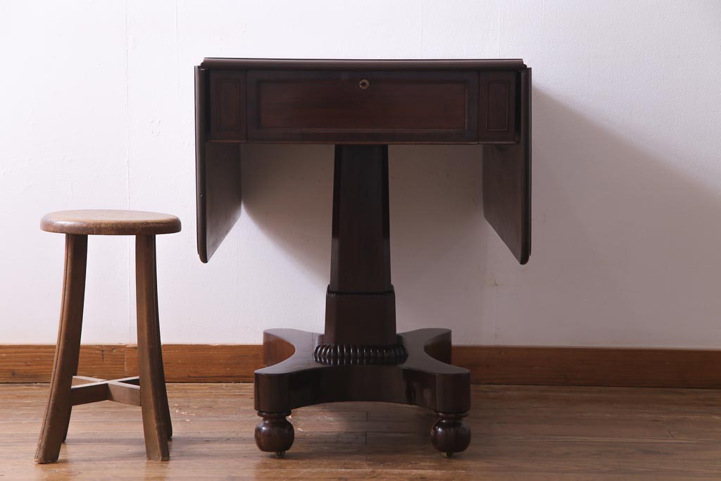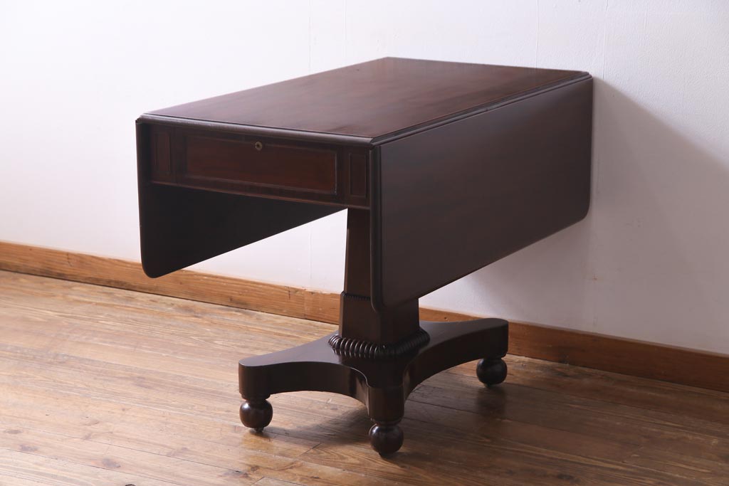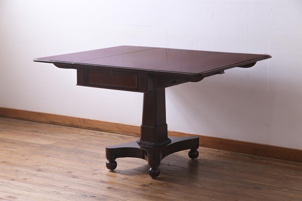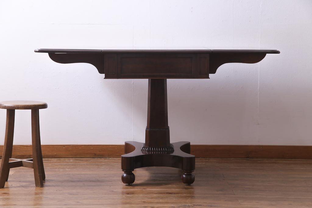 ラフジュ工房> テーブル> エクステンションテーブル > アンティーク家具 イギリスアンティーク マホガニー材 脚が個性的なバタフライテーブル(ドロップリーフテーブル)