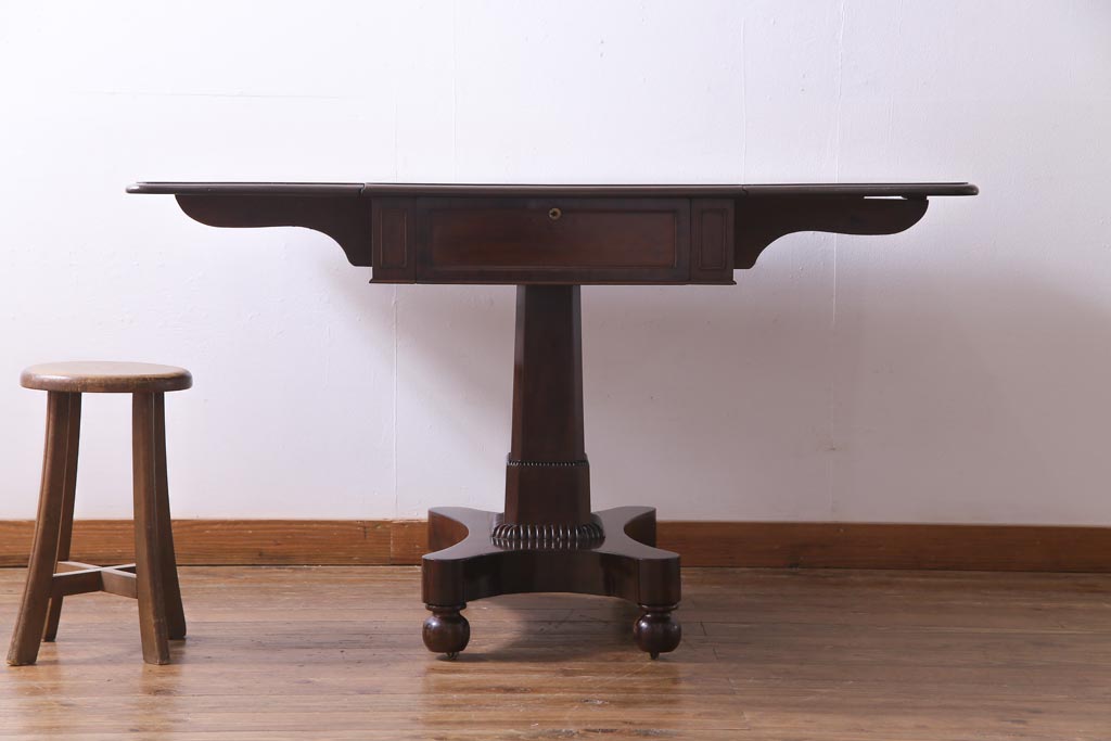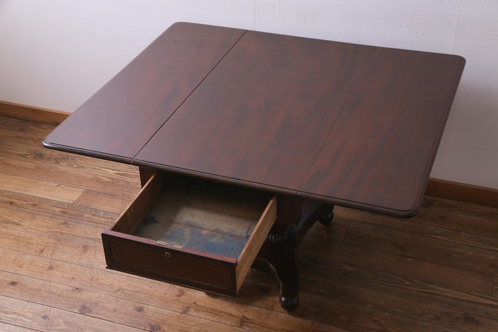 アンティーク家具 イギリスアンティーク マホガニー材 脚が個性的なバタフライテーブル(ドロップリーフテーブル)
