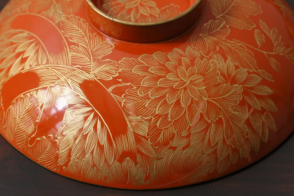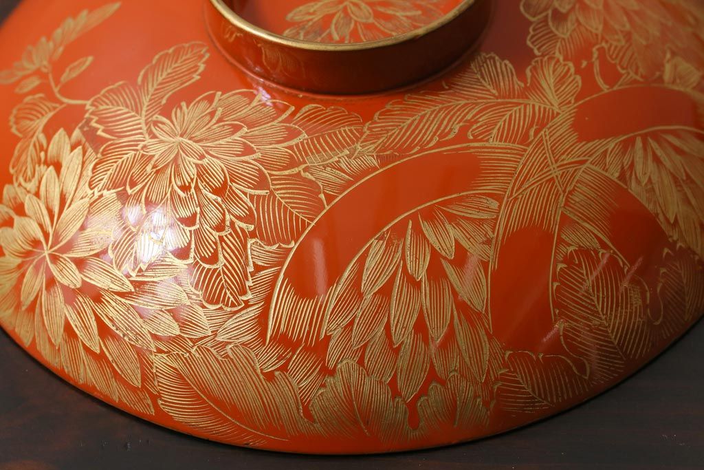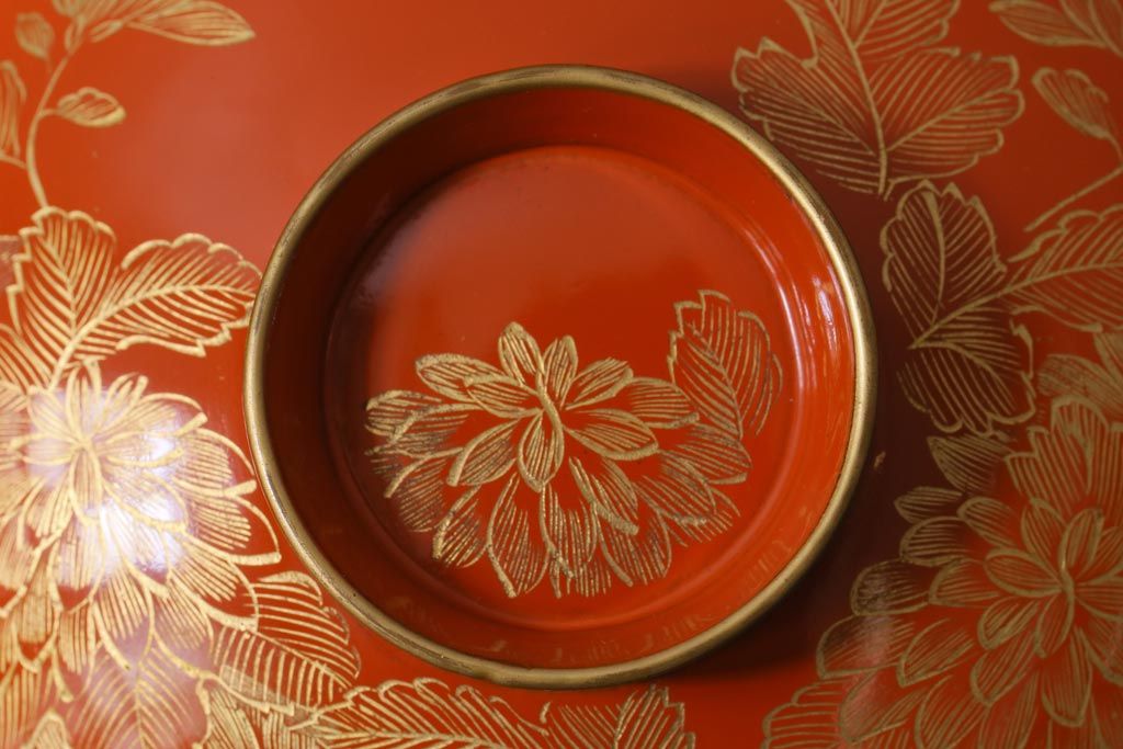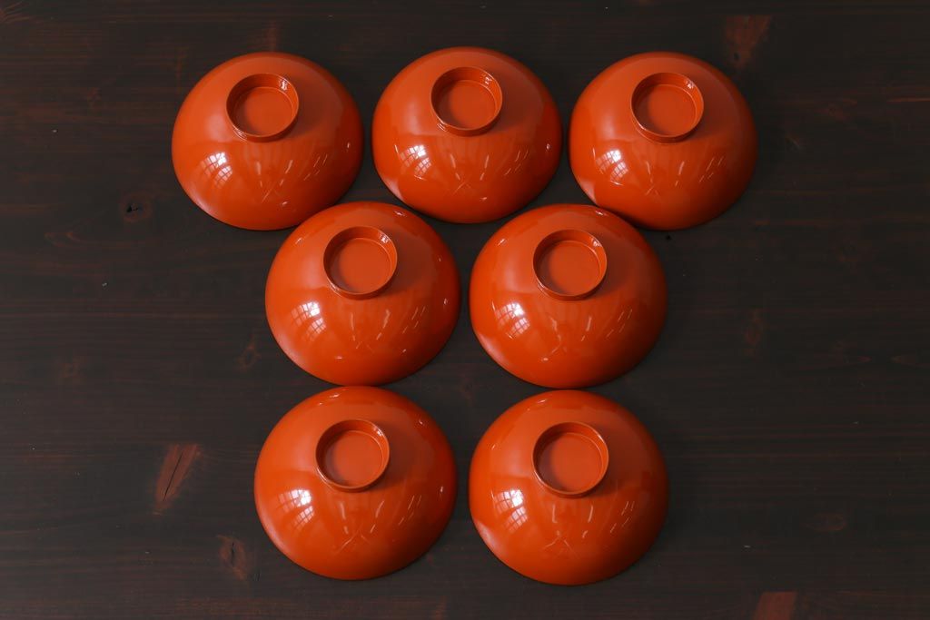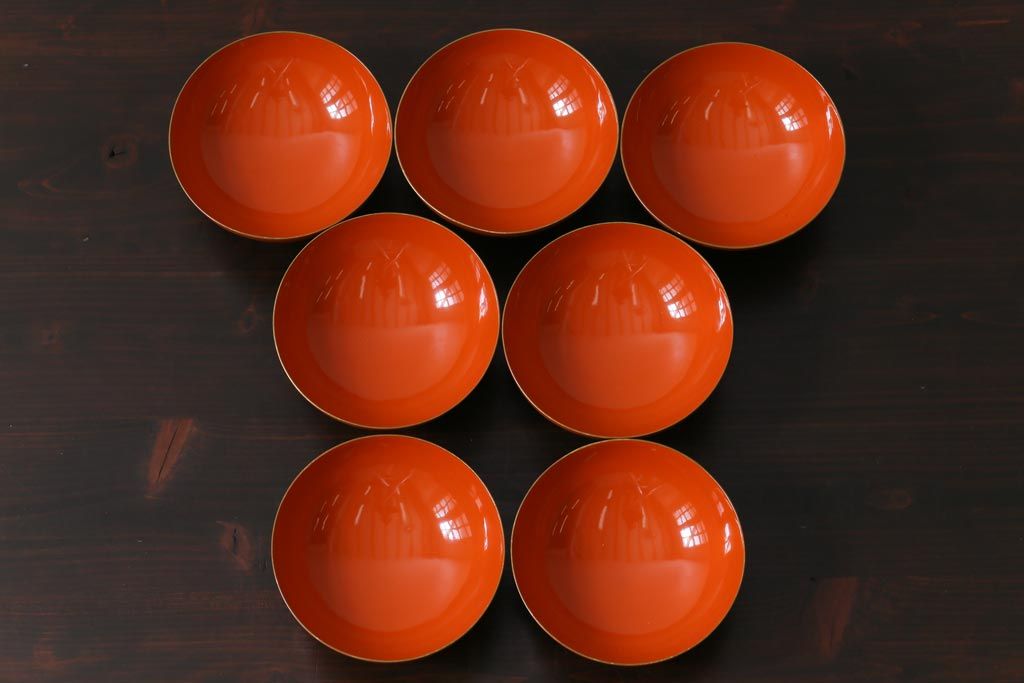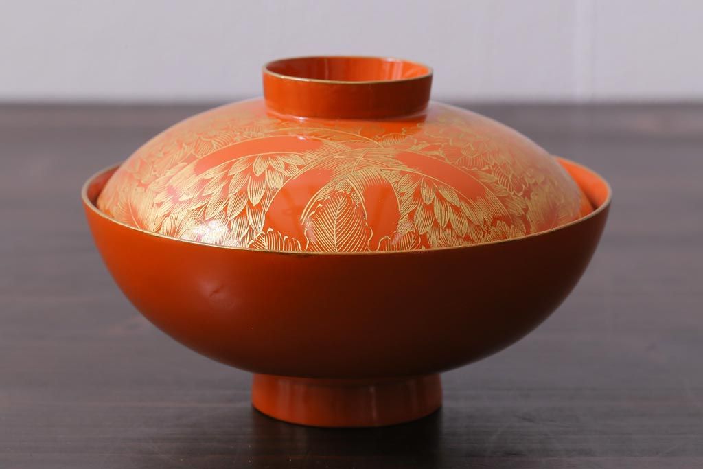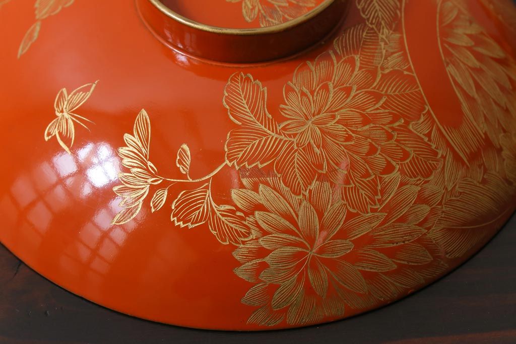 ラフジュ工房> 和食器・茶道具> お椀・茶碗 > 和製アンティーク 仙才型 沈金 蝶と菊 木製 蓋付きお椀7個セット(漆器)