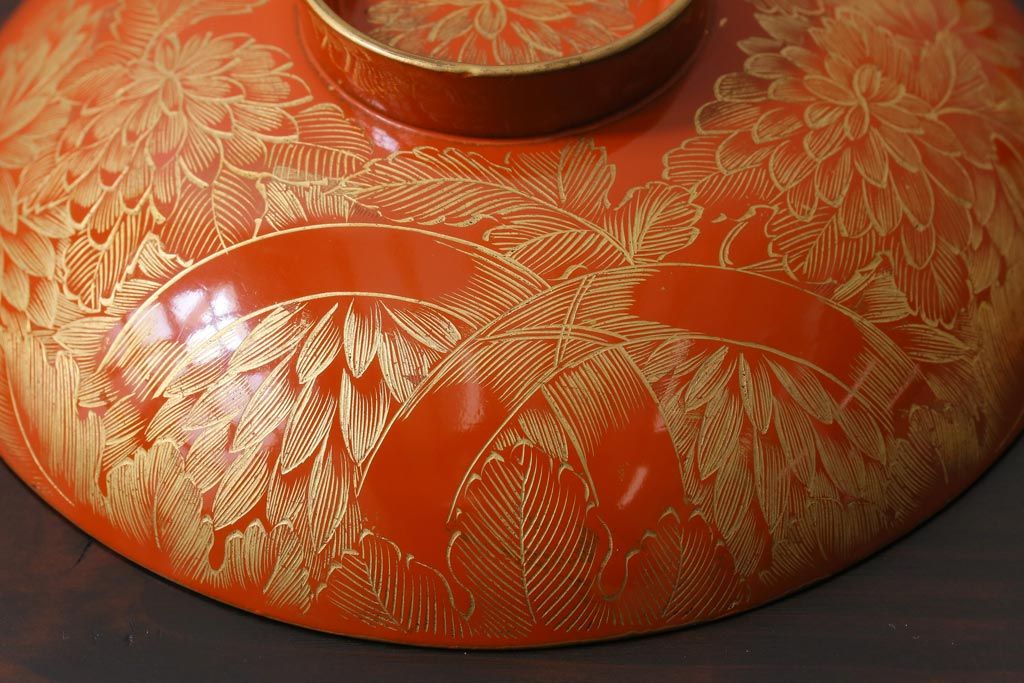 ラフジュ工房> 骨董・美術品> 骨董-漆器 > 和製アンティーク 仙才型 沈金 蝶と菊 木製 蓋付きお椀7個セット(漆器)