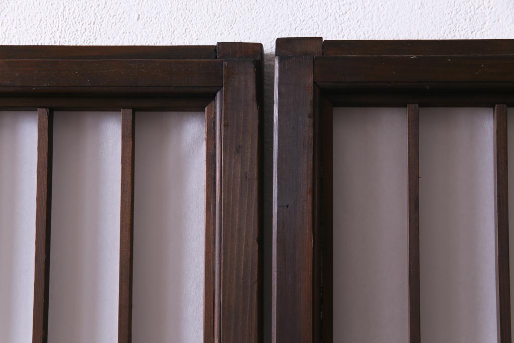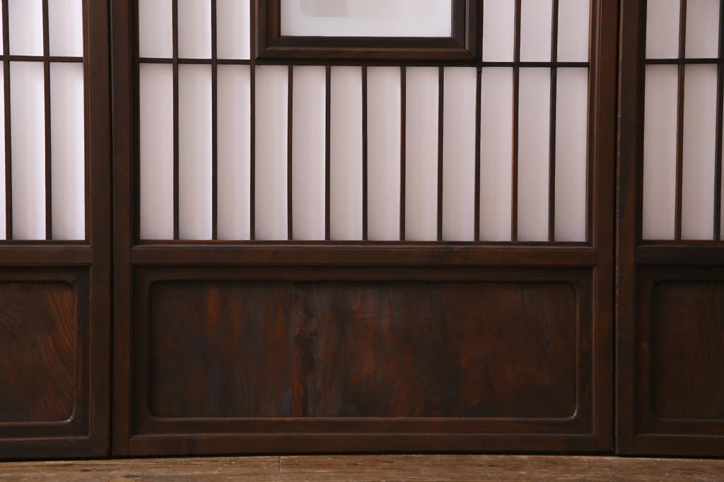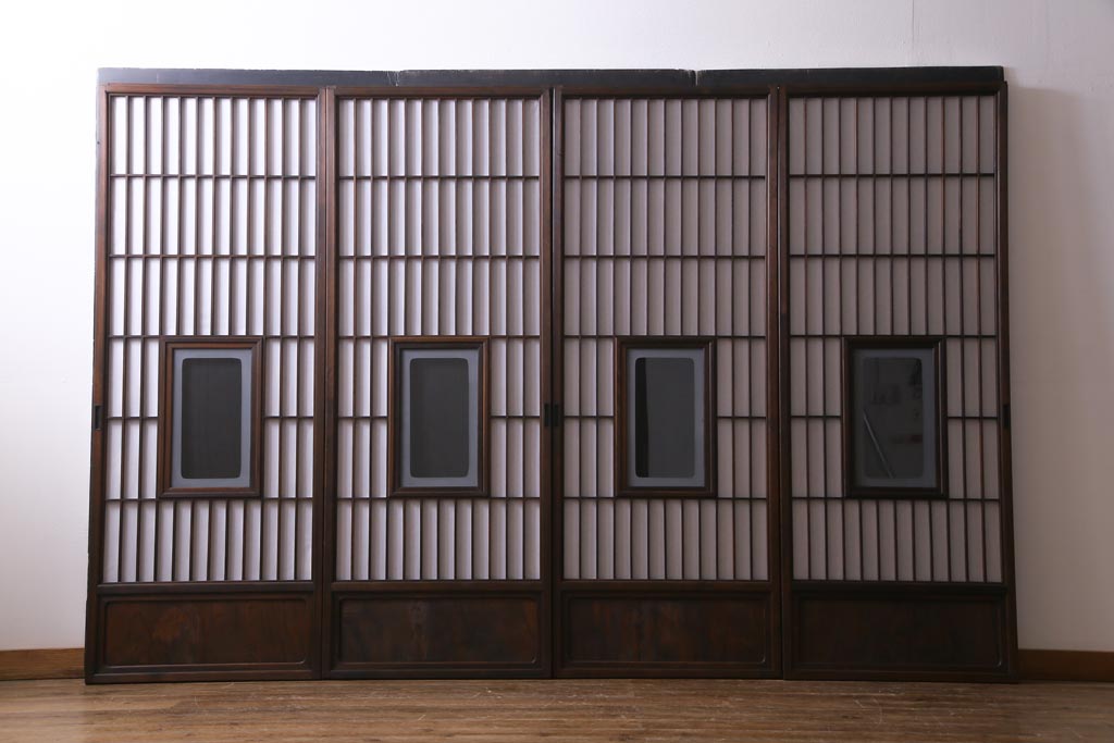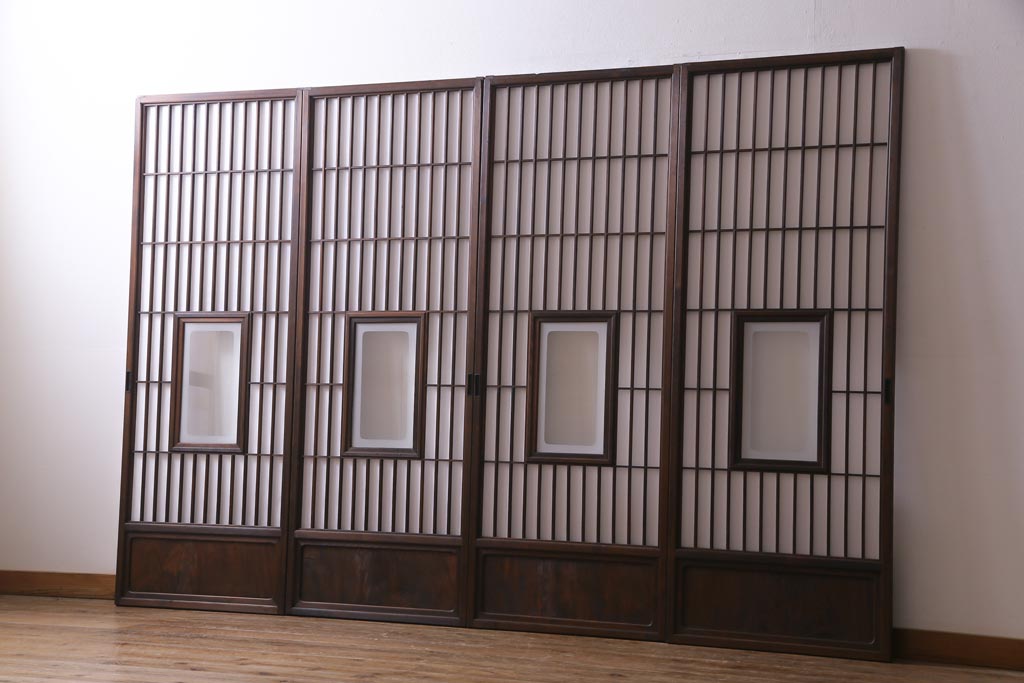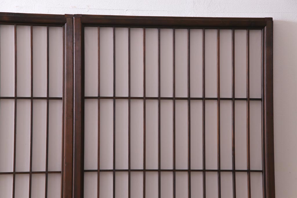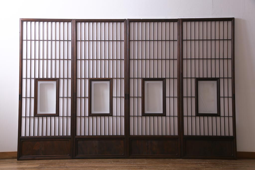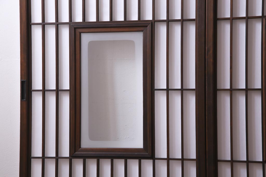 和製アンティーク 杉材 すっきりとした格子が美しい額入り障子戸4枚セット(引き戸、建具)