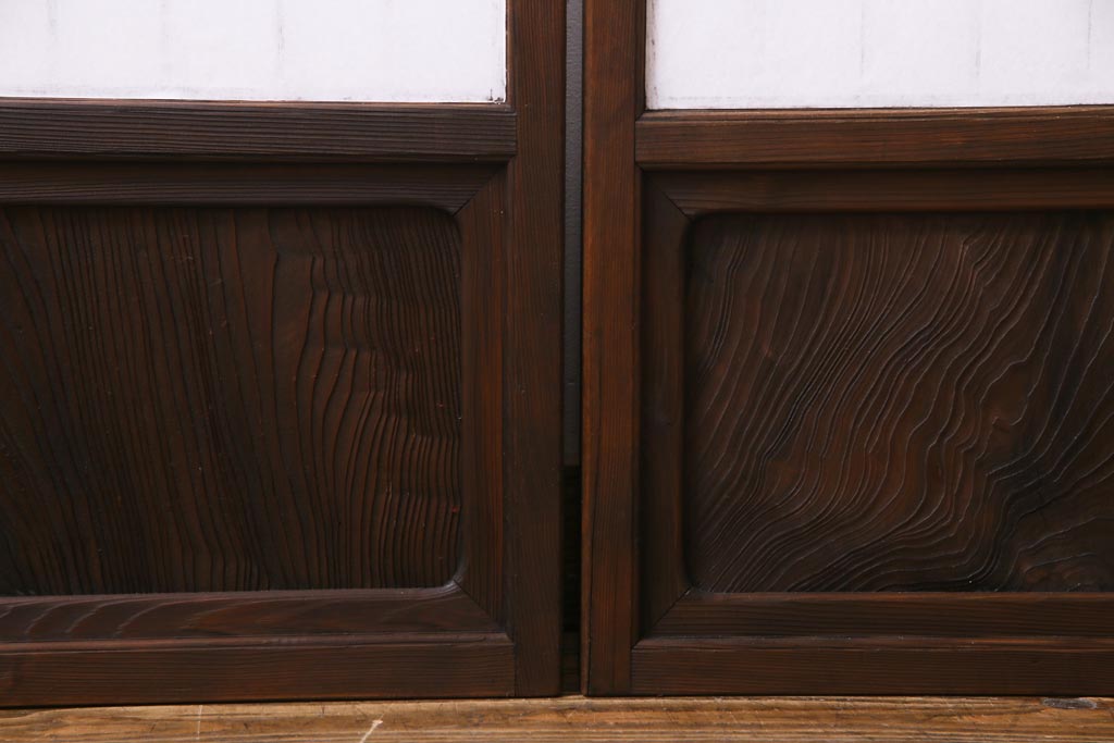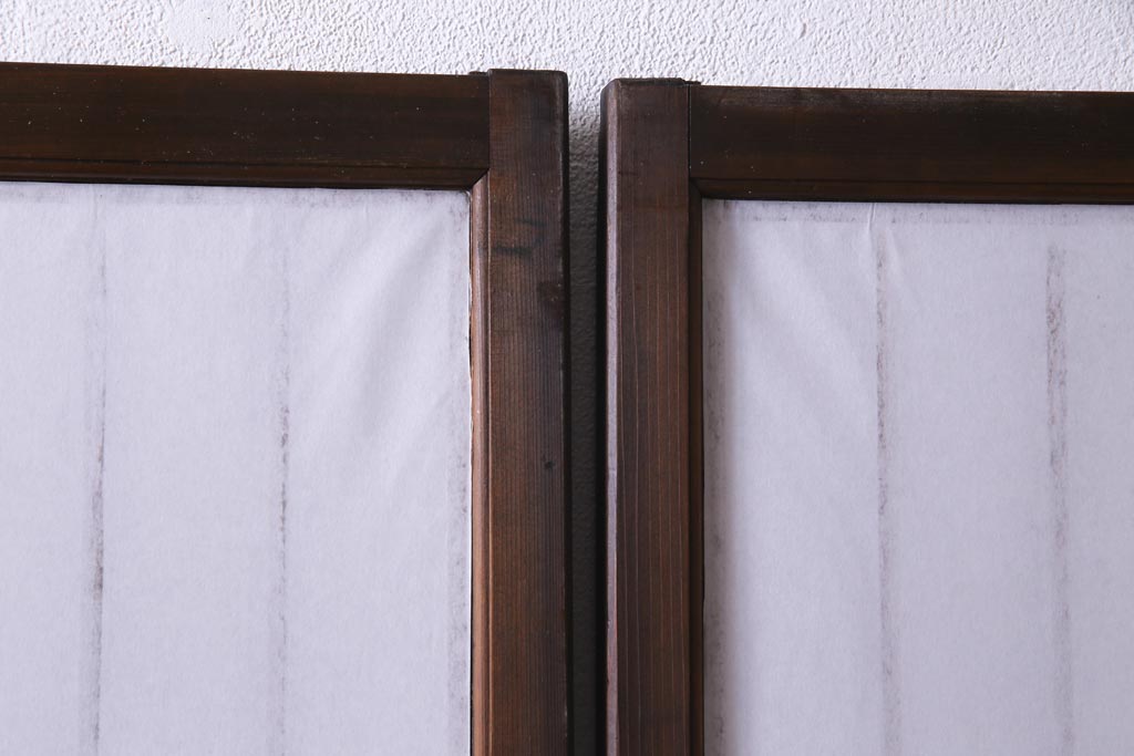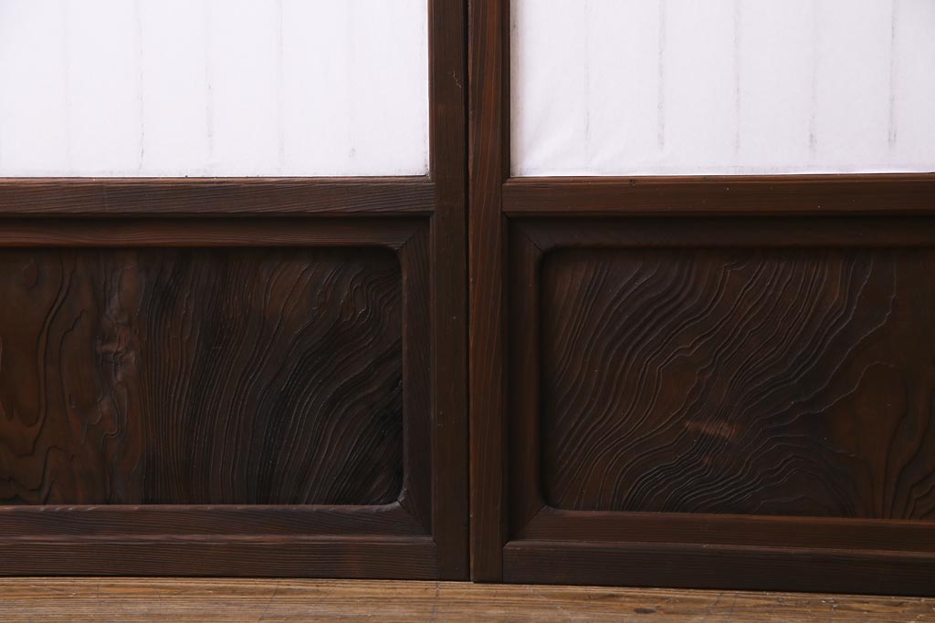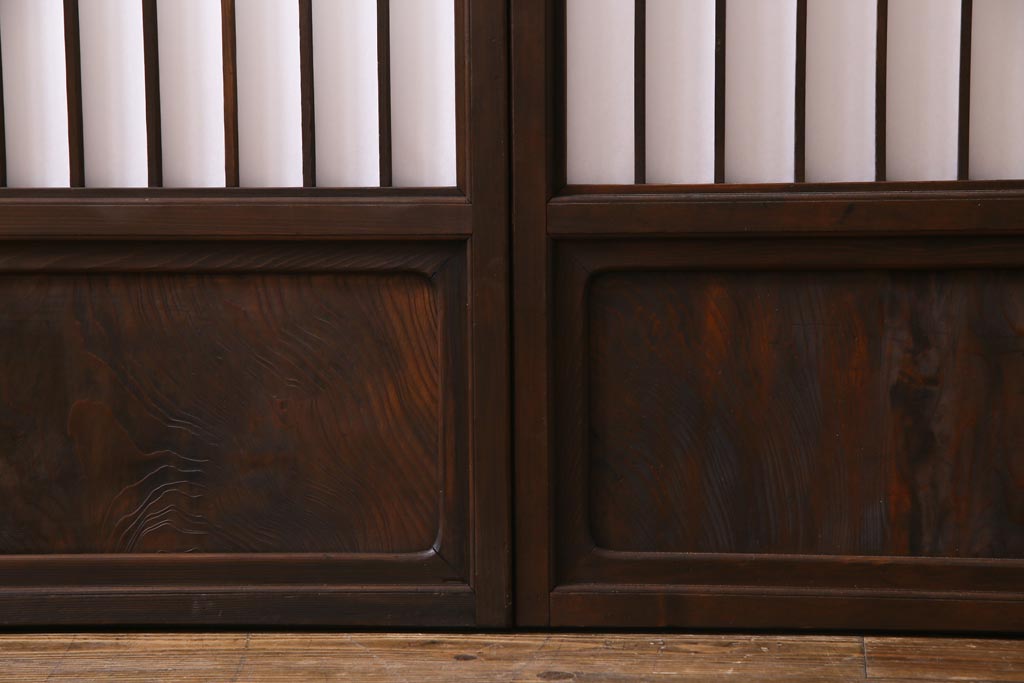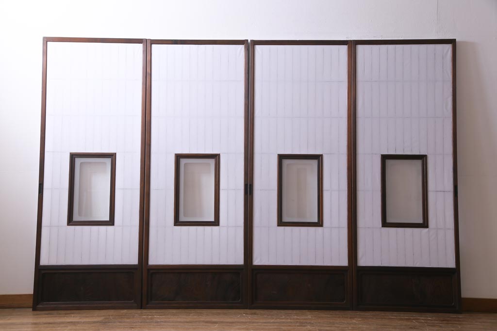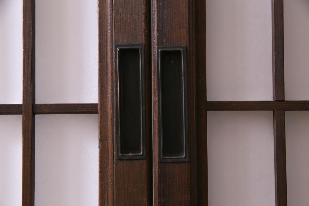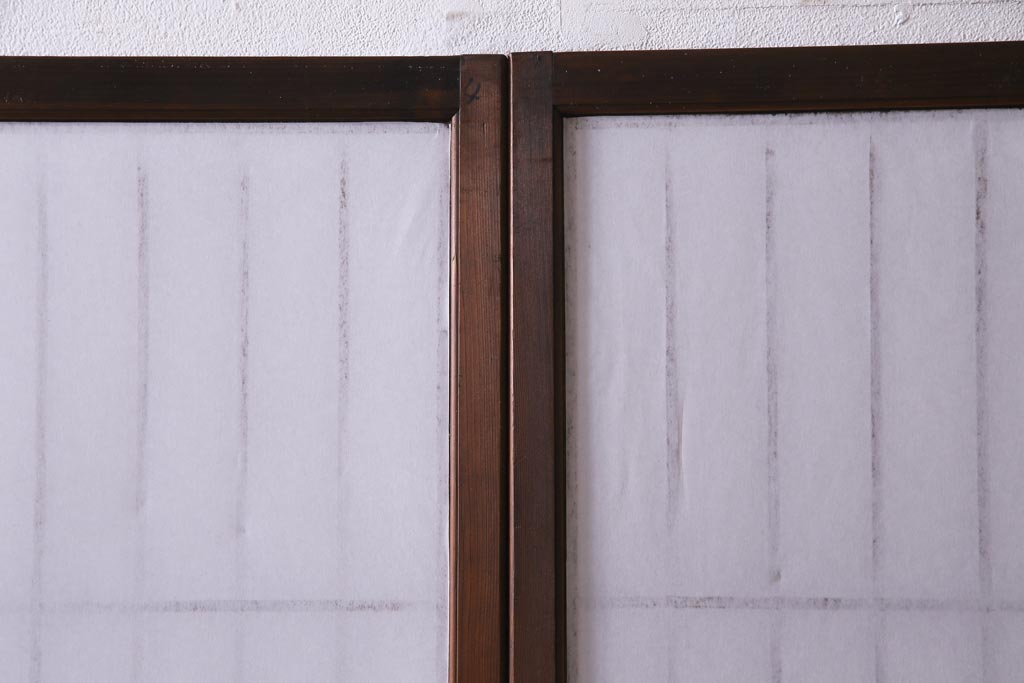 和製アンティーク 杉材 すっきりとした格子が美しい額入り障子戸4枚セット(引き戸、建具)