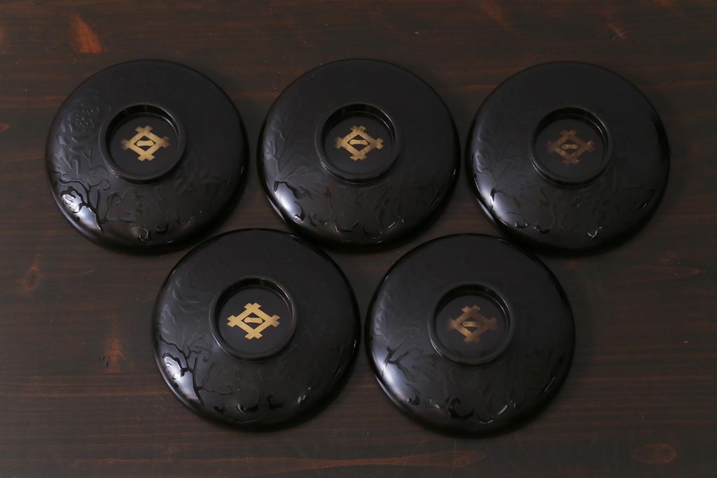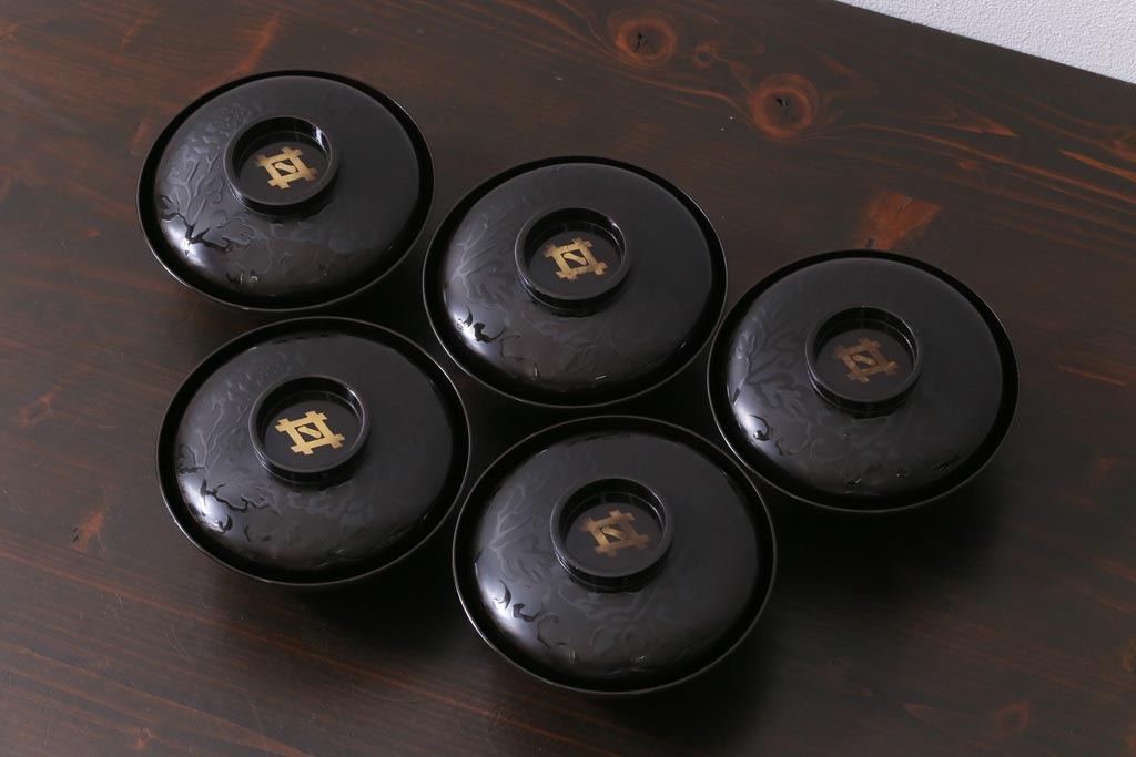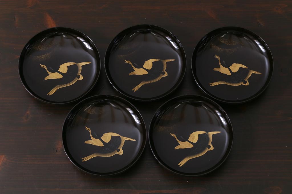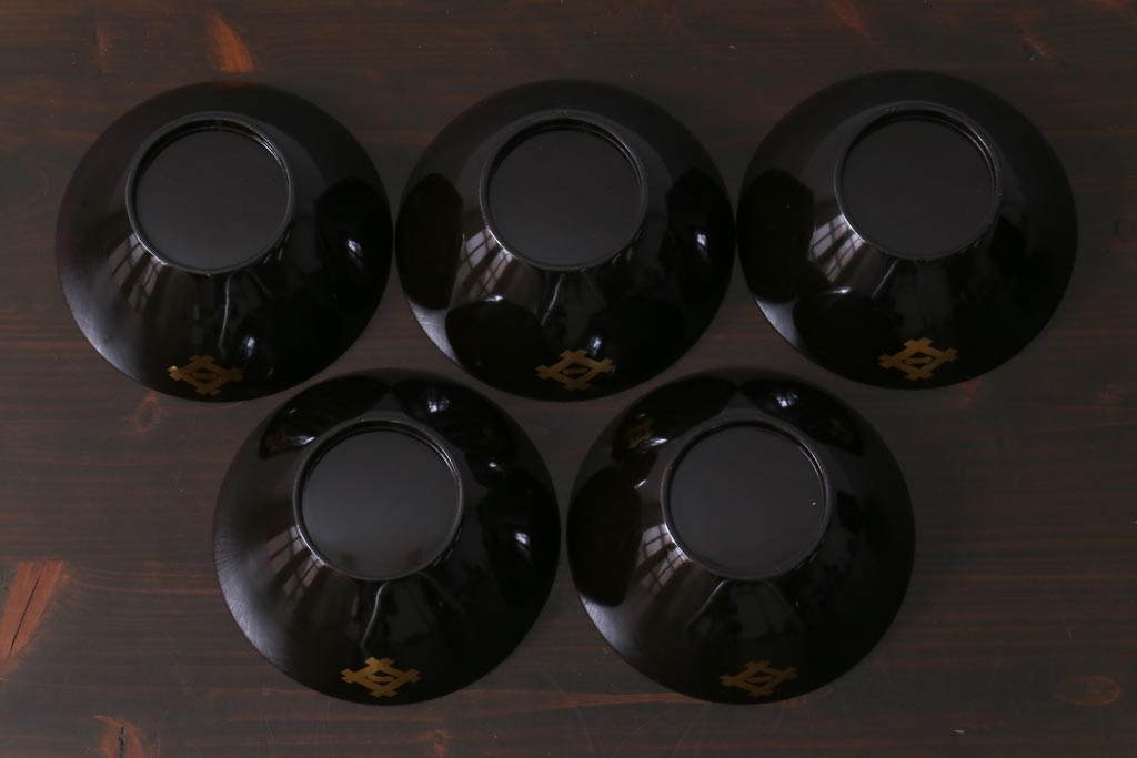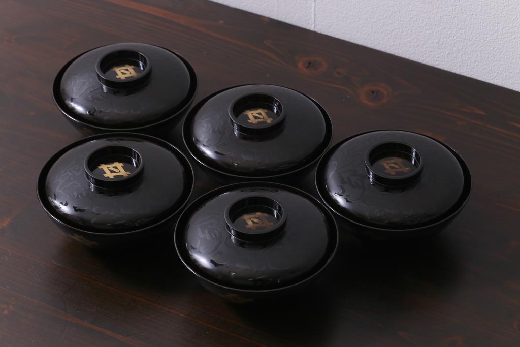 ラフジュ工房> 和食器・茶道具> お椀・茶碗 > 和製アンティーク 蒔絵 鴨 和モダンな蓋付き椀5つセット(お椀、漆器)(1)