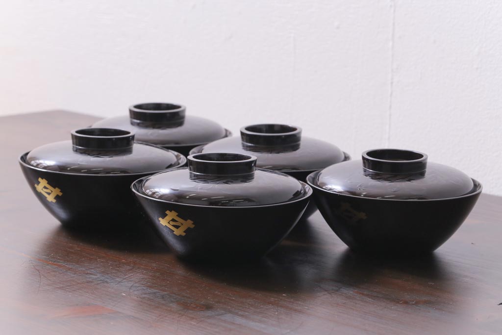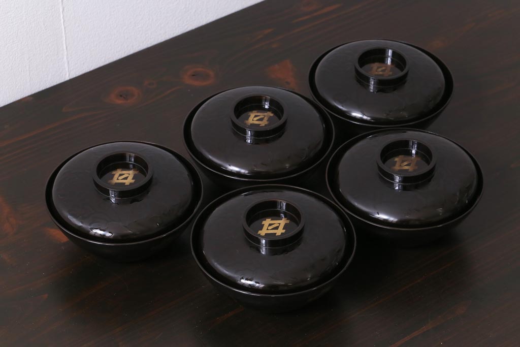 和製アンティーク 蒔絵 鴨 和モダンな蓋付き椀5つセット(お椀、漆器)(1)