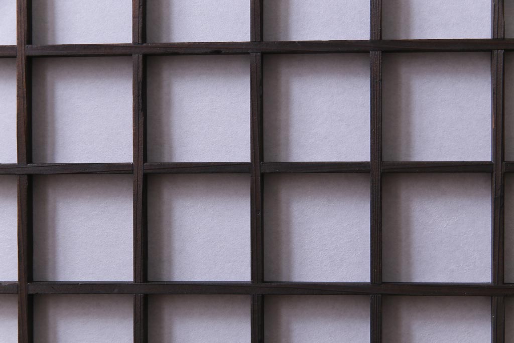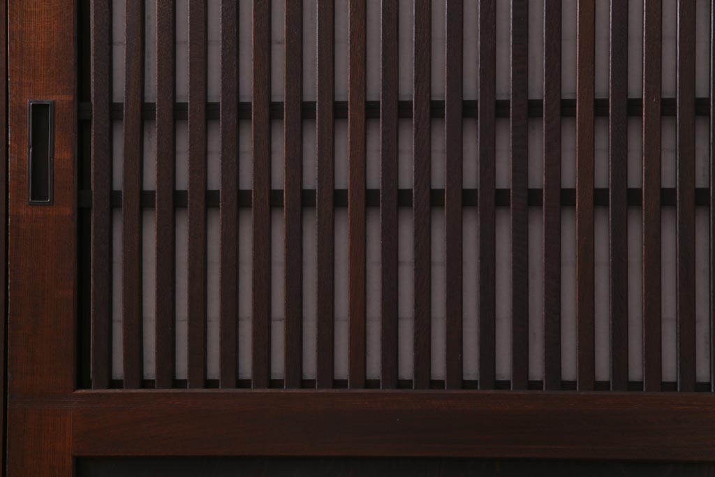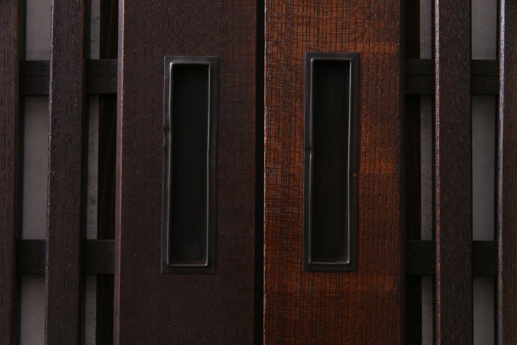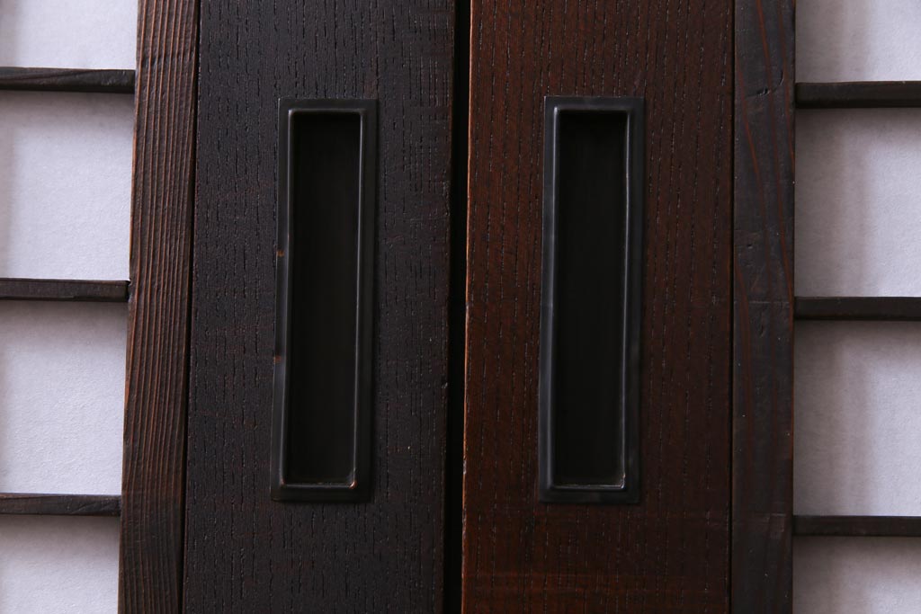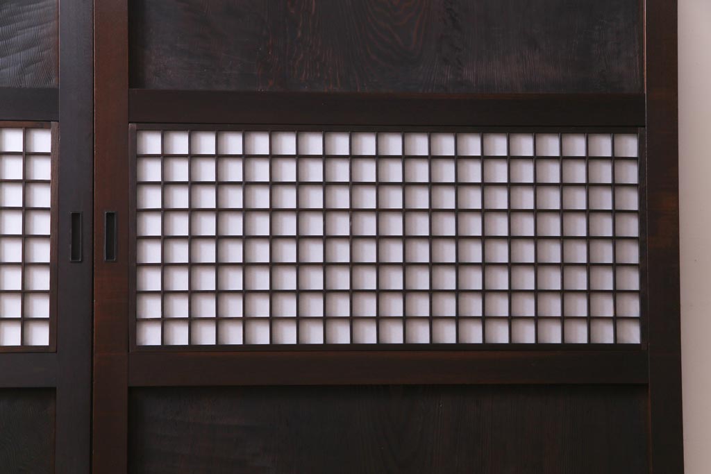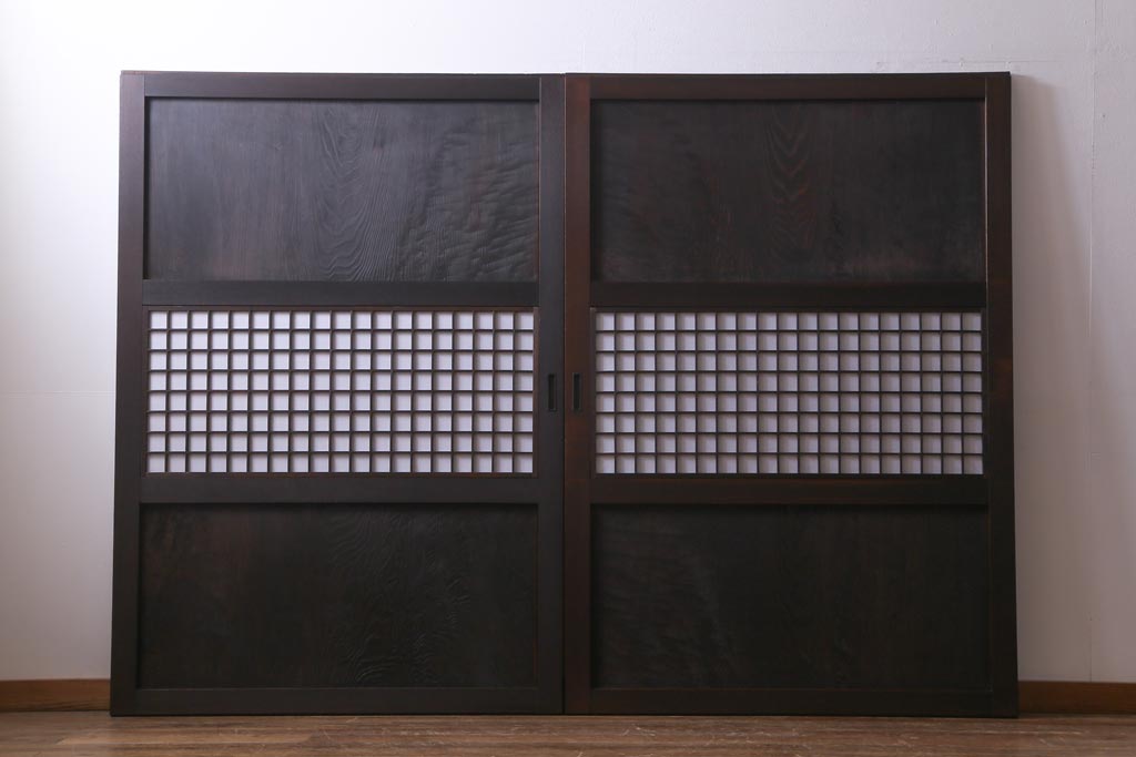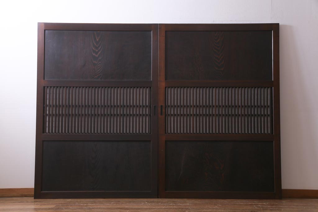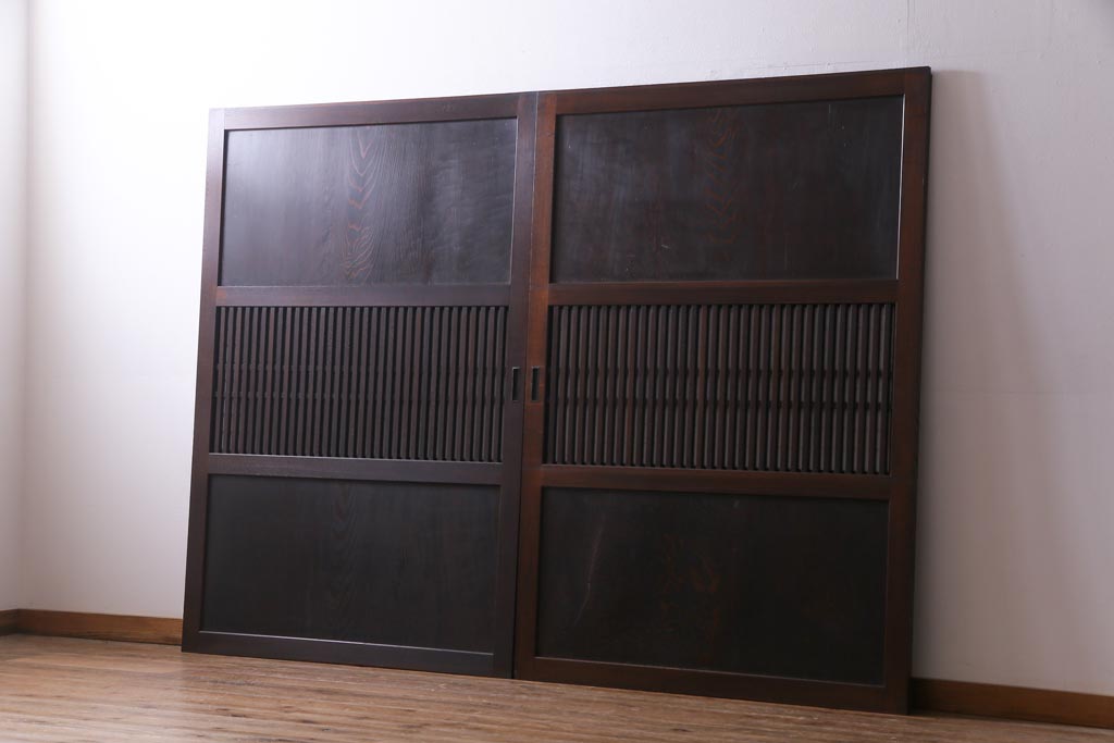 ラフジュ工房> ドア・建具> 組子建具 > 和製アンティーク ケヤキ・杉材 堅牢な雰囲気が漂う障子帯戸2枚セット(板戸、引き戸、建具)(R-035999)