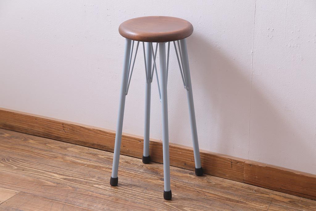 ラフジュ工房オリジナル 淡いブルーが可愛らしいペイントハイスツール(椅子)