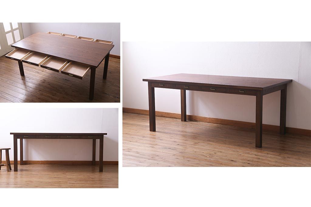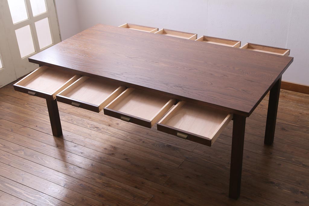 テーブル> 作業台 > ラフジュ工房オリジナル ホワイトオーク材 両面引き出し付き すっきりとした佇まいが魅力的な作業台・幅1800(ダイニングテーブル)