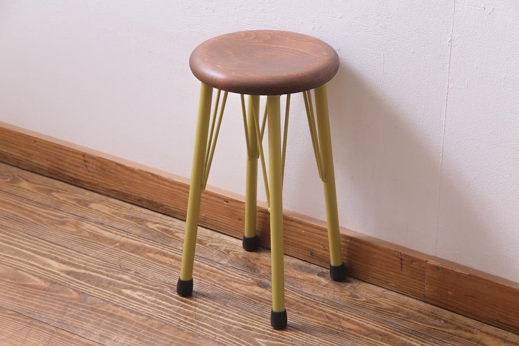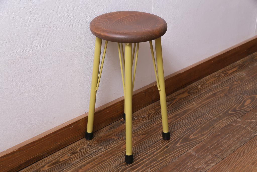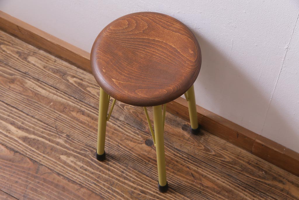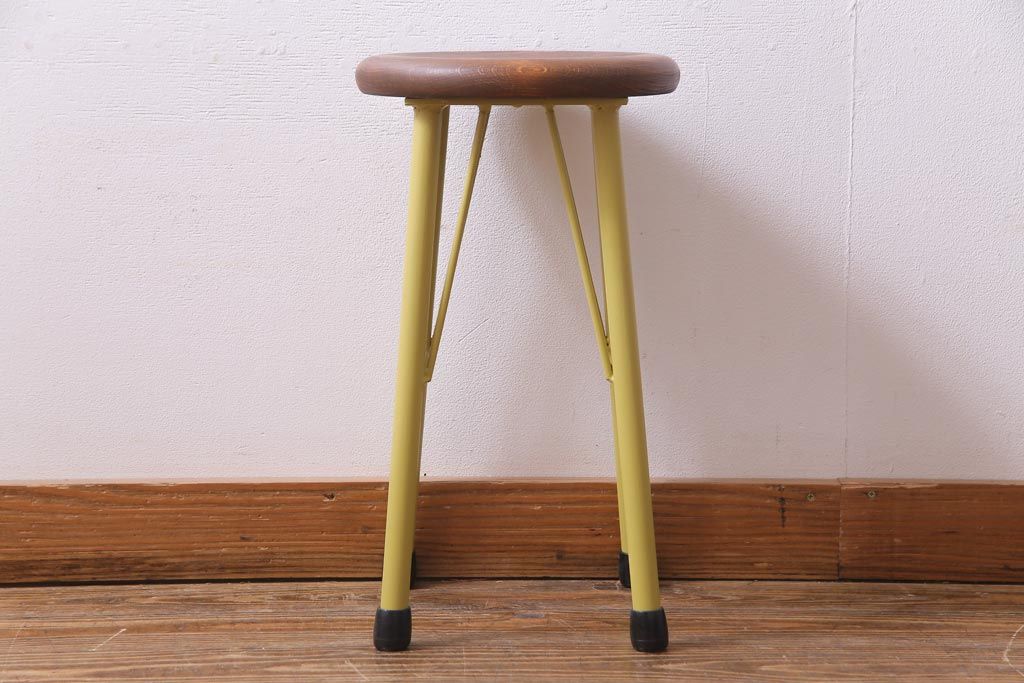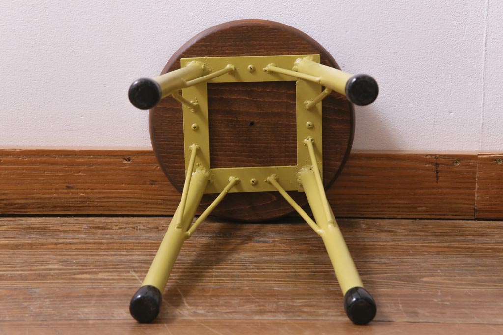 ラフジュ工房オリジナル スモーキーイエロー アイアンレッグのペイントが可愛らしい丸スツール(チェア、椅子)