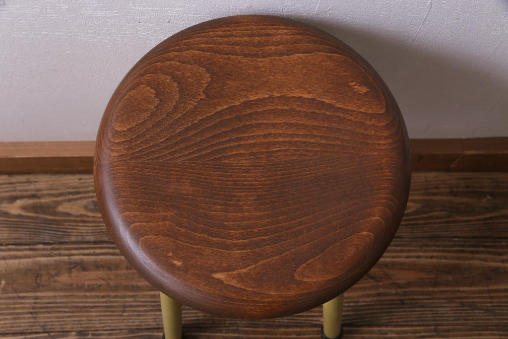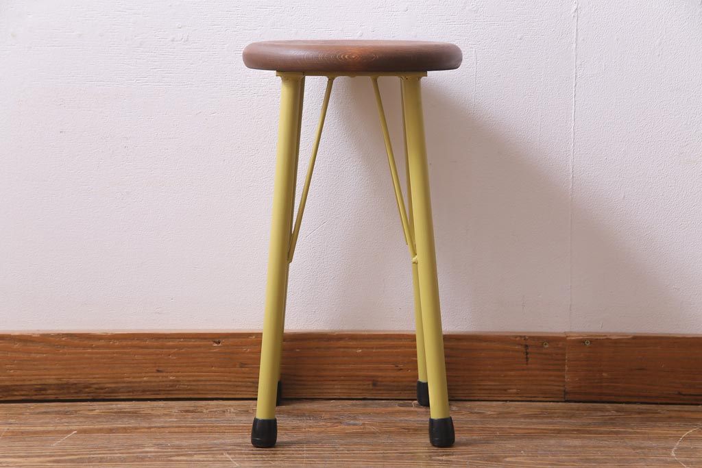 ラフジュ工房オリジナル スモーキーイエロー アイアンレッグのペイントが可愛らしい丸スツール(チェア、椅子)です。