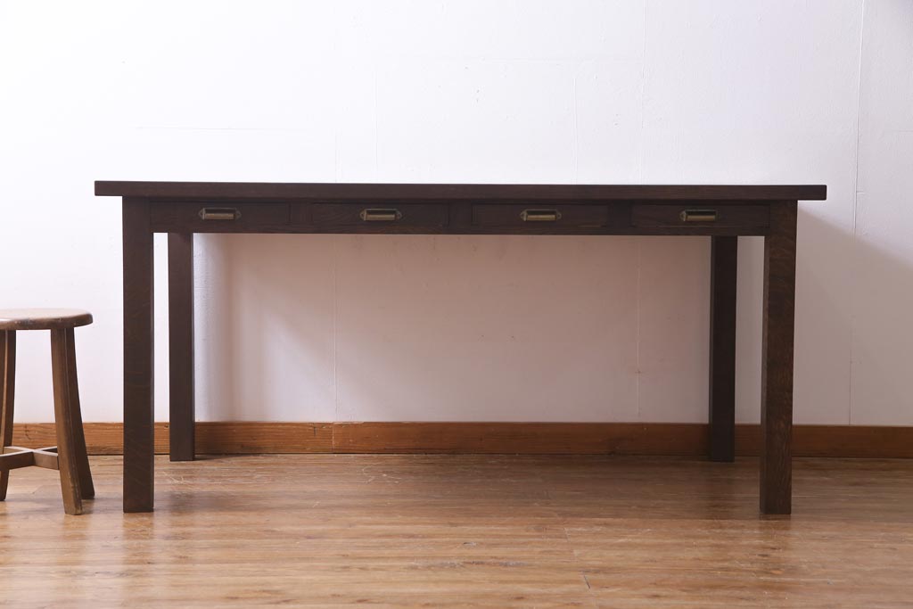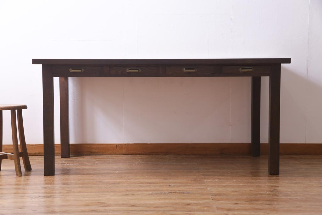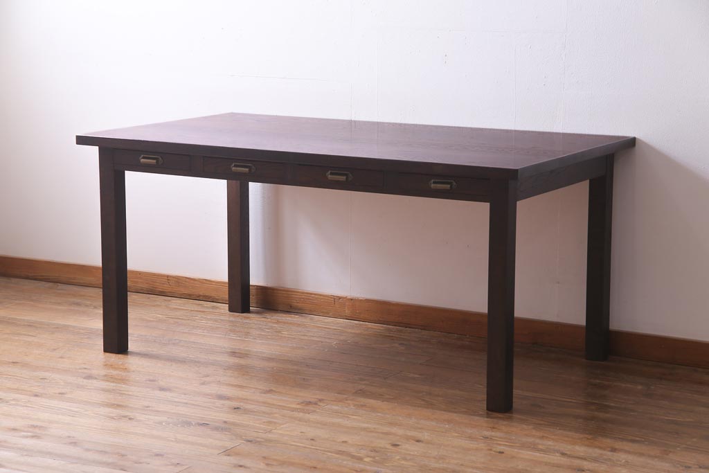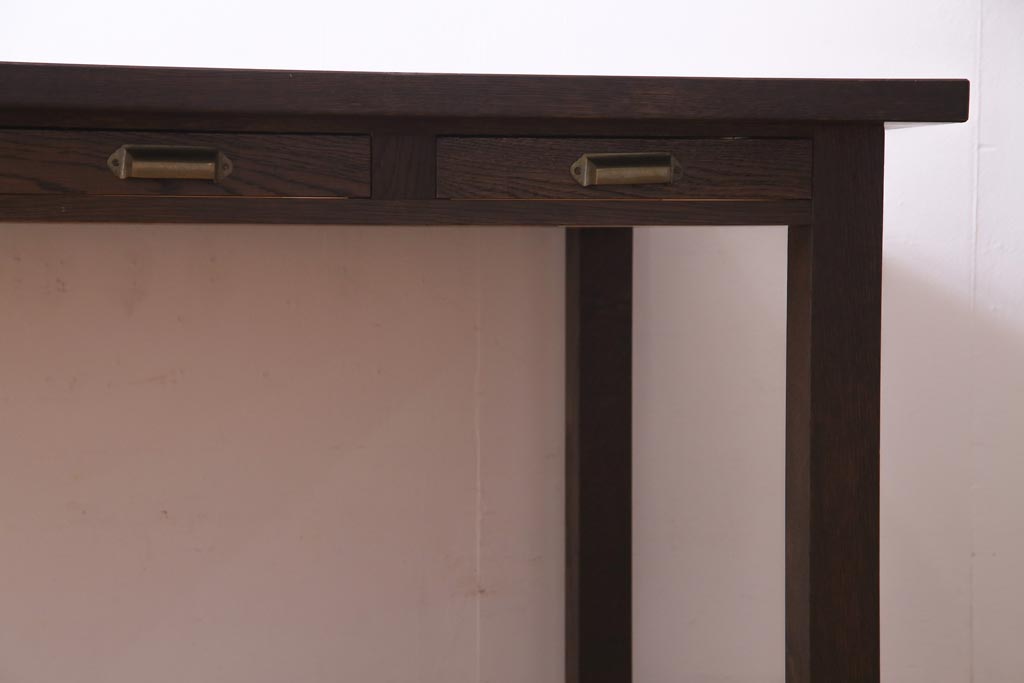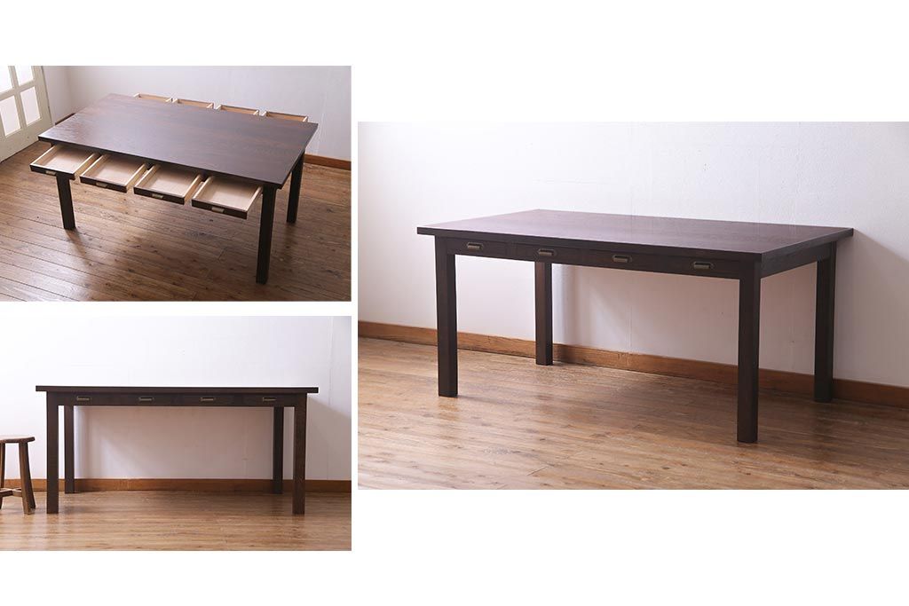 ラフジュ工房オリジナル ホワイトオーク材 両面引き出し付き 使い勝手の良い作業台・幅1600(ダイニングテーブル)