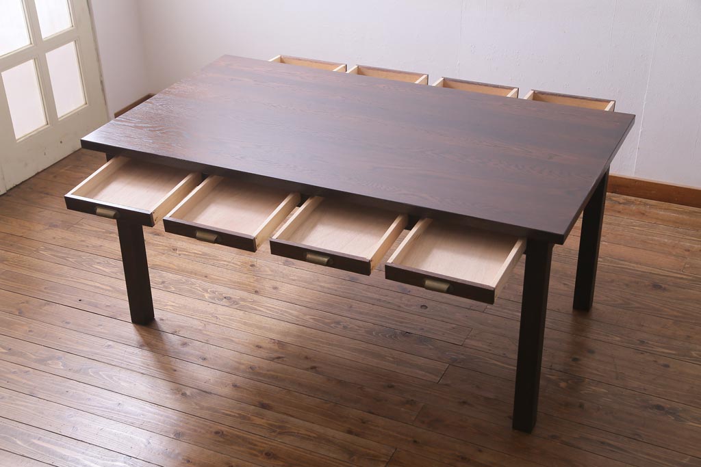 ラフジュ工房オリジナル ホワイトオーク材 両面引き出し付き 使い勝手の良い作業台・幅1600(ダイニングテーブル)です。