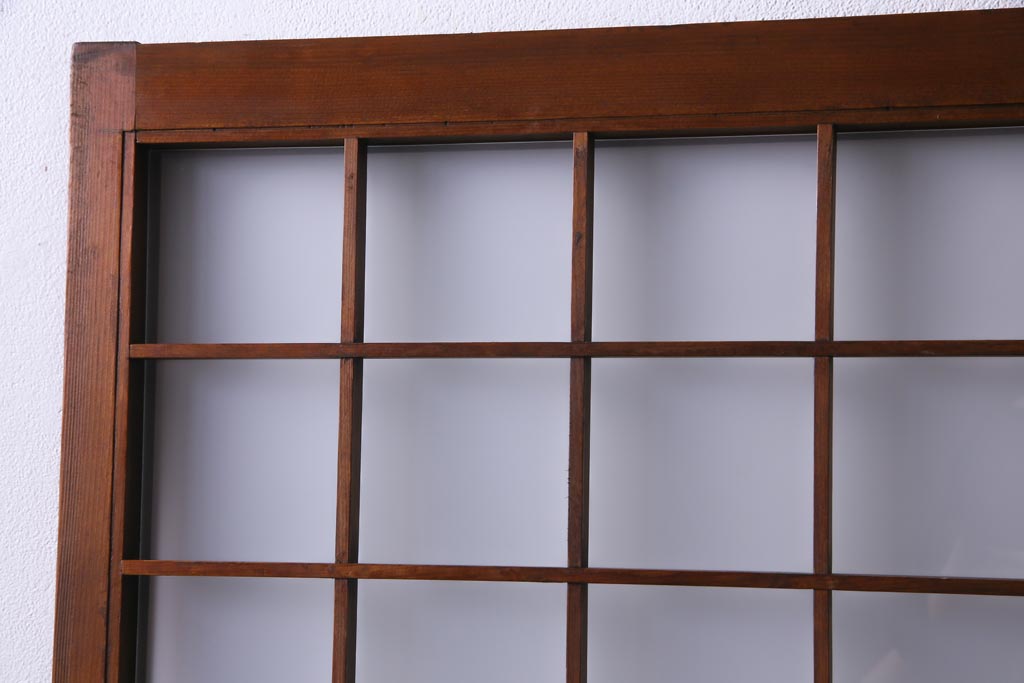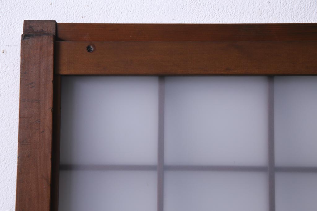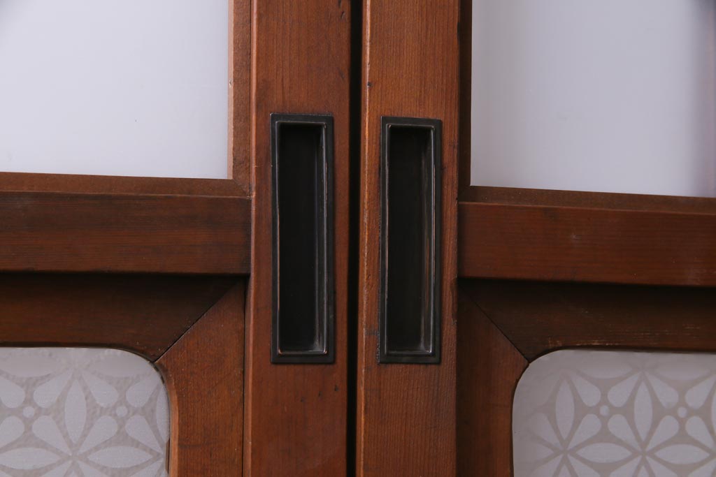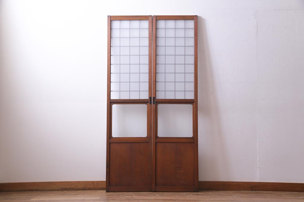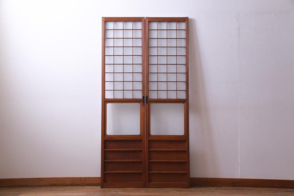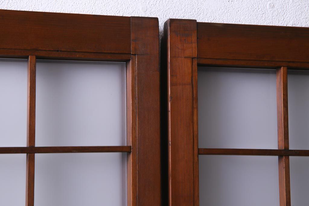 和製アンティーク ヒノキ材 当店オリジナルガラス入り 昭和レトロな幅狭サイズのガラス戸2枚セット(建具、引き戸)(R-036019)
