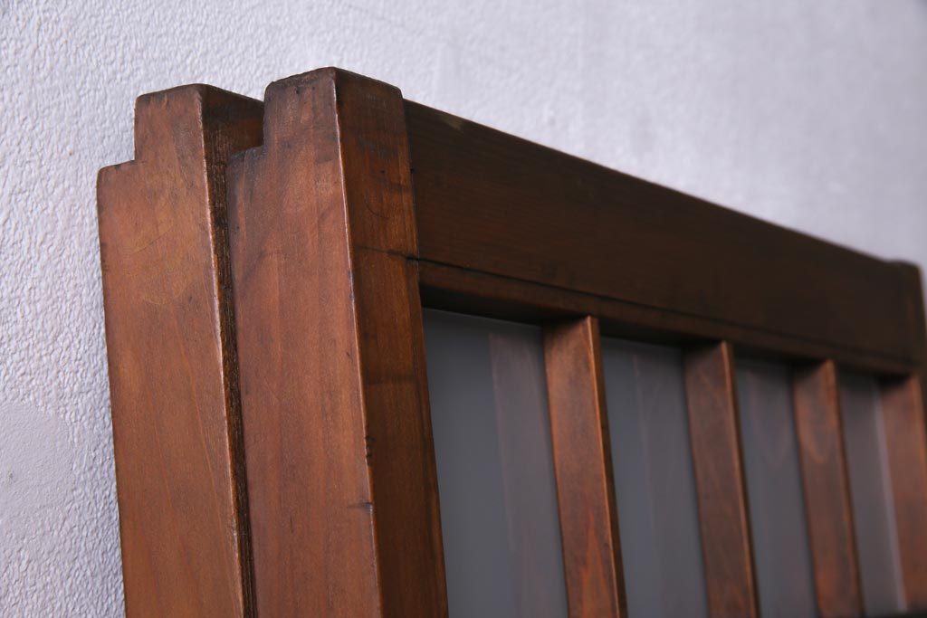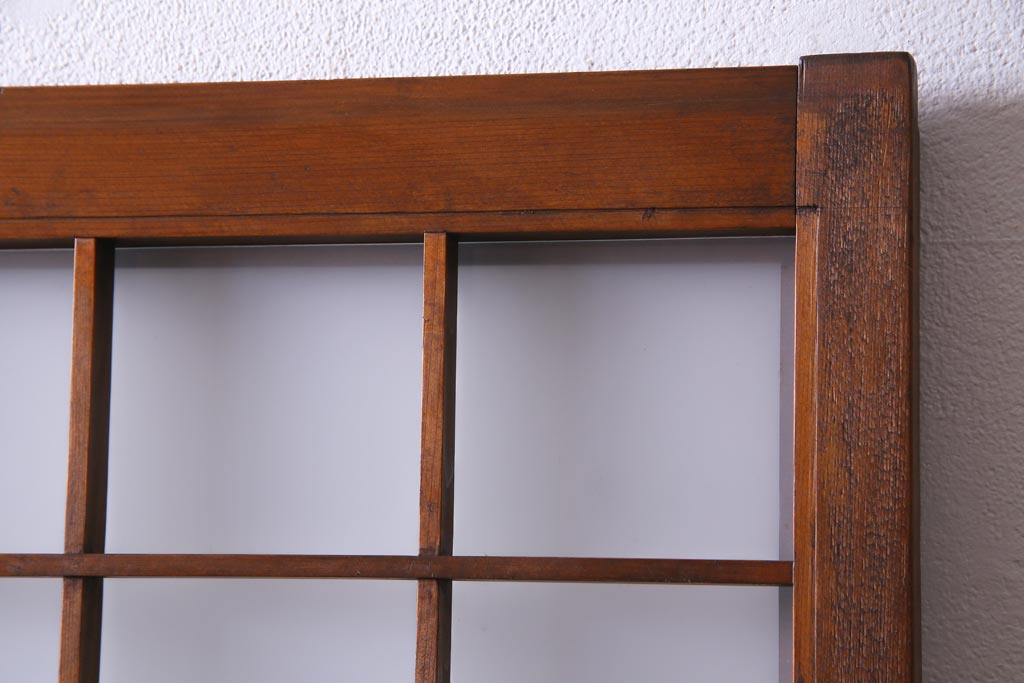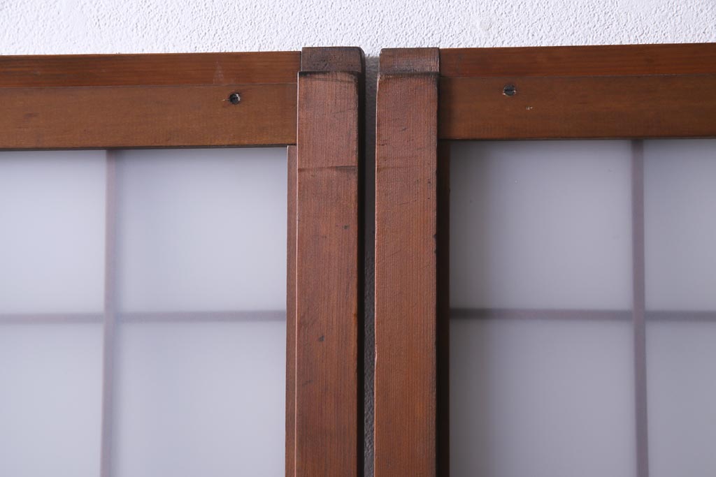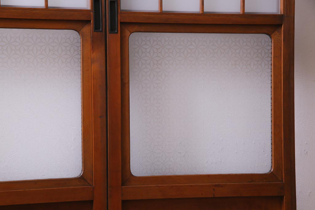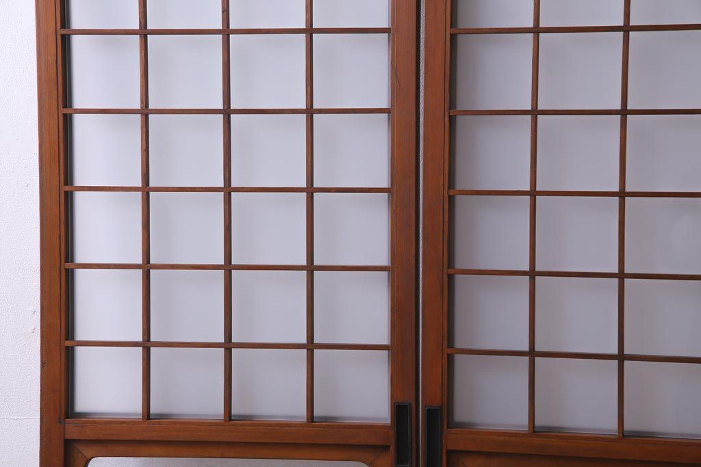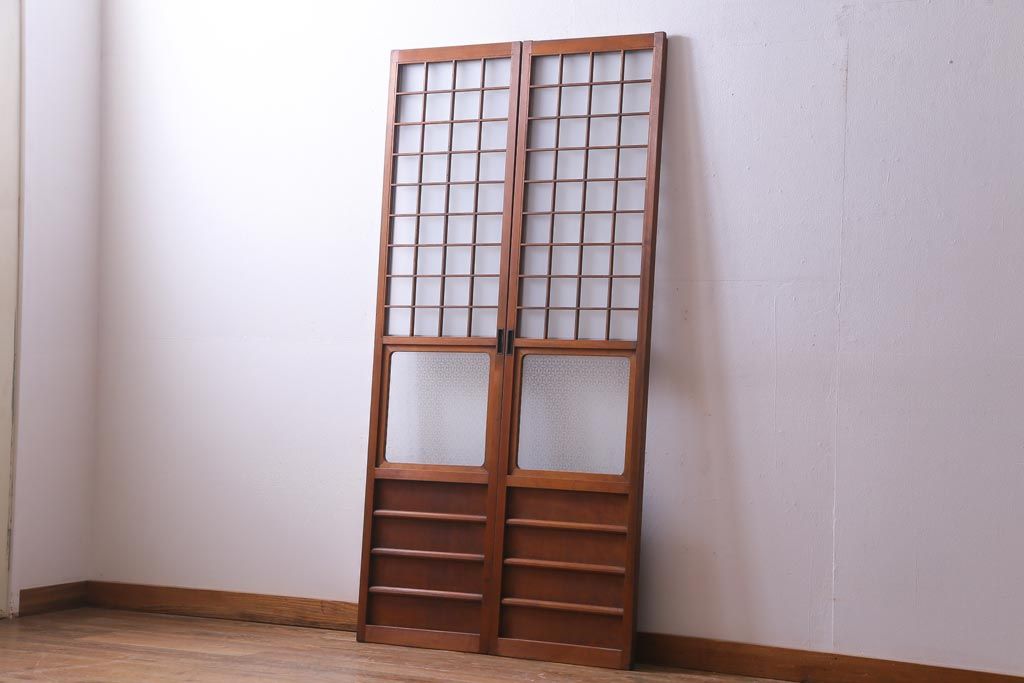和製アンティーク ヒノキ材 当店オリジナルガラス入り 昭和レトロな幅狭サイズのガラス戸2枚セット(建具、引き戸)(R-036019)