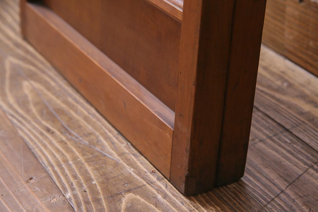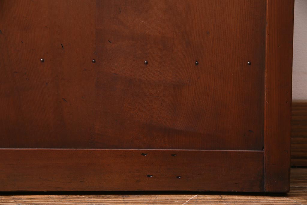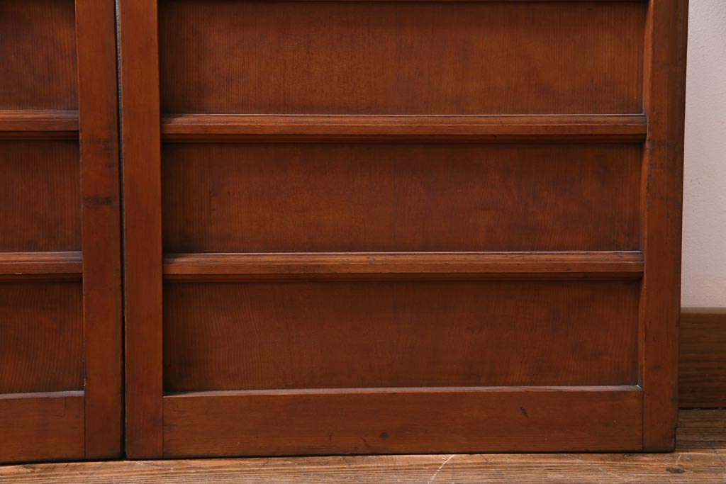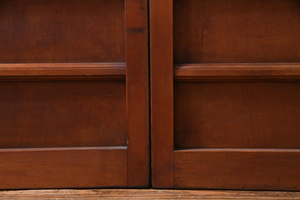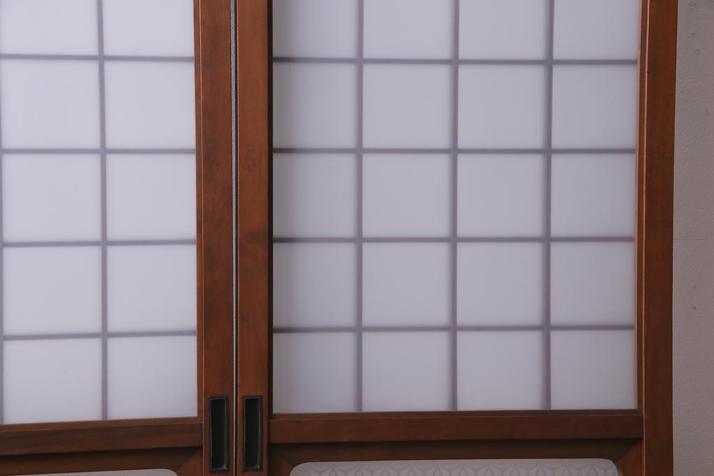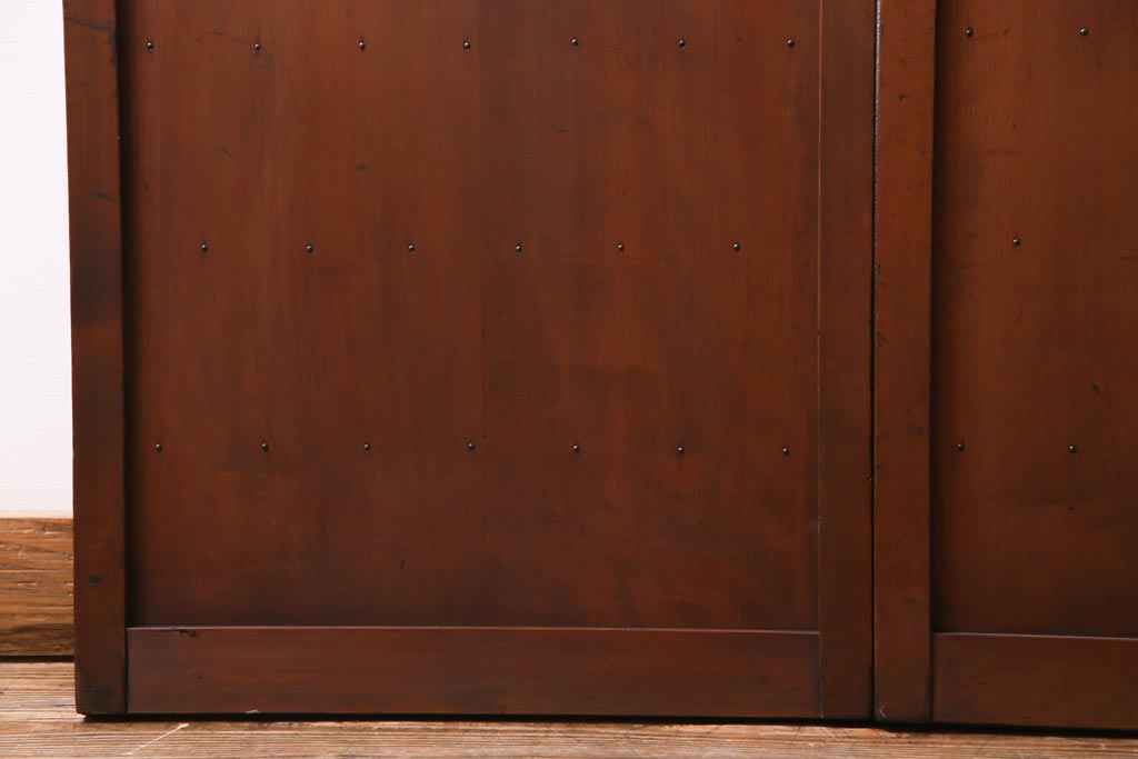 和製アンティーク ヒノキ材 当店オリジナルガラス入り 昭和レトロな幅狭サイズのガラス戸2枚セット(建具、引き戸)(R-036019)