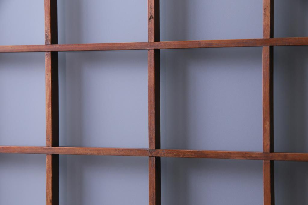 ラフジュ工房> ドア・建具> 引き戸 > 和製アンティーク ヒノキ材 当店オリジナルガラス入り 昭和レトロな幅狭サイズのガラス戸2枚セット(建具、引き戸)(R-036019)