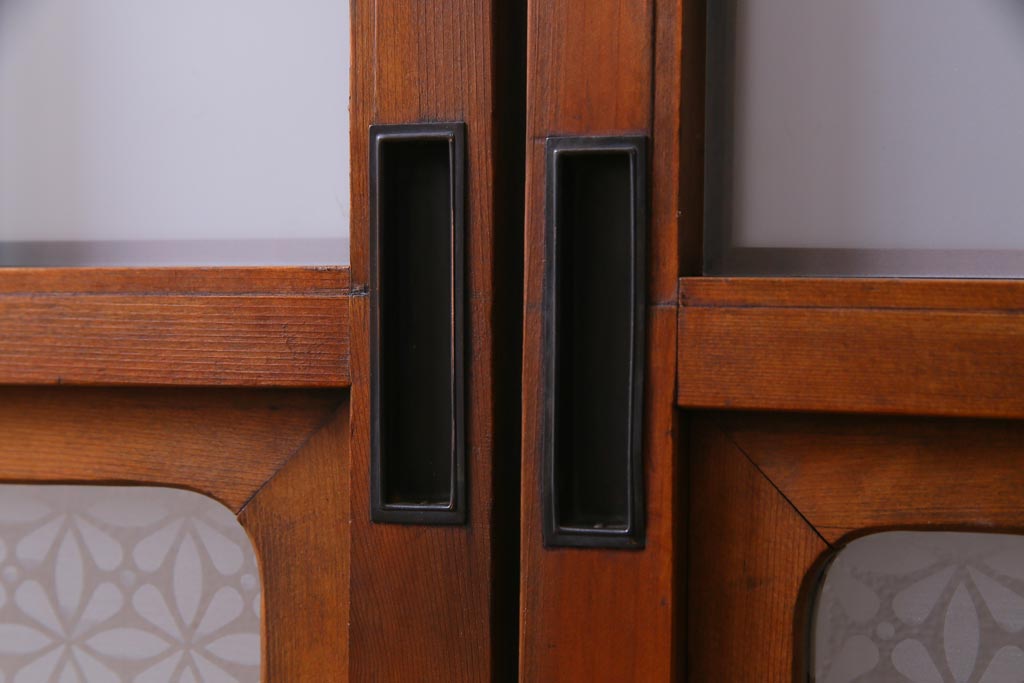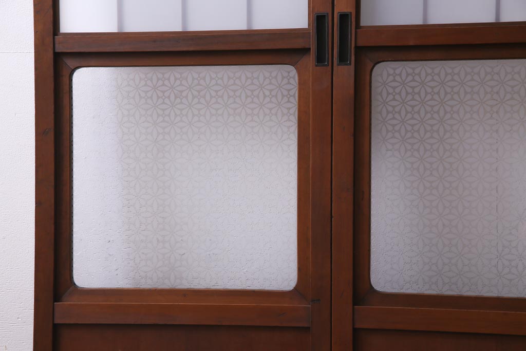 ラフジュ工房> ドア・建具> ガラス戸 > 和製アンティーク ヒノキ材 当店オリジナルガラス入り 昭和レトロな幅狭サイズのガラス戸2枚セット(建具、引き戸)(R-036019)
