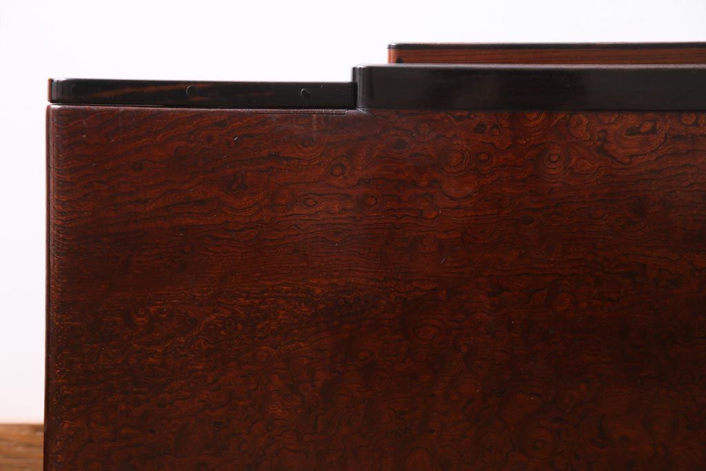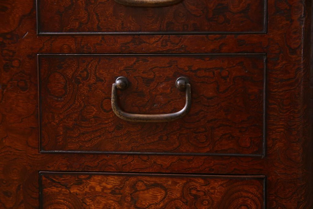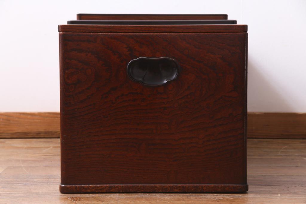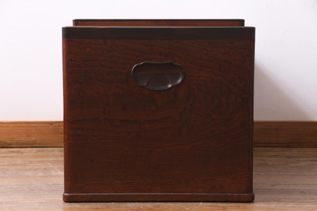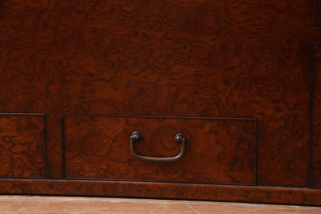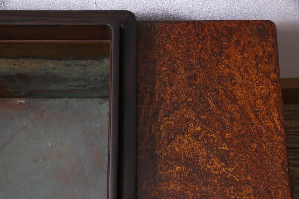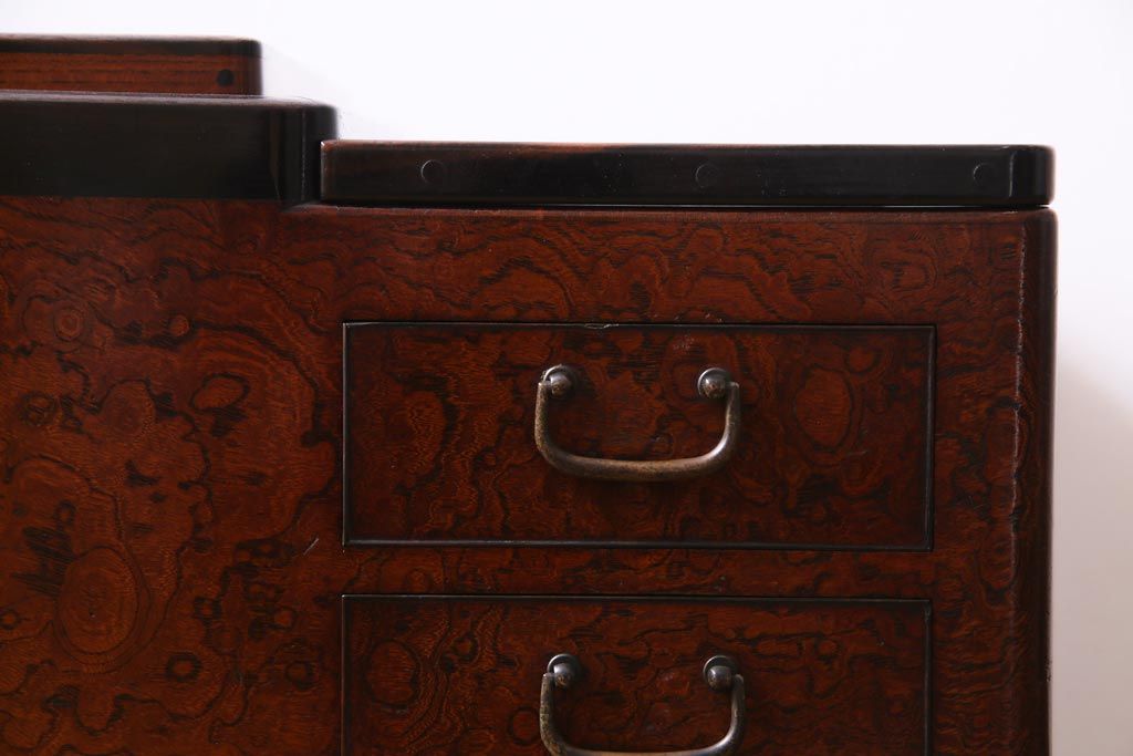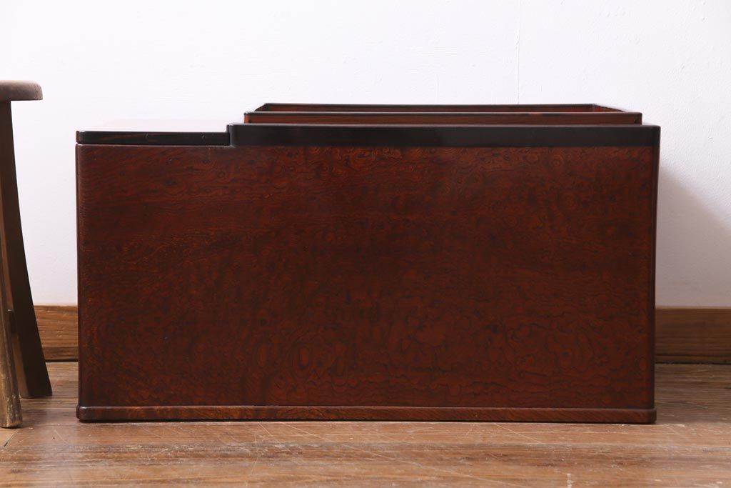 火鉢> 長火鉢 > アンティーク雑貨 和製アンティーク 銅壺付き! ケヤキ玉杢材 漆塗り 存在感のある長火鉢(木製火鉢)