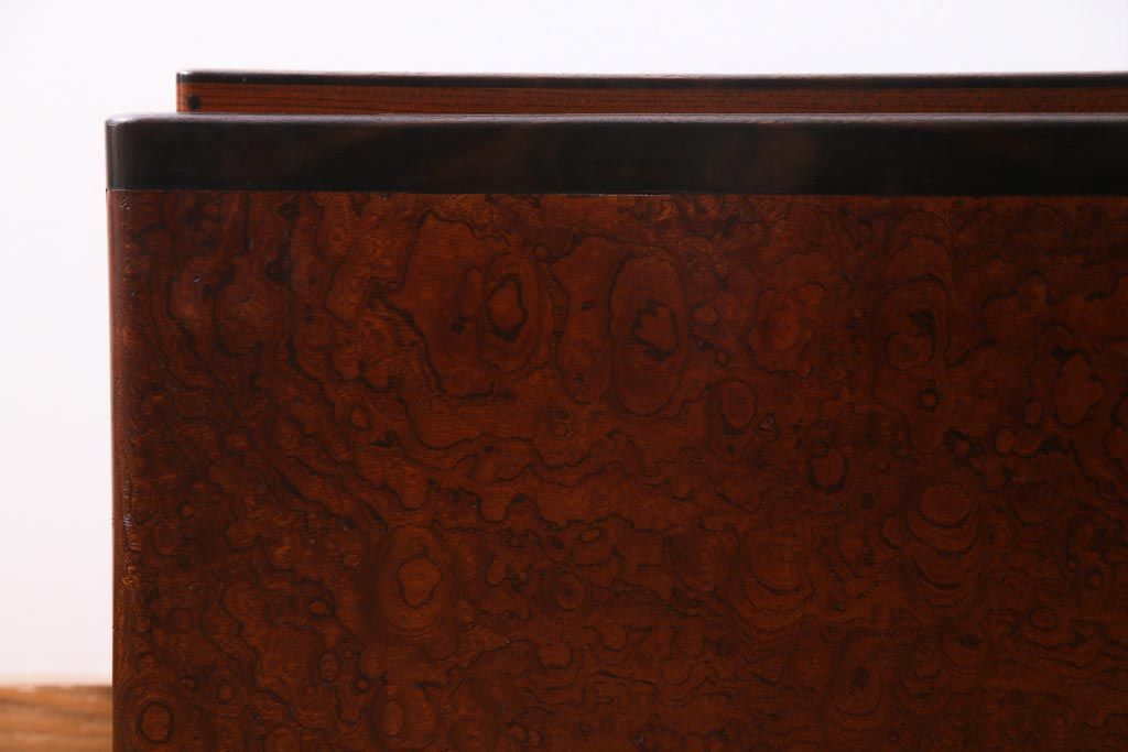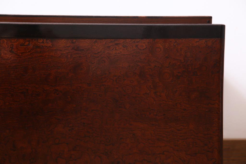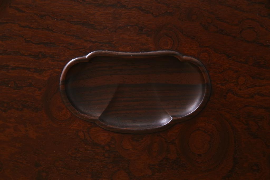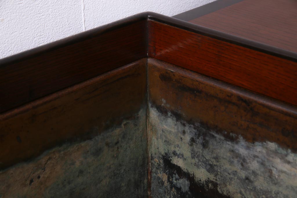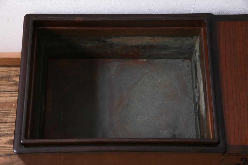 火鉢> 木製火鉢 > アンティーク雑貨 和製アンティーク 銅壺付き! ケヤキ玉杢材 漆塗り 存在感のある長火鉢(木製火鉢)