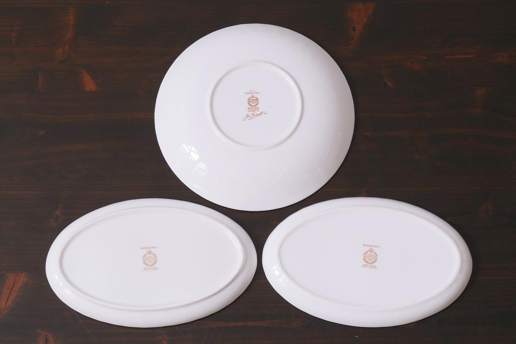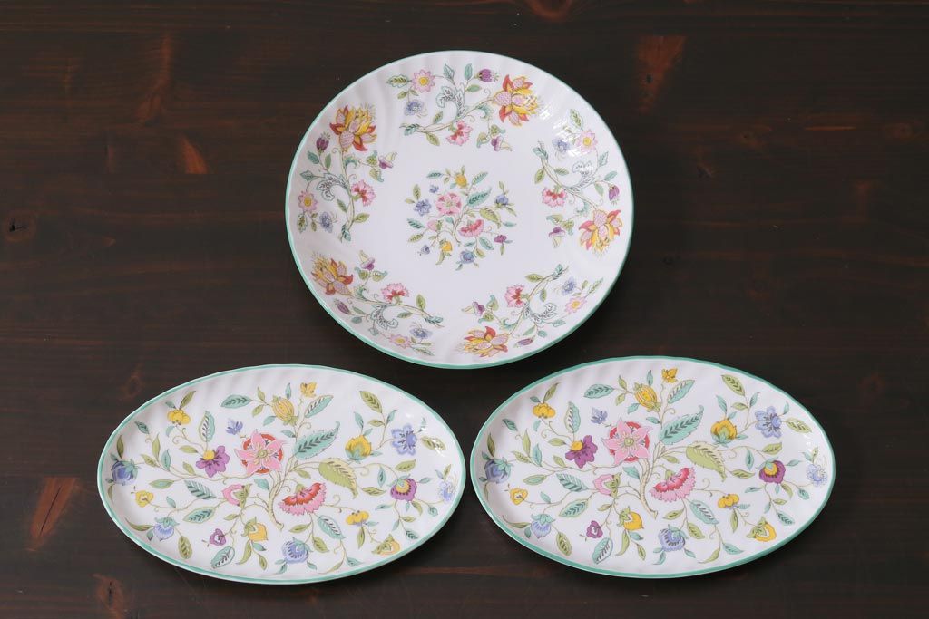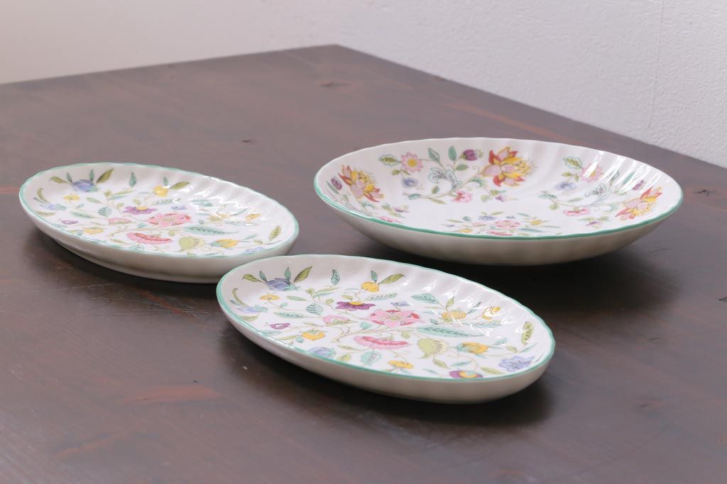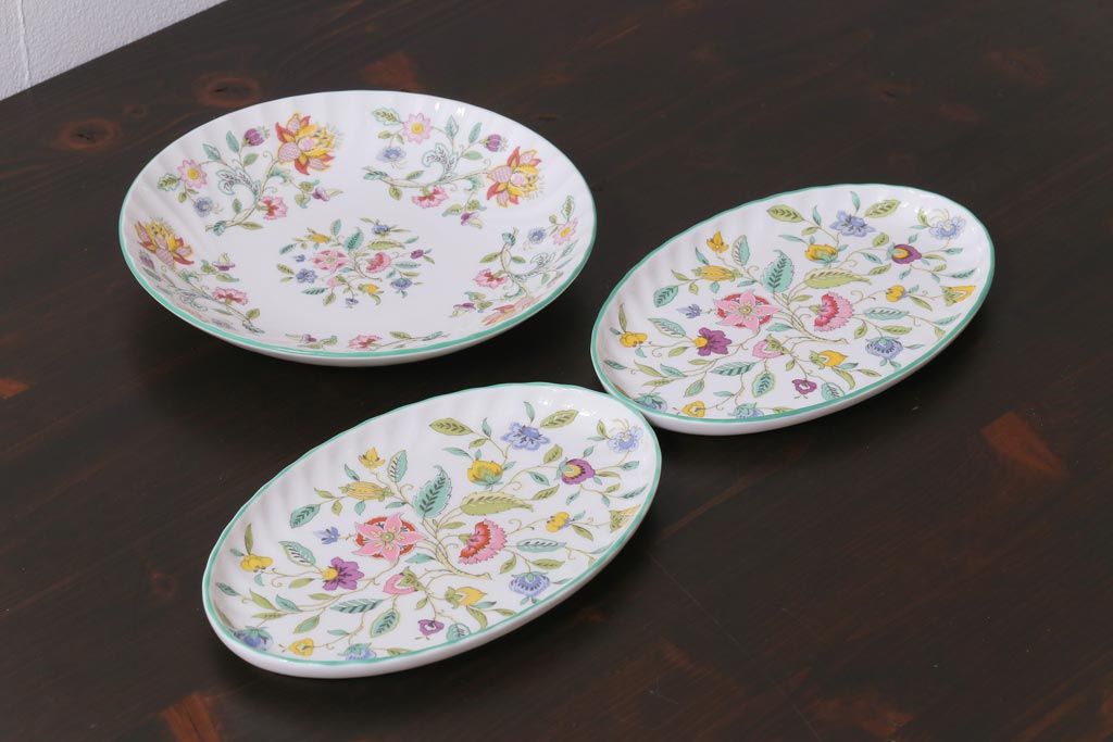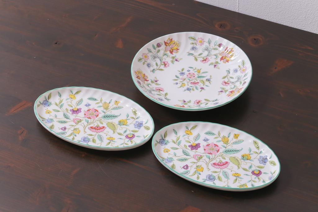 中古美品 イギリス MINTON(ミントン) Haddon Hall(ハドンホール) プレート3枚セット(オーバルトレー、サービスボウル)