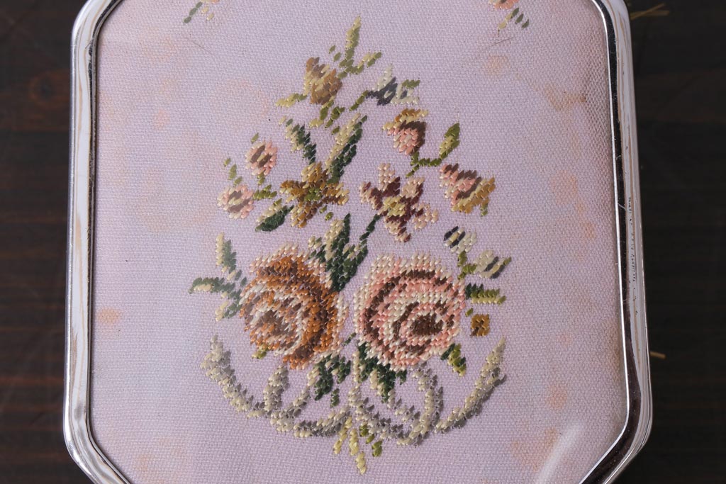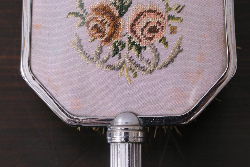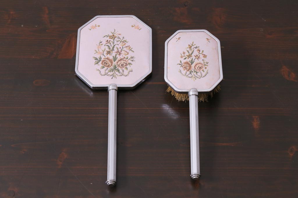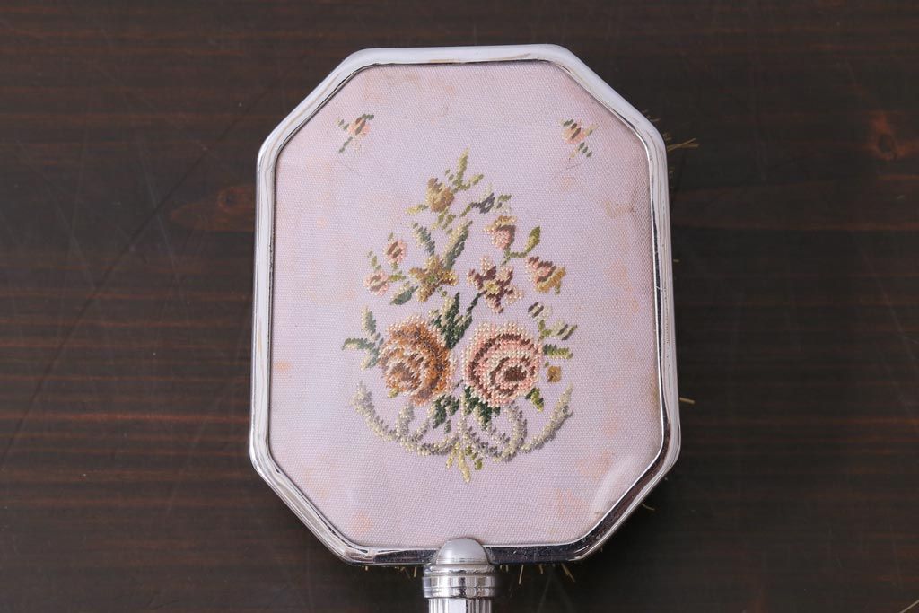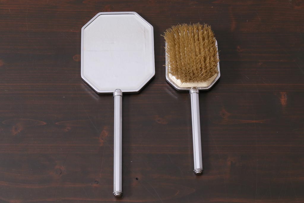 アンティーク雑貨 イギリスアンティーク 箱付き プチ・ポワンのブラシとハンドミラー2点セット