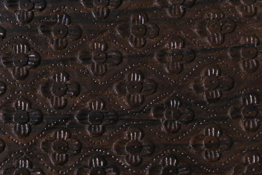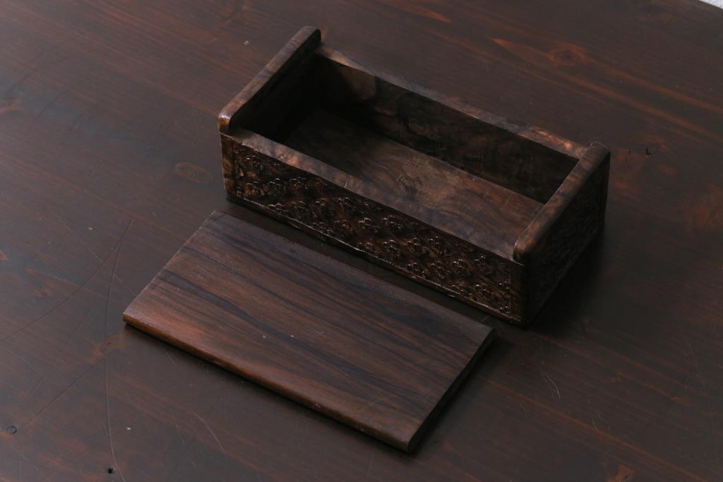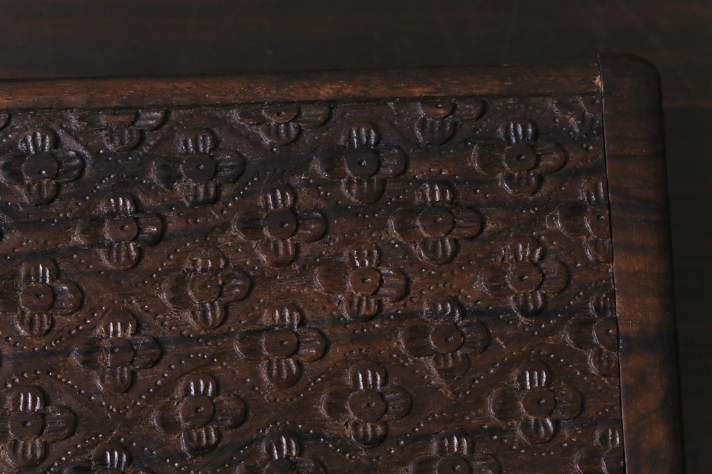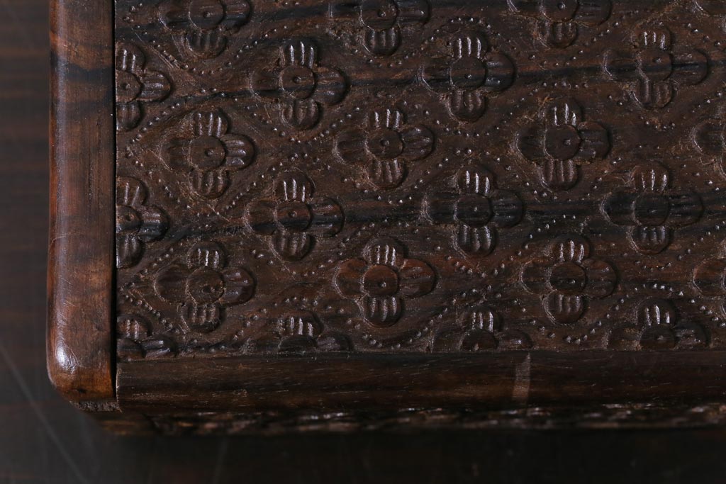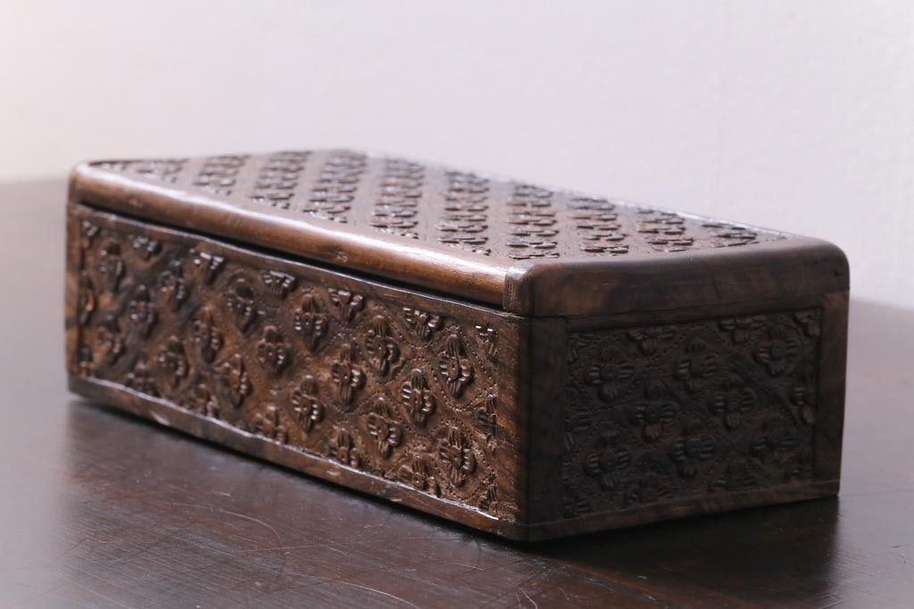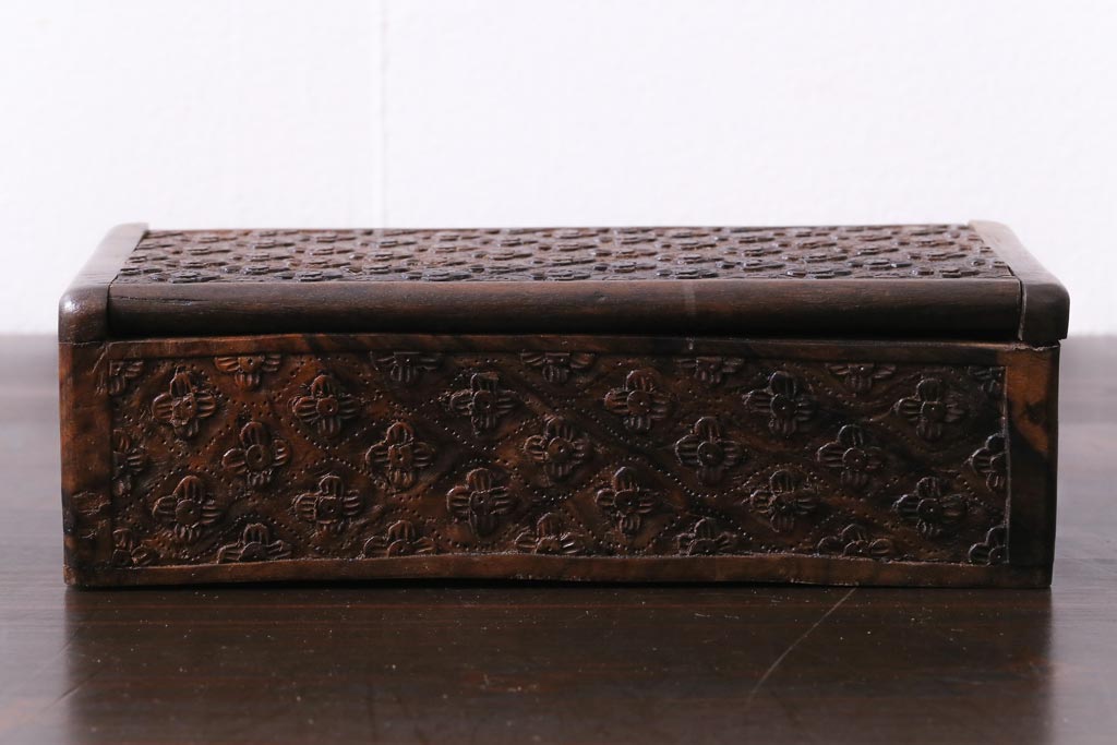 アンティーク雑貨 イギリスアンティーク 小花の彫刻が施された蓋付き木箱(小物入れ)