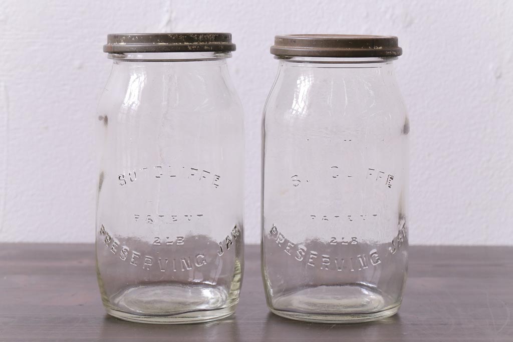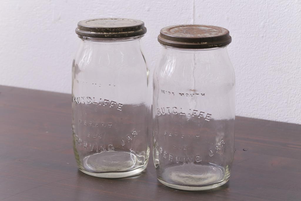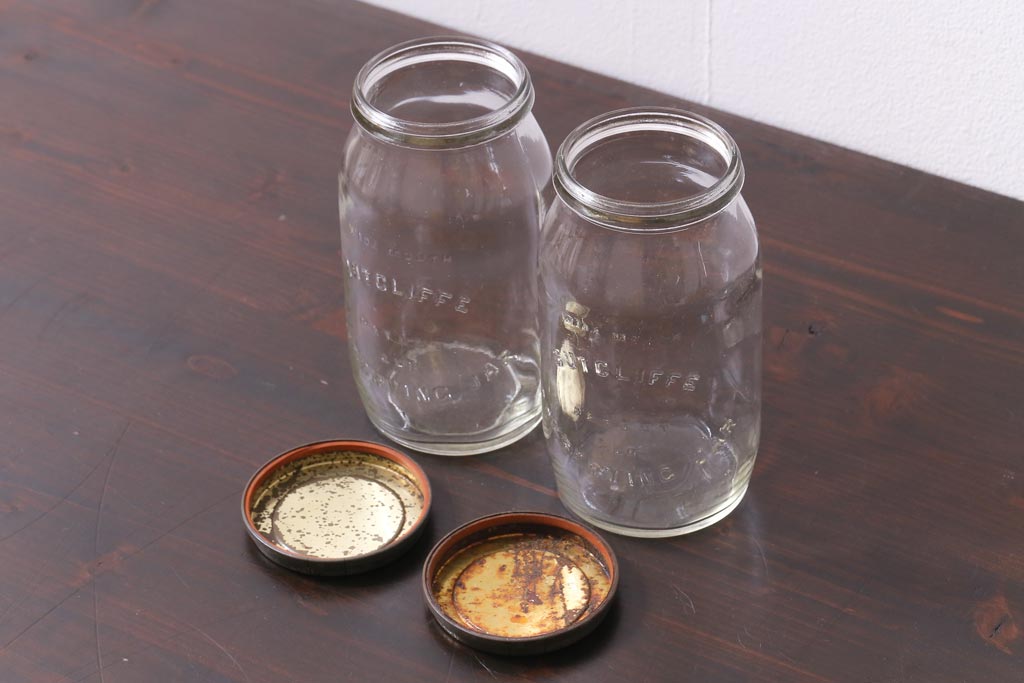 イギリスビンテージ 錆びついた風合いが味のあるガラス瓶2個セット