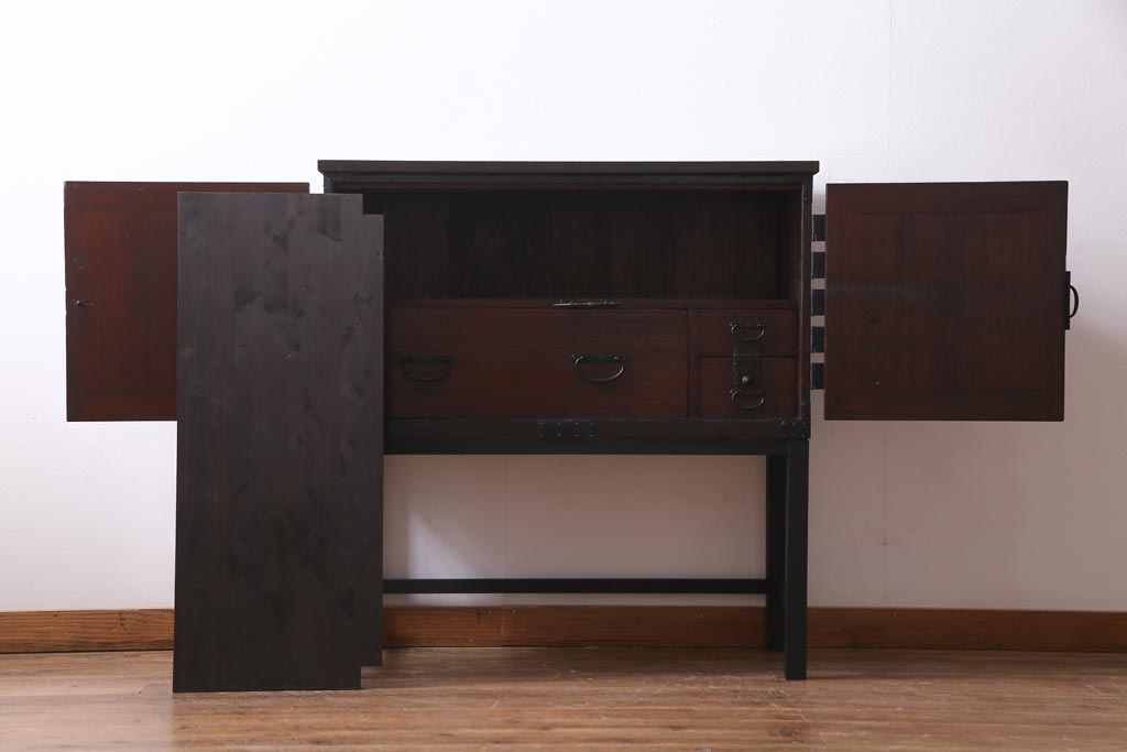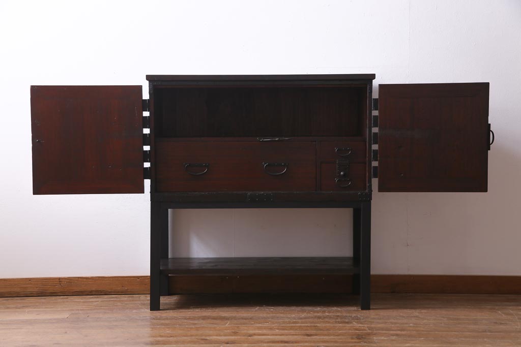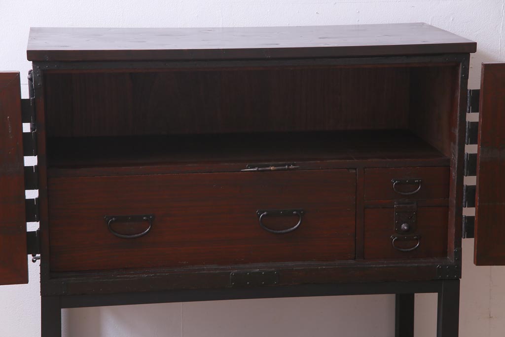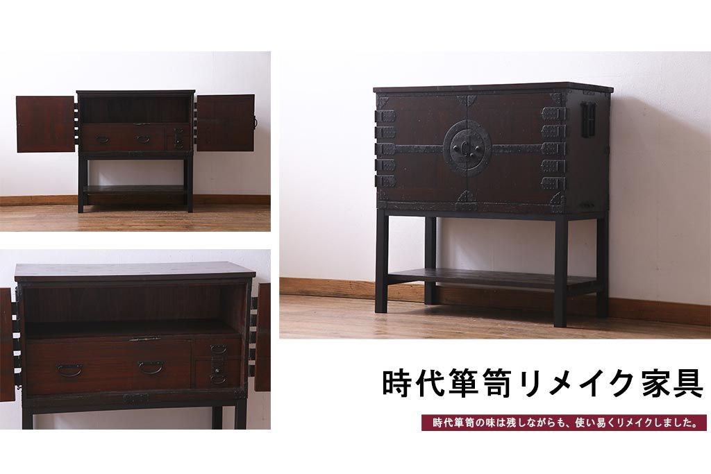 ラフジュ工房> 和箪笥 > アンティーク家具 古民具リメイク 桐材製 重厚な雰囲気漂う観音開きの箪笥サイドボード(収納棚、戸棚、桐箪笥、桐たんす)