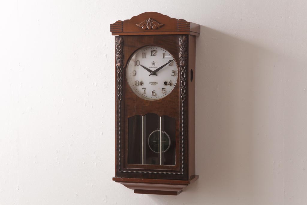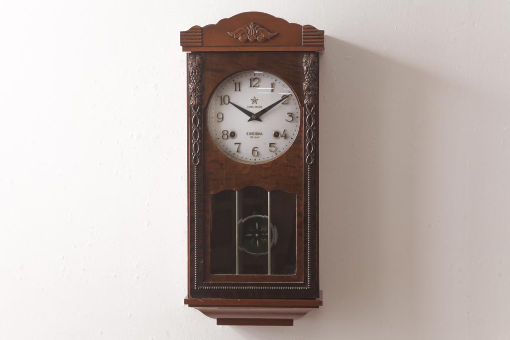 アンティーク雑貨 昭和レトロ EIKEISHA(栄計舎) SUPER DELUXE 手巻き式 30DAY 振り子時計(柱時計、壁掛け時計)