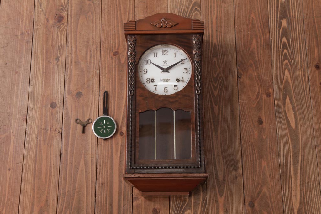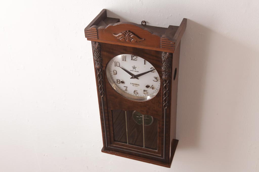 時計> 掛け時計 > アンティーク雑貨 昭和レトロ EIKEISHA(栄計舎) SUPER DELUXE 手巻き式 30DAY 振り子時計(柱時計、壁掛け時計)
