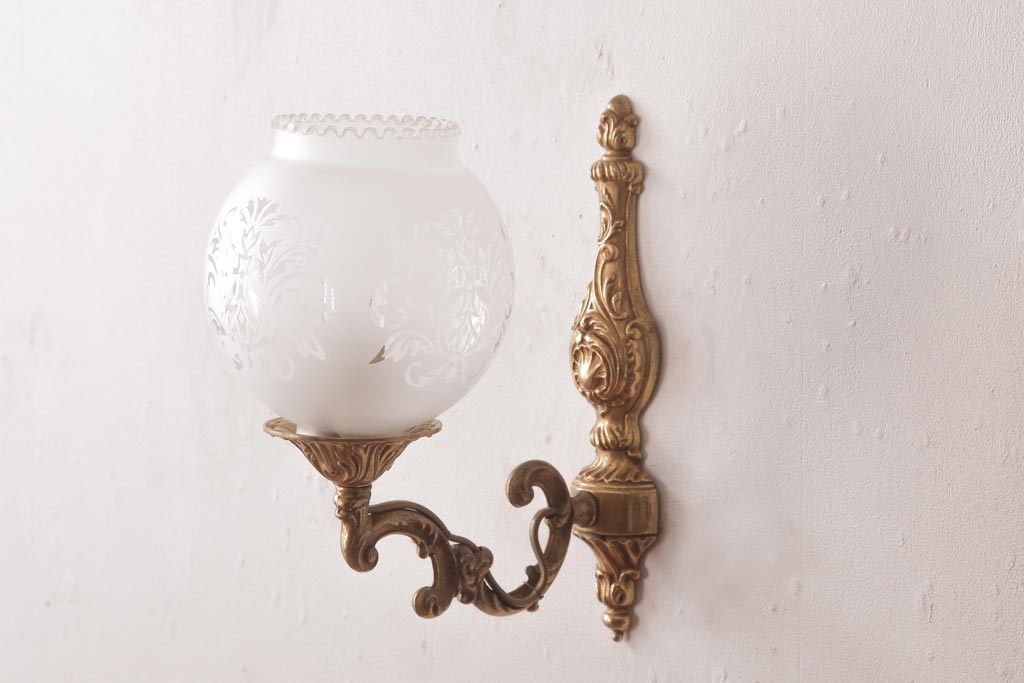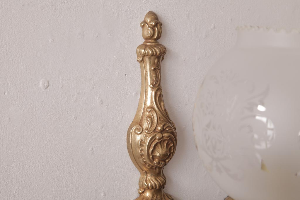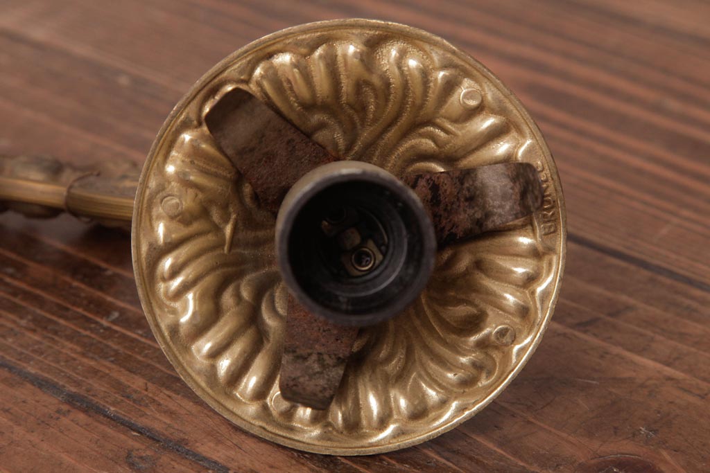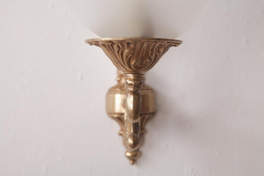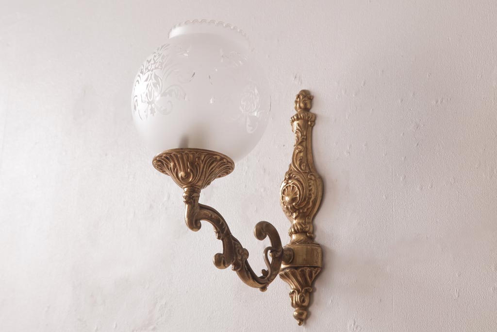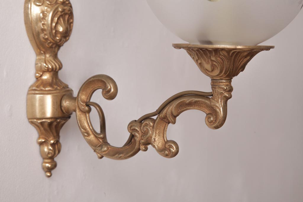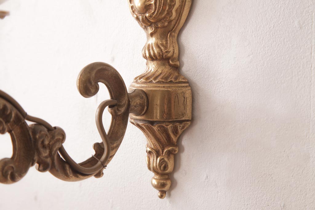 フランスビンテージ 真鍮製 クラシカルな雰囲気漂うロカイユ装飾のウォールランプ(壁付け照明)(1)