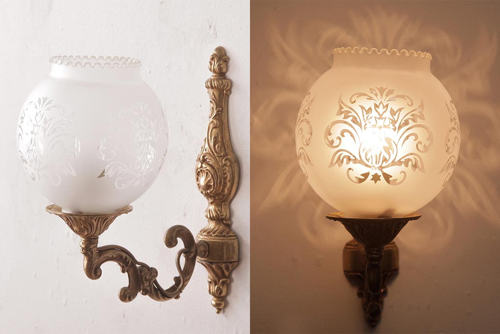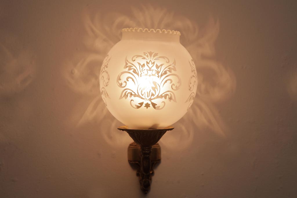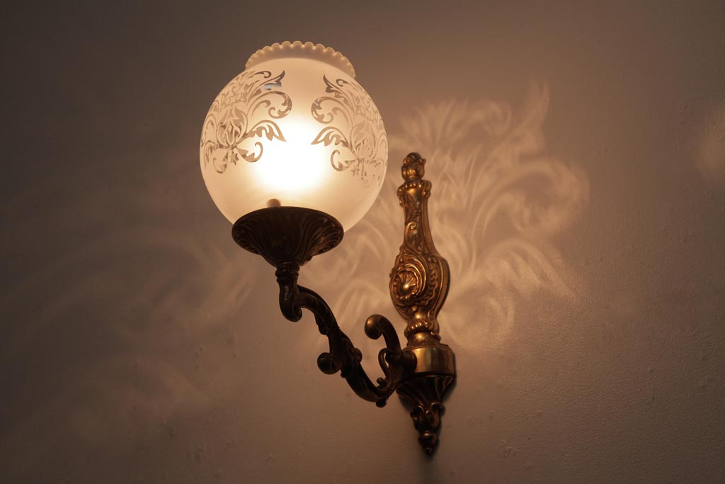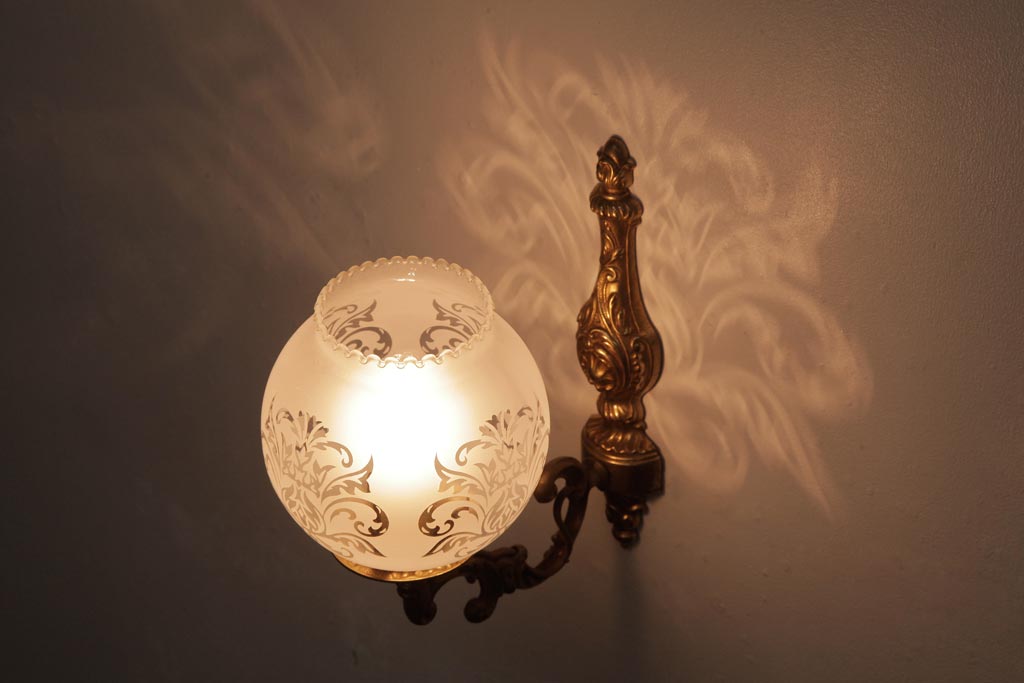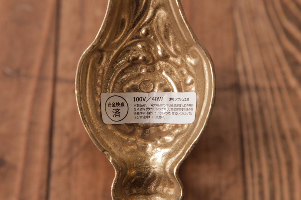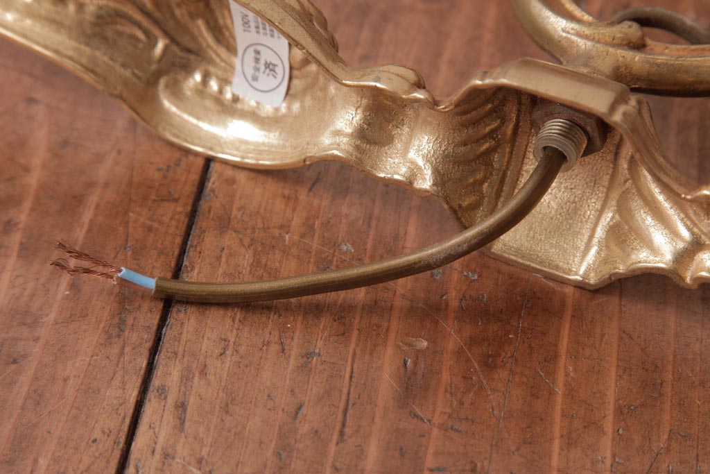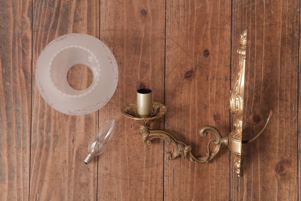 フランスビンテージ 真鍮製 クラシカルな雰囲気漂うロカイユ装飾のウォールランプ(壁付け照明)(1)