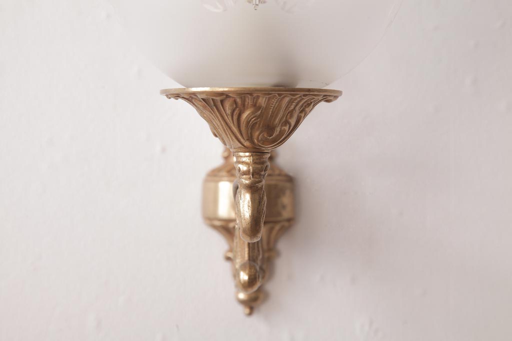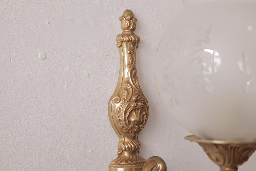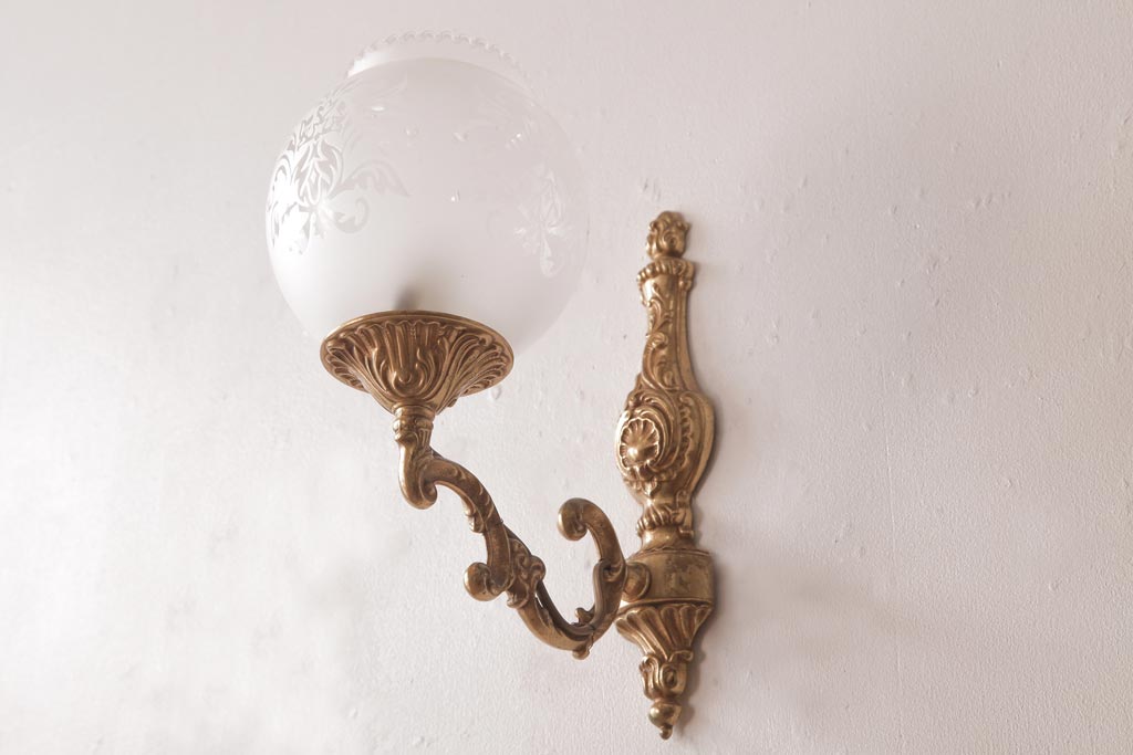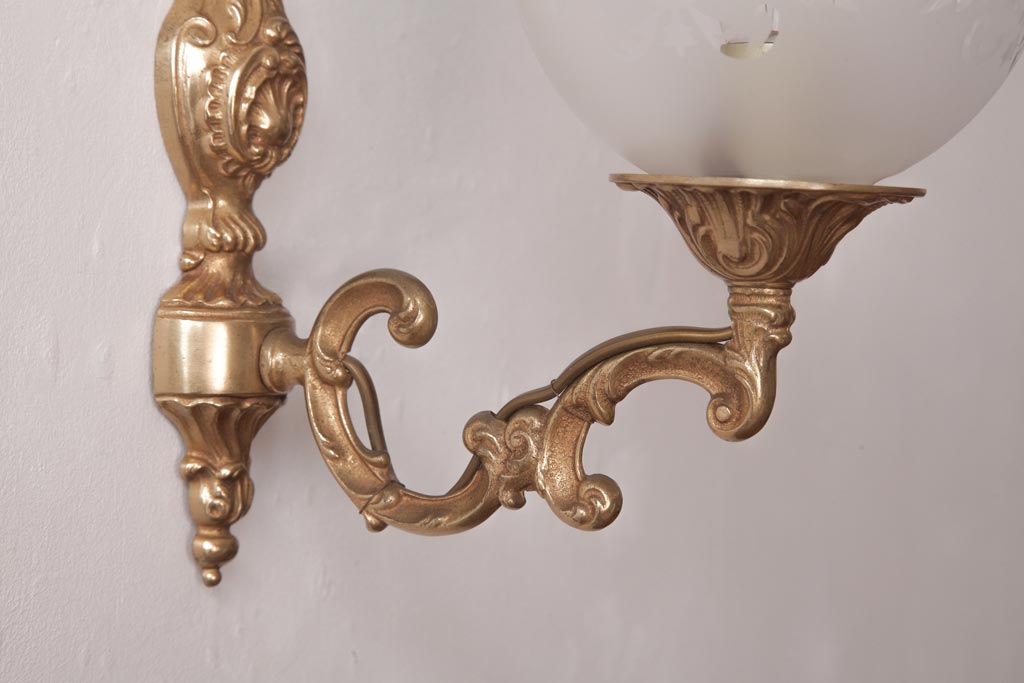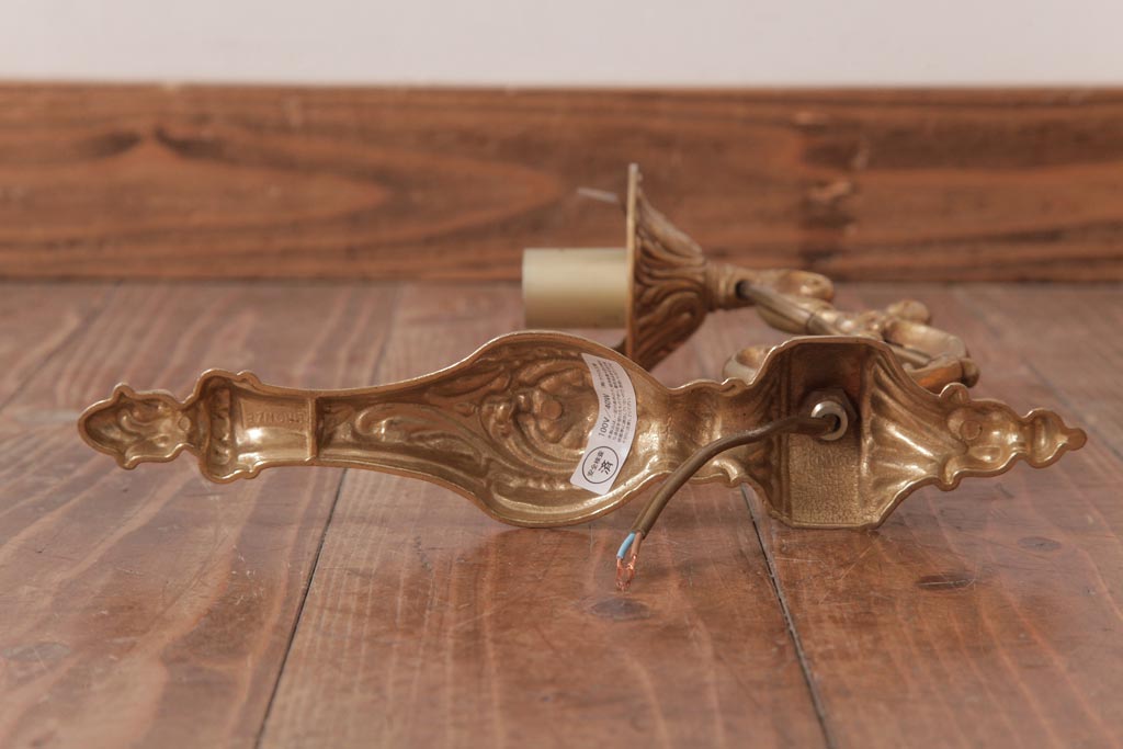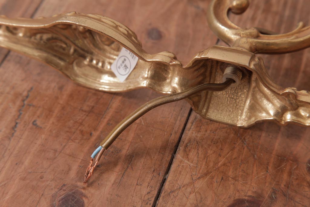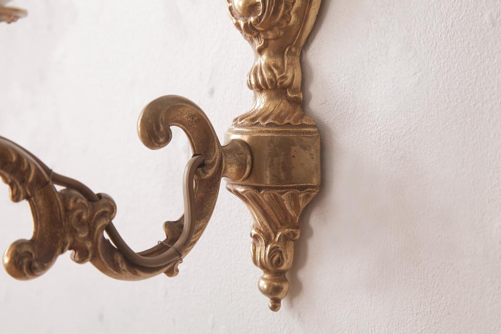 フランスビンテージ 真鍮製 クラシカルな雰囲気漂うロカイユ装飾のウォールランプ(壁付け照明)(2)