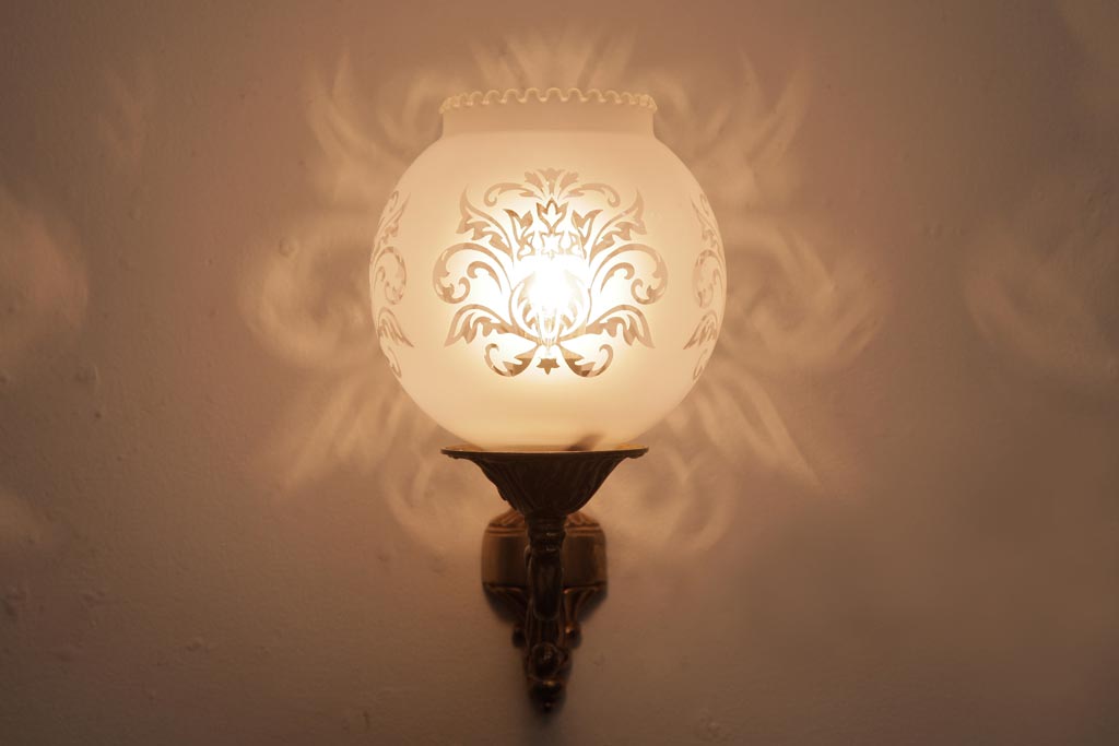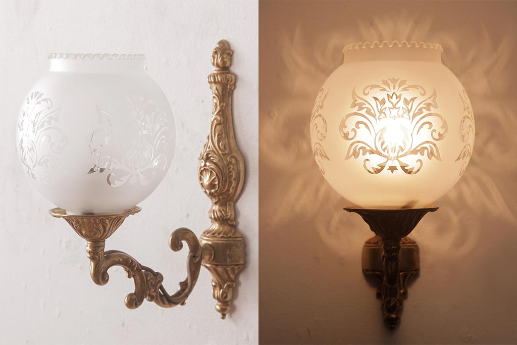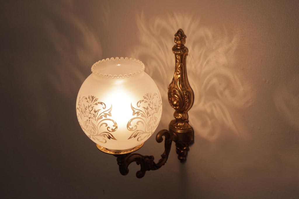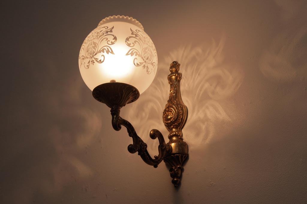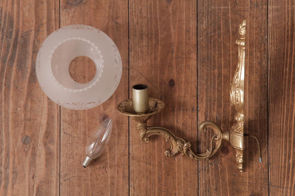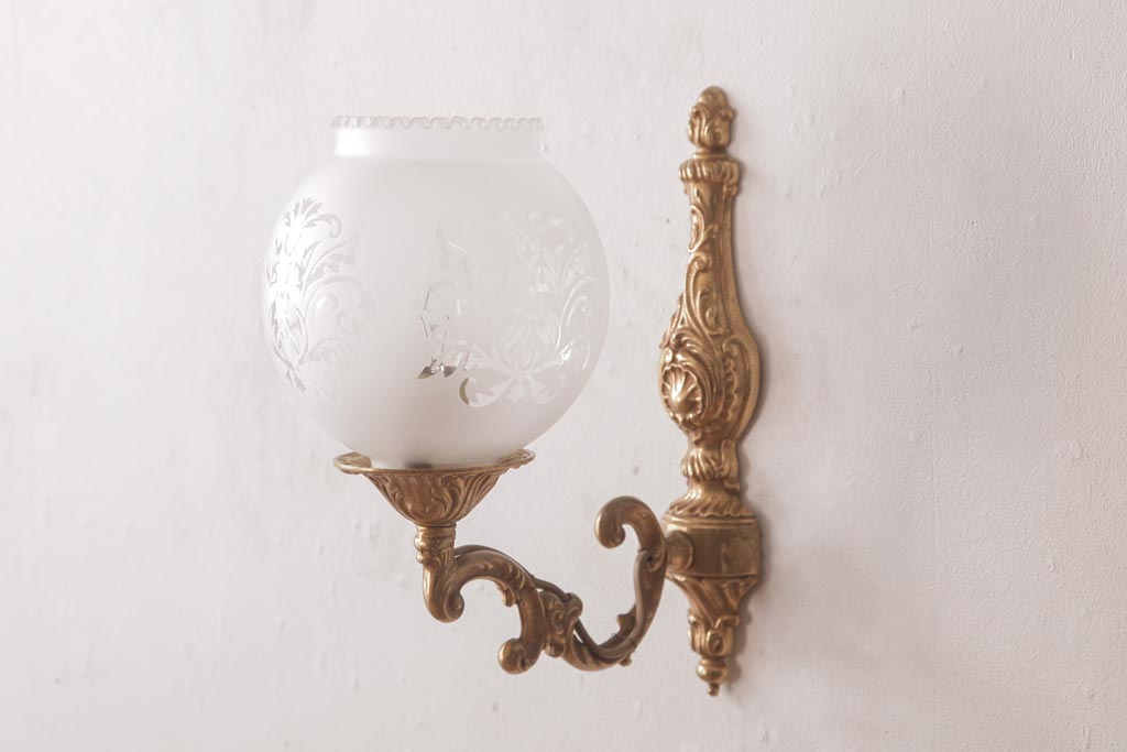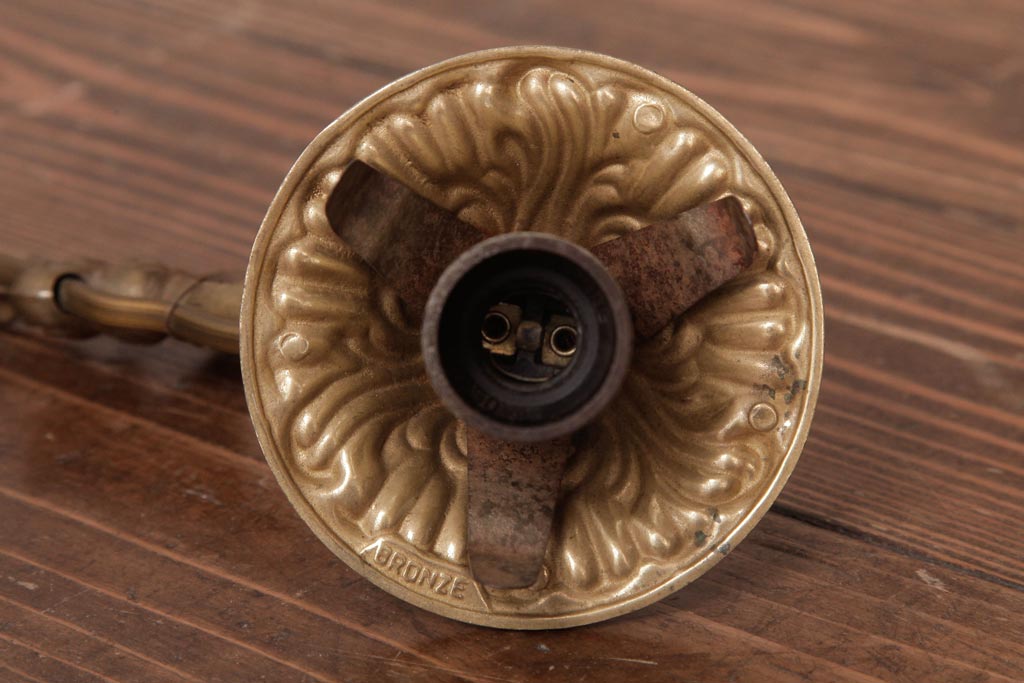 フランスビンテージ 真鍮製 クラシカルな雰囲気漂うロカイユ装飾のウォールランプ(壁付け照明)(2)