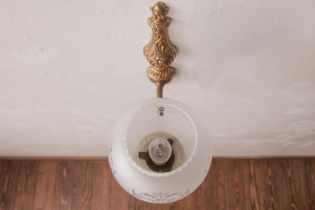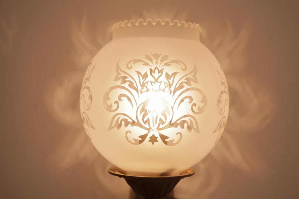 ロカイユ装飾の真鍮フレームやシェードの透かしが