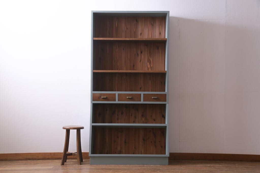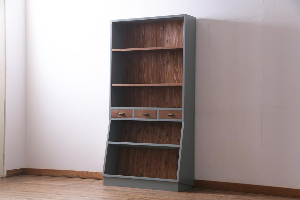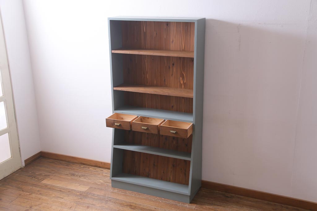 ラフジュ工房オリジナル 古材使用 メンズライクにも合う薄型のペイントブックシェルフ(収納棚、本棚、ウッドシェルフ)