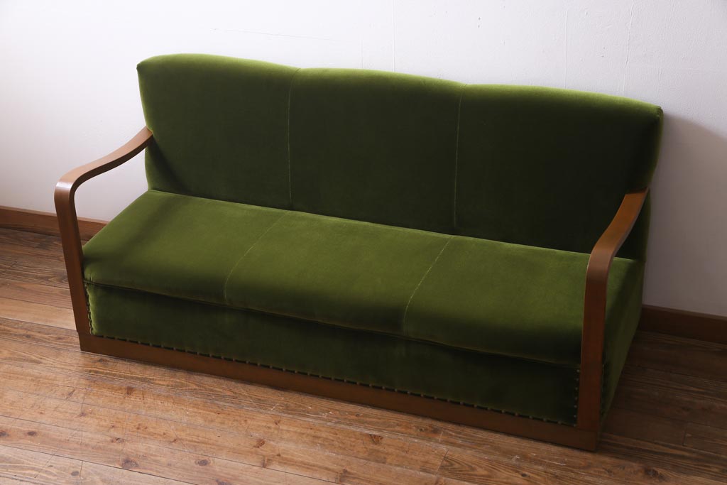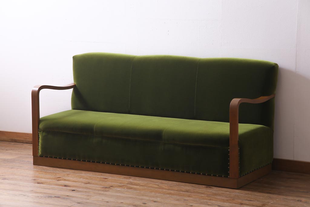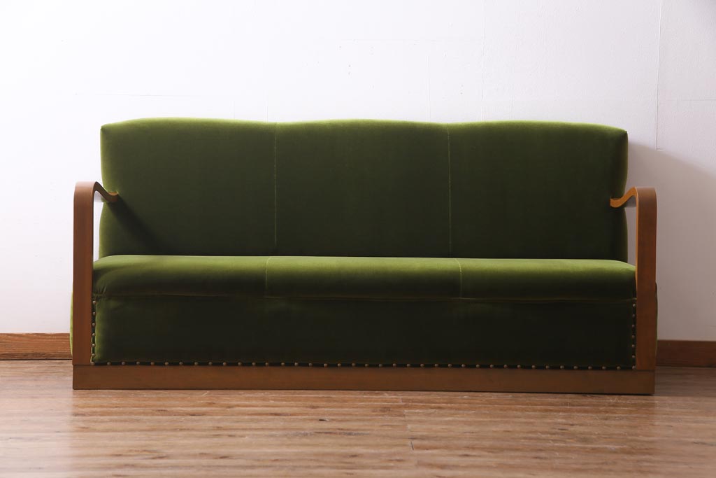 レトロ家具 昭和レトロ カバ材 ノスタルジックな雰囲気が漂う3人掛けソファ