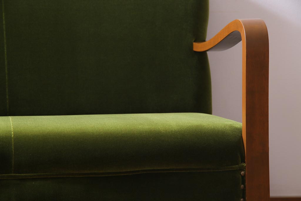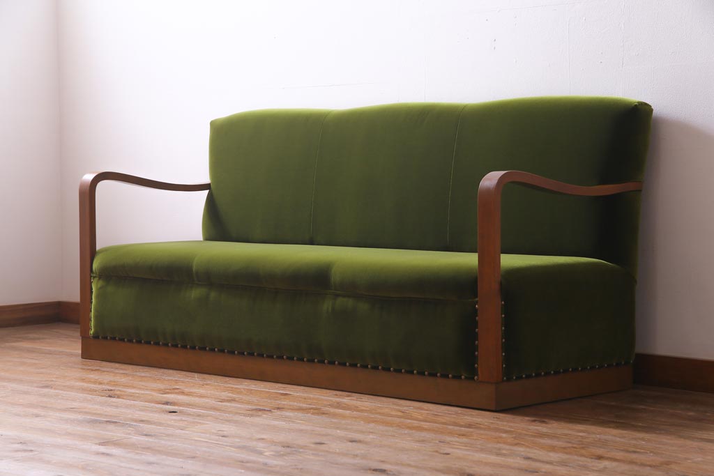 ラフジュ工房> ソファ> 2人掛けソファ > レトロ家具 昭和レトロ カバ材 ノスタルジックな雰囲気が漂う3人掛けソファ