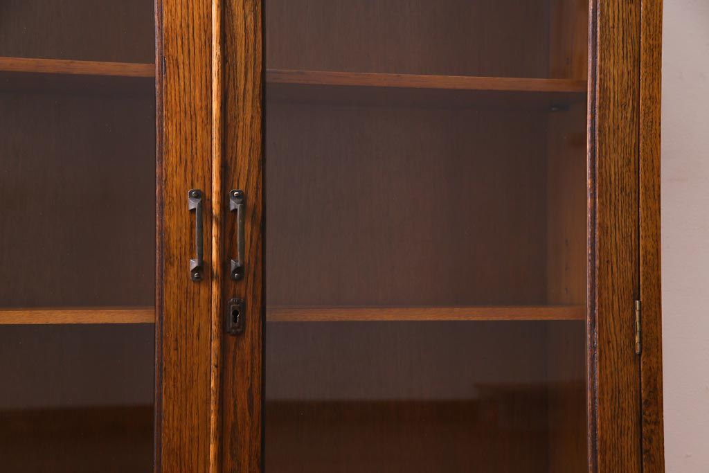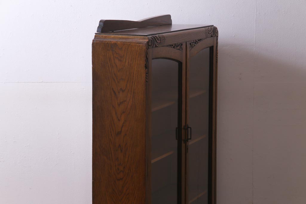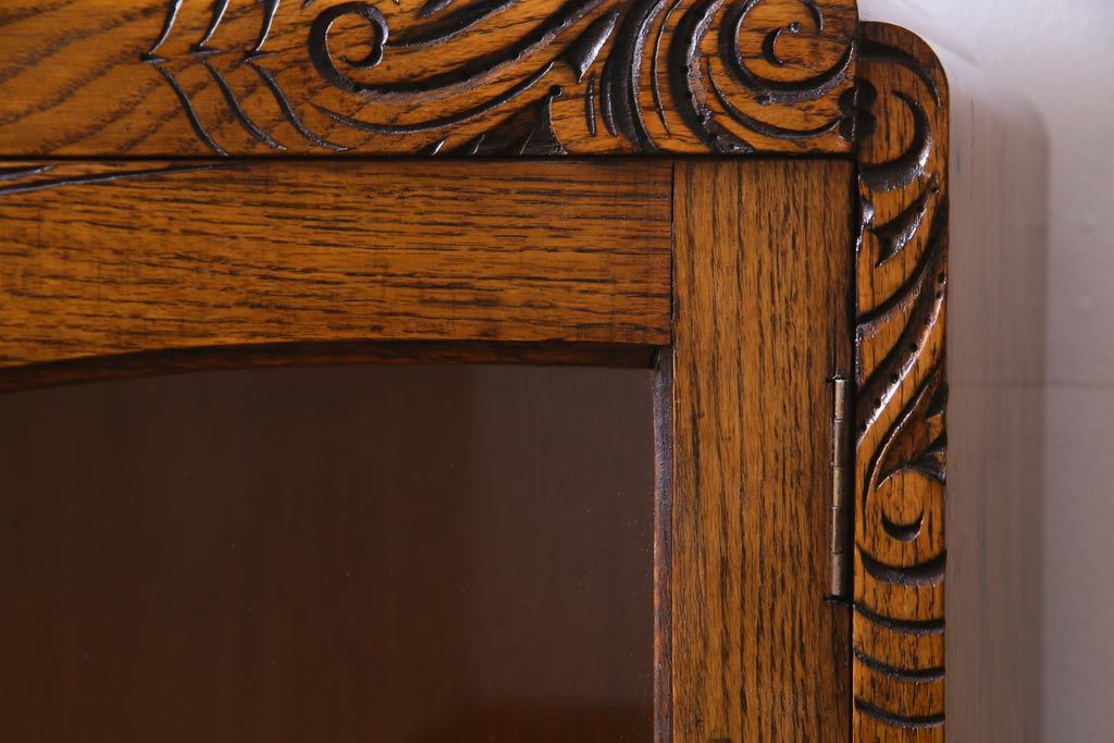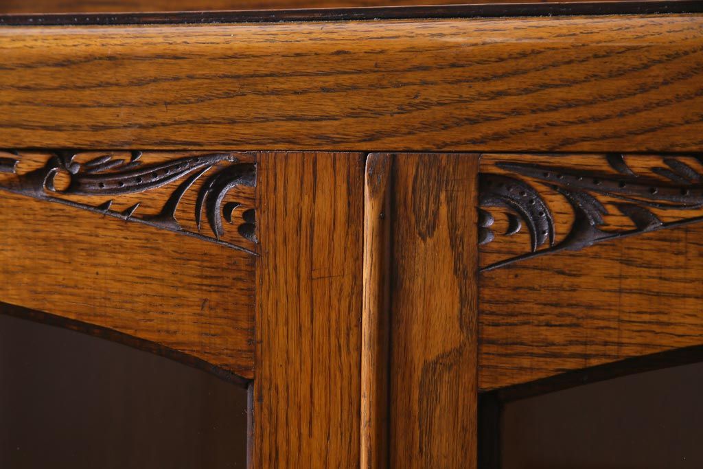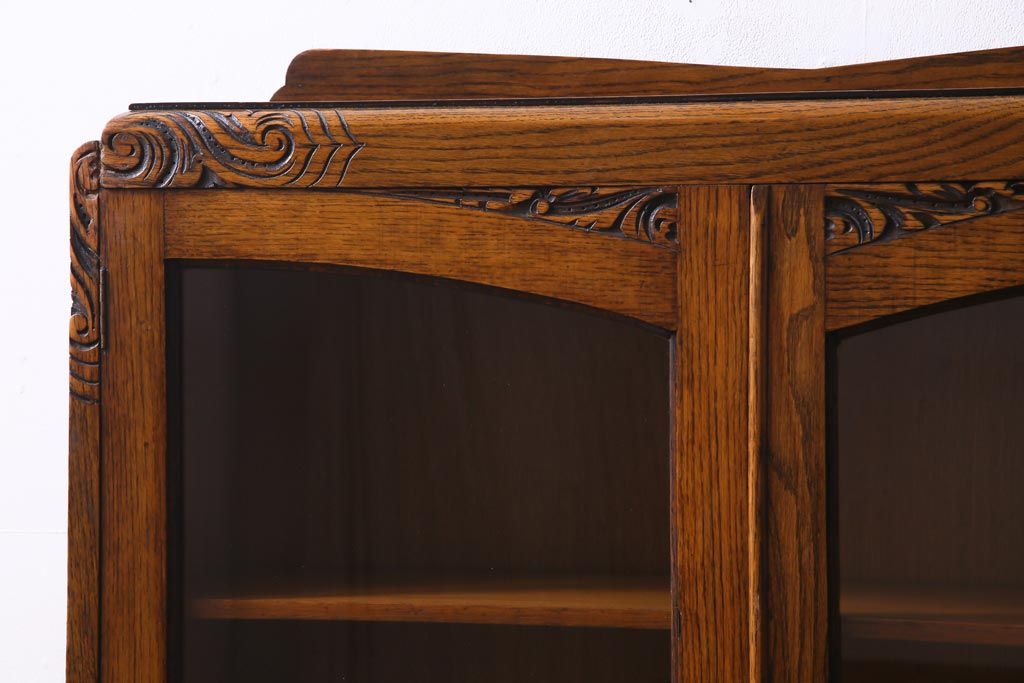 アンティーク家具 イギリスアンティーク オーク材 クラシカルな意匠がお洒落なブックケース(本箱、収納棚、飾り棚)