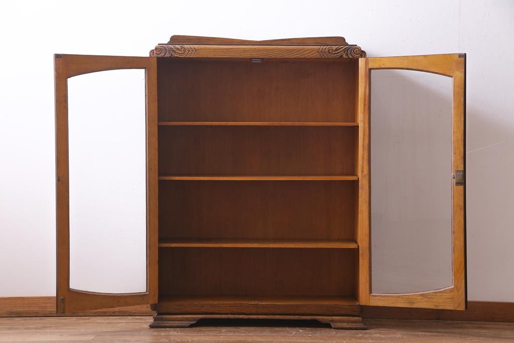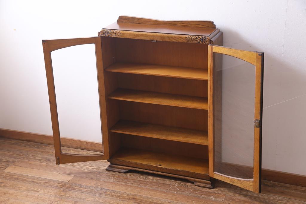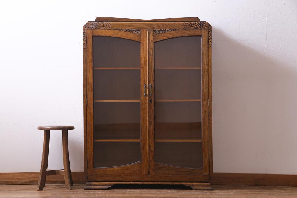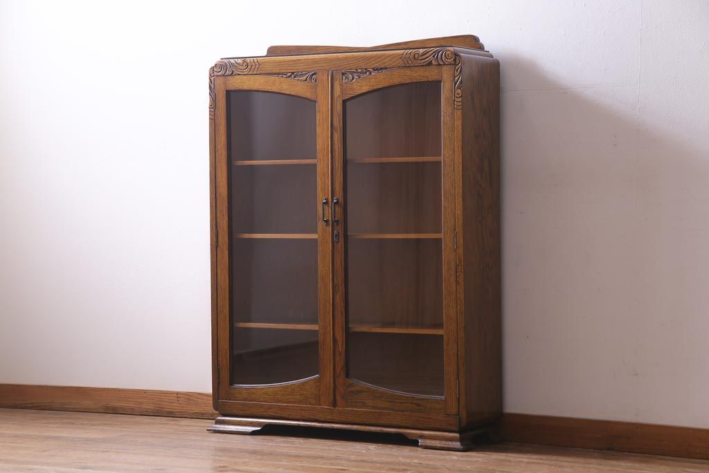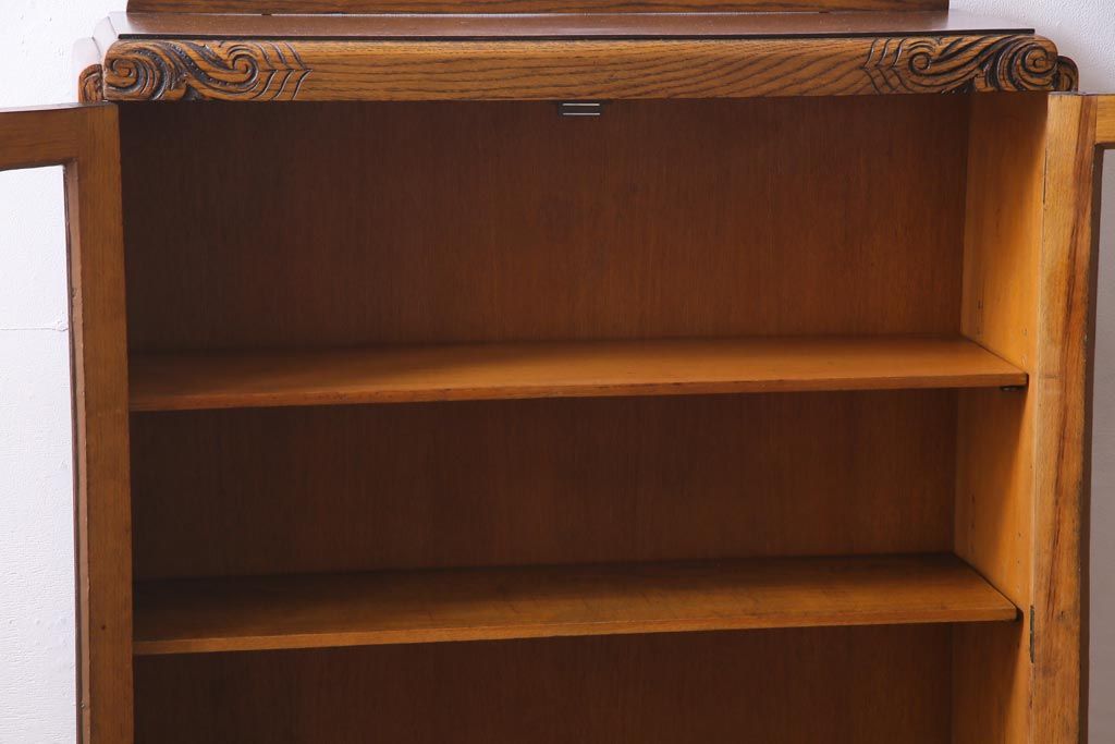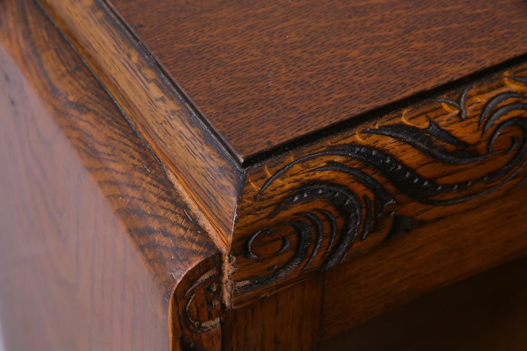 アンティーク家具 イギリスアンティーク オーク材 クラシカルな意匠がお洒落なブックケース(本箱、収納棚、飾り棚)