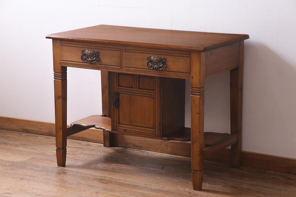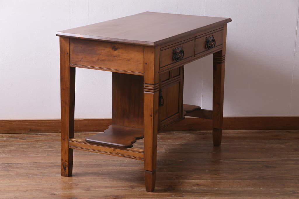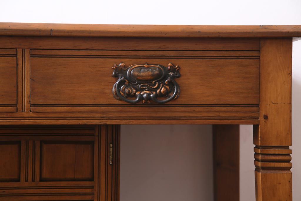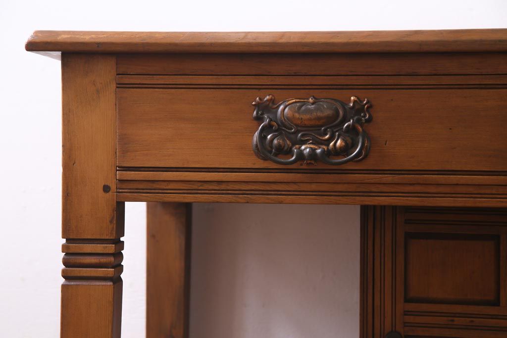 ラフジュ工房> デスク> ワークデスク > アンティーク家具 イギリスアンティーク 棚付き クラシックカントリーなパイン材製デスク(机、在宅ワーク、在宅用)