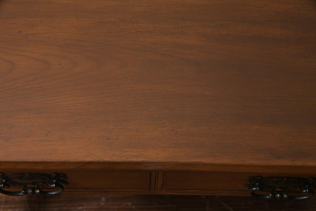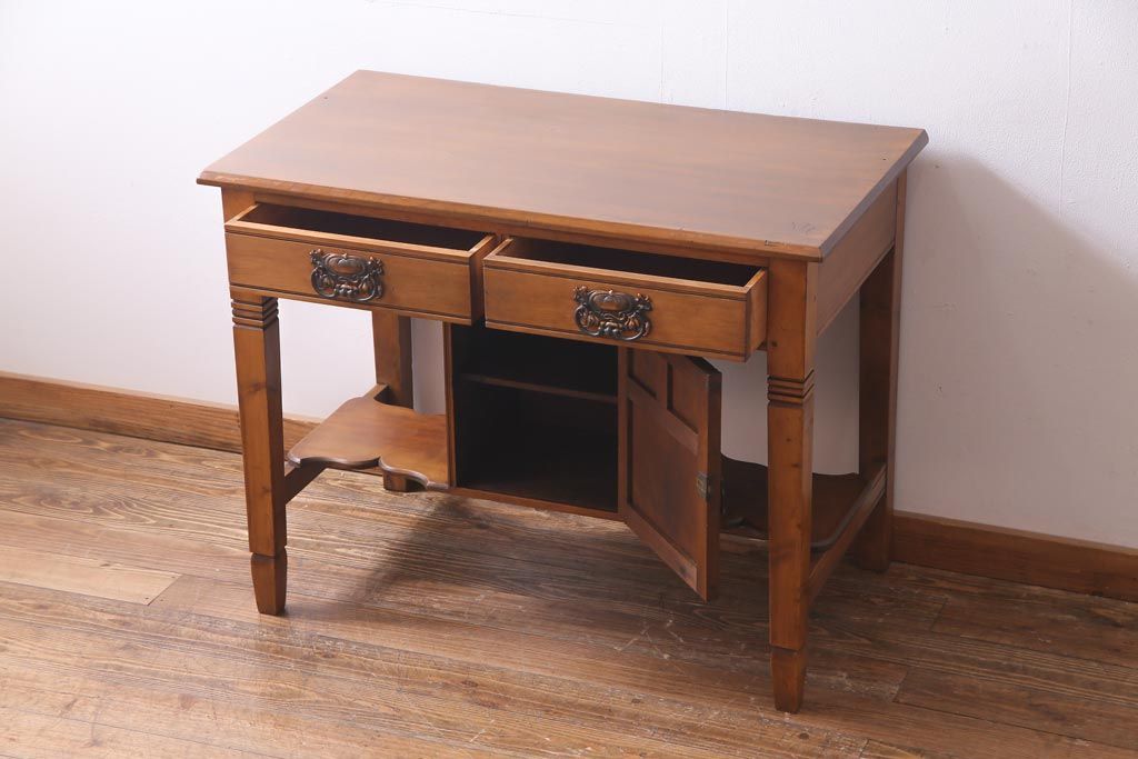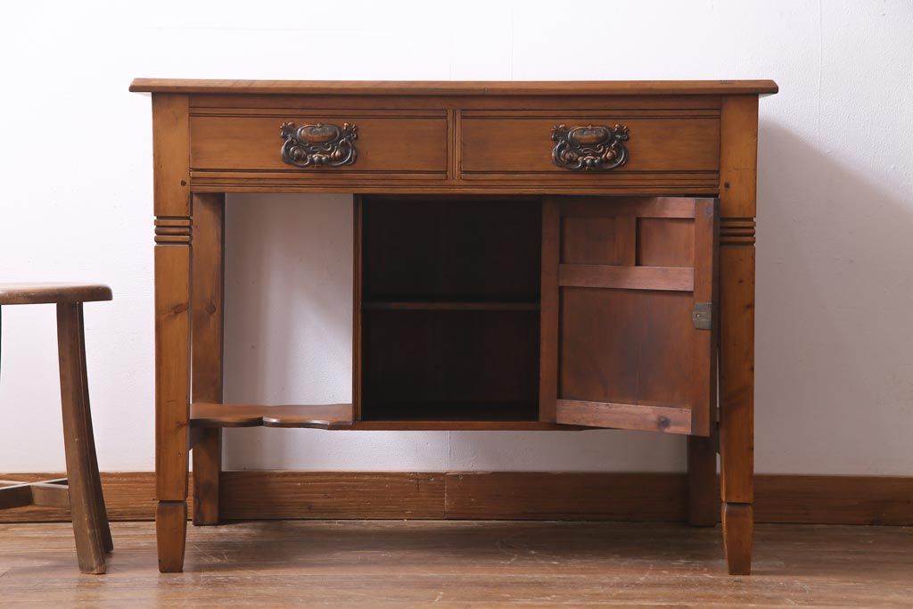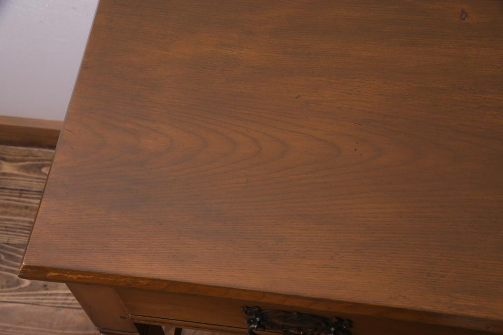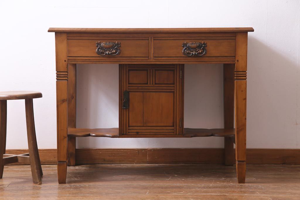 ラフジュ工房> デスク> ワークデスク > アンティーク家具 イギリスアンティーク 棚付き クラシックカントリーなパイン材製デスク(机、在宅ワーク、在宅用)