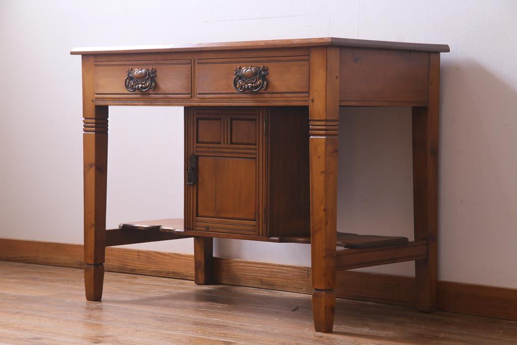 アンティーク家具 イギリスアンティーク 棚付き クラシックカントリーなパイン材製デスク(机、在宅ワーク、在宅用)
