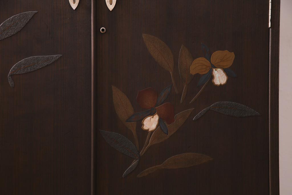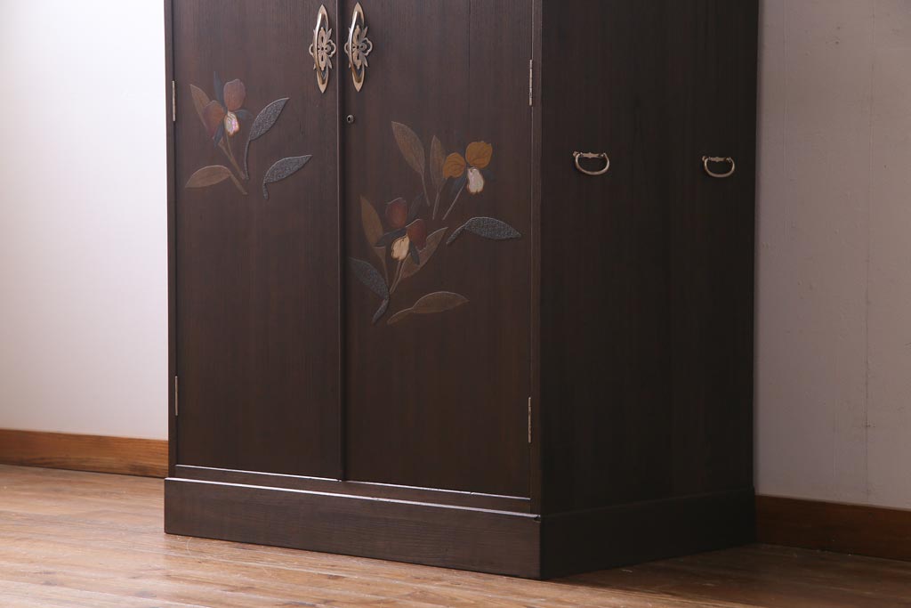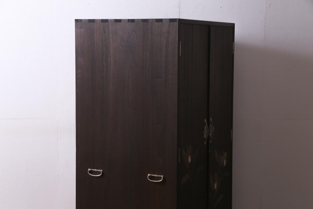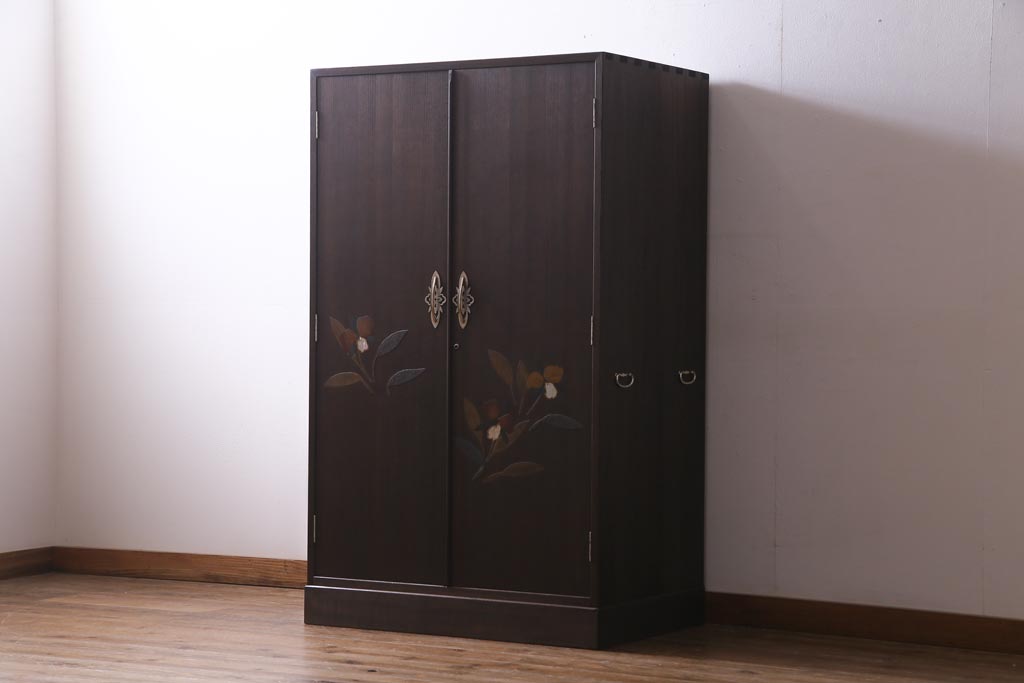 ヴィンテージ家具 ビンテージ 総桐材 漆絵 しっとりとした雰囲気が品のあるワードローブ(洋服タンス)