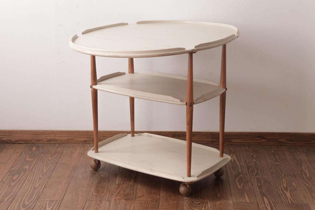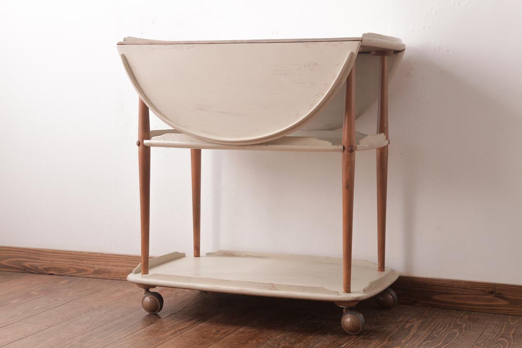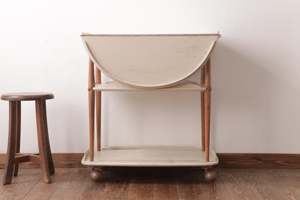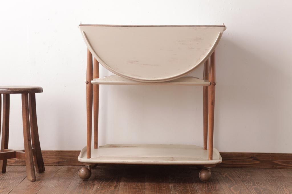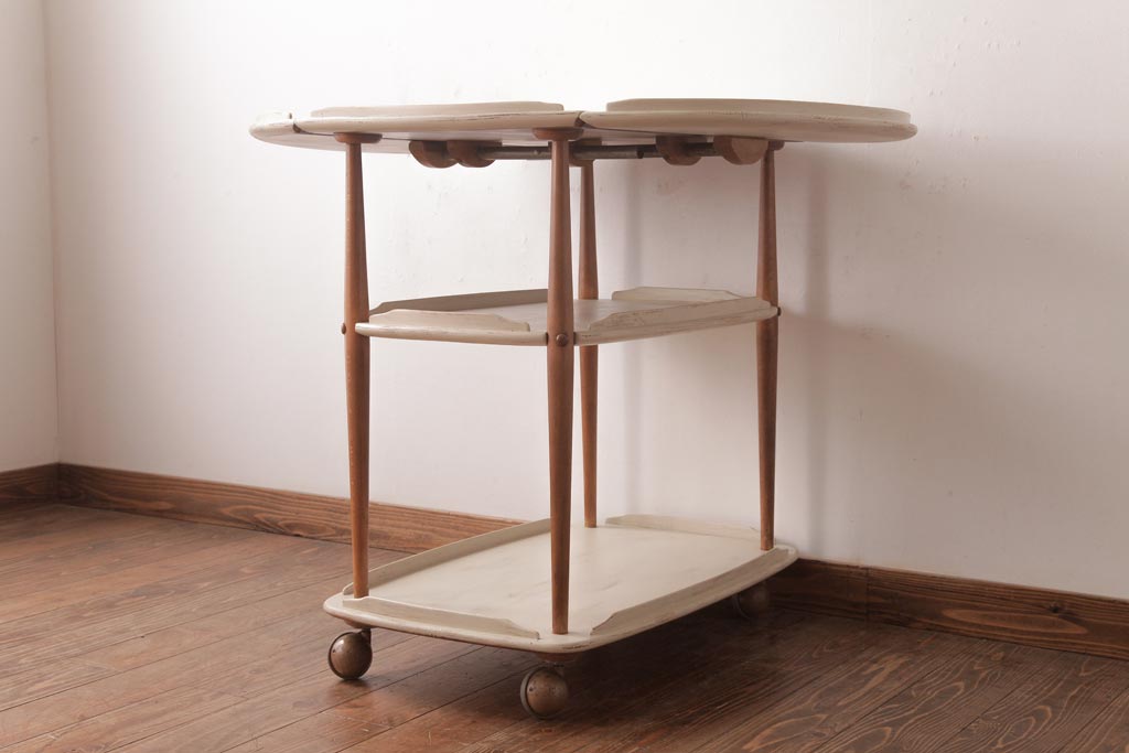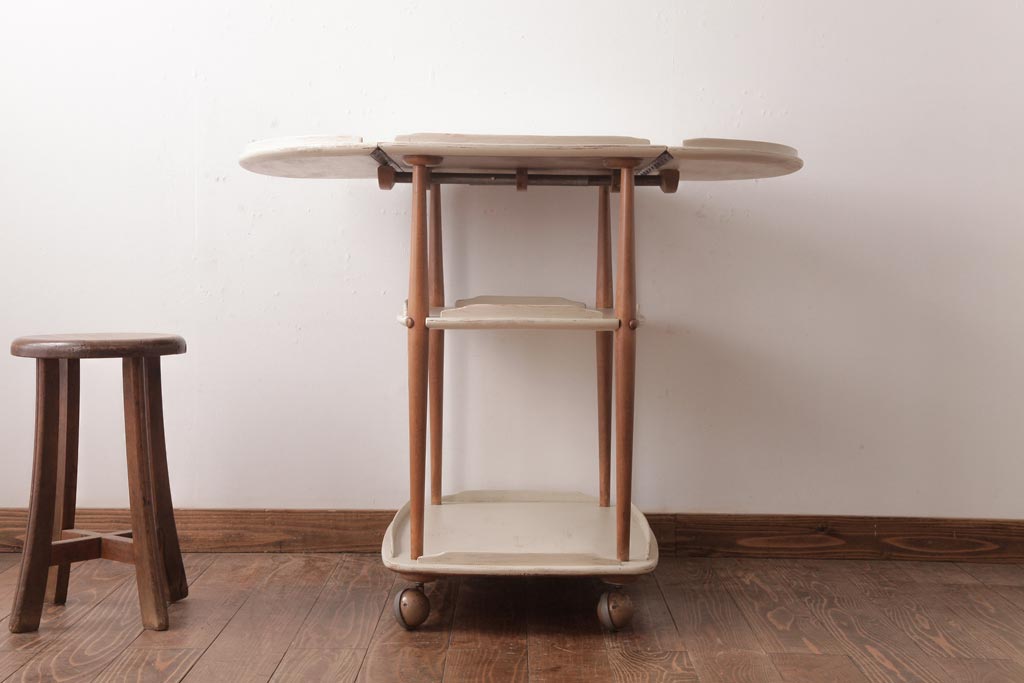 ヴィンテージ家具 イギリスビンテージ ERCOL(アーコール) ナチュラルなペイントのバタフライトロリー(キッチンワゴン、キャスターワゴン)