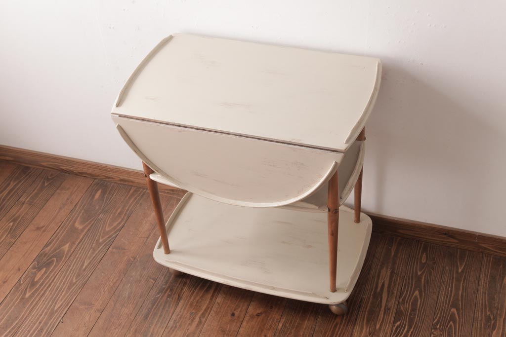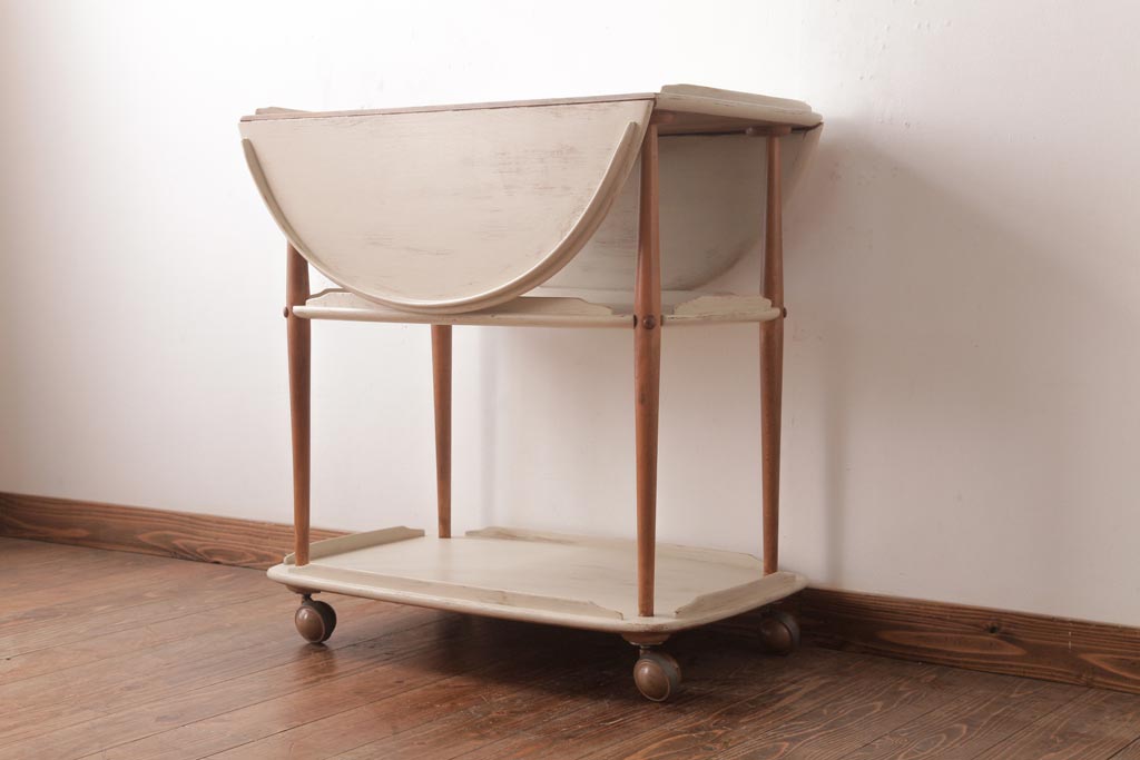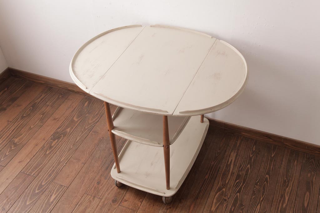 ラフジュ工房> オープンラック・シェルフ> ワゴン > ヴィンテージ家具 イギリスビンテージ ERCOL(アーコール) ナチュラルなペイントのバタフライトロリー(キッチンワゴン、キャスターワゴン)
