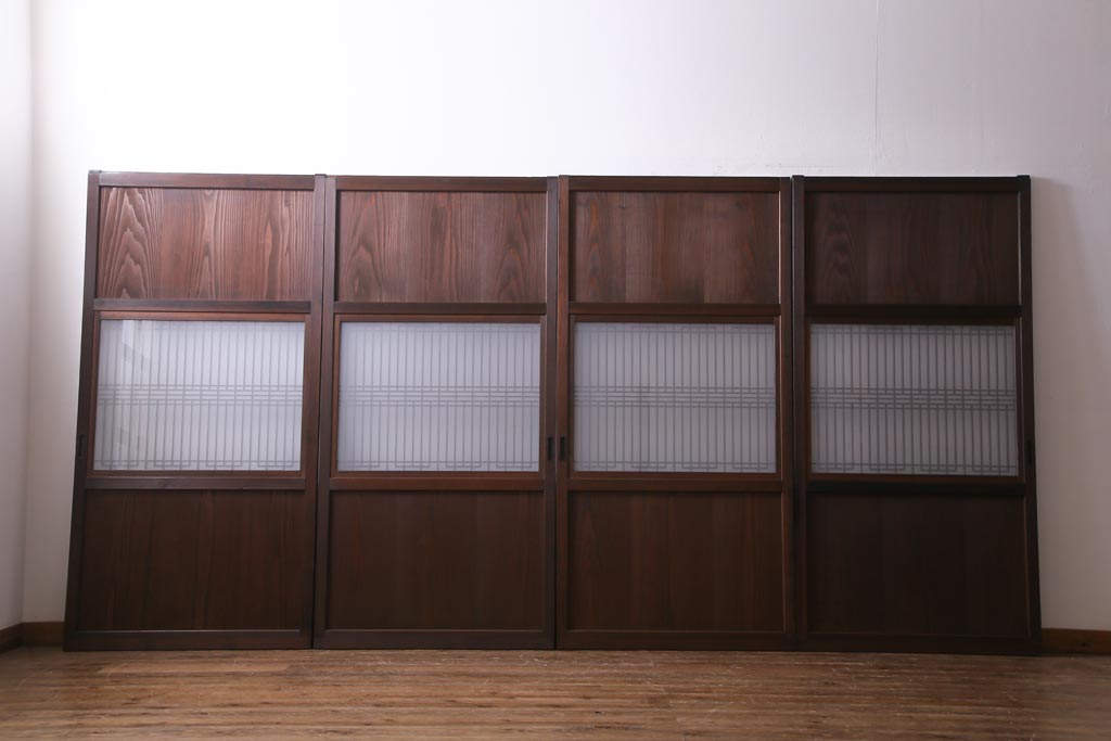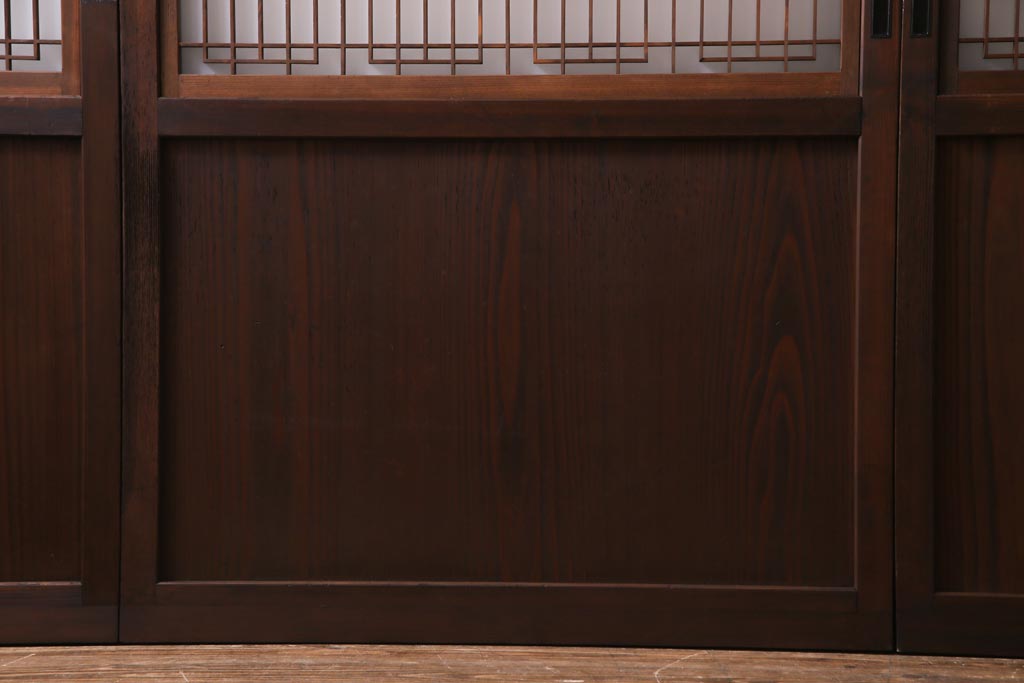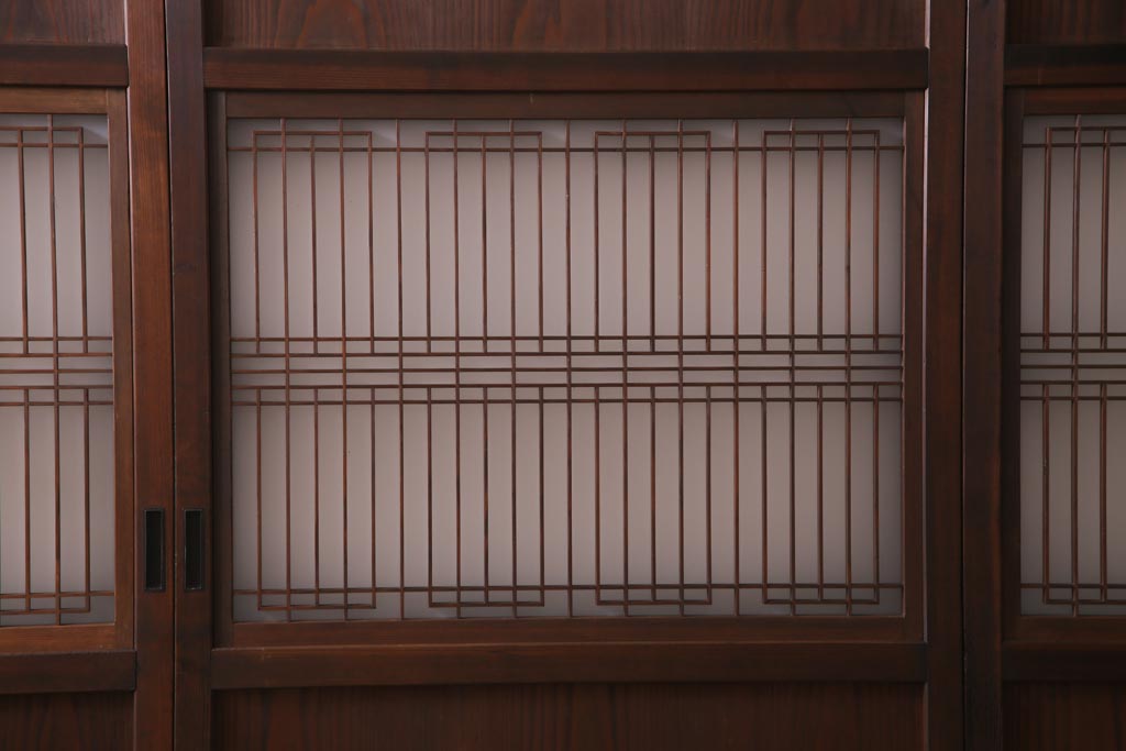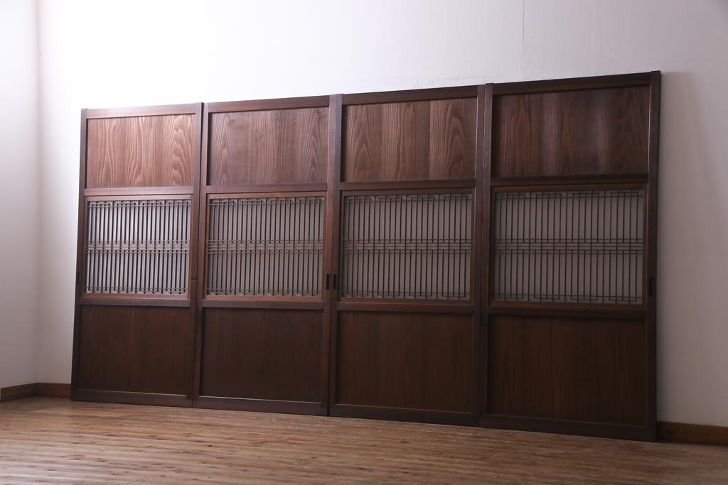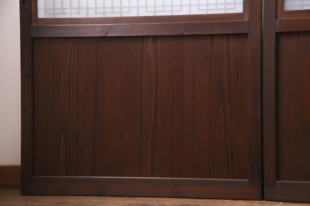 和製アンティーク 昭和初期 杉材 組子入り ダイナミックな木目が魅力的な板戸(引き戸、建具)4枚セット