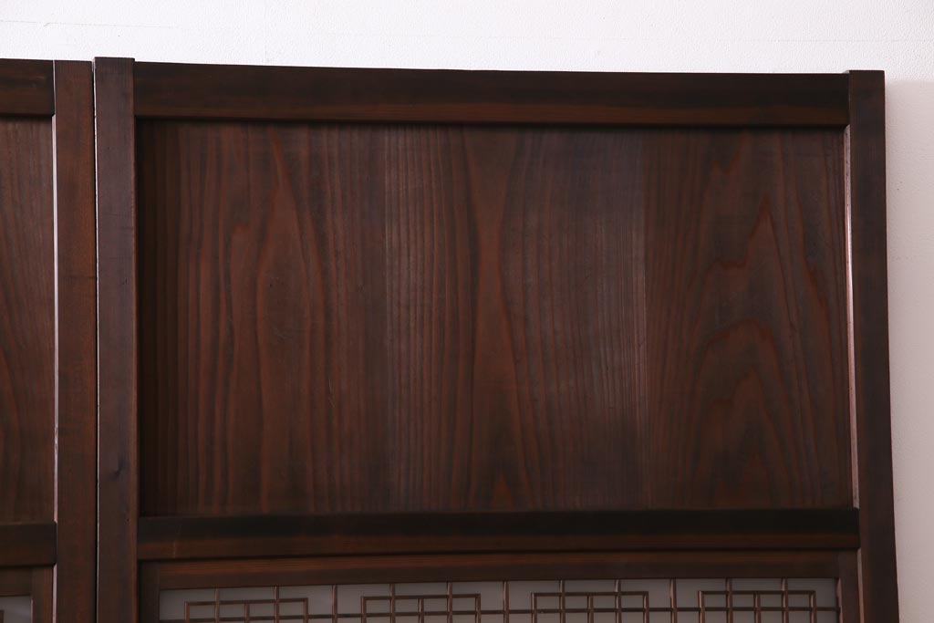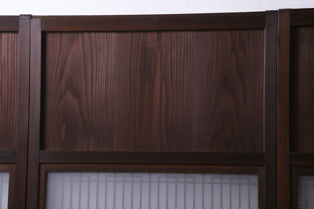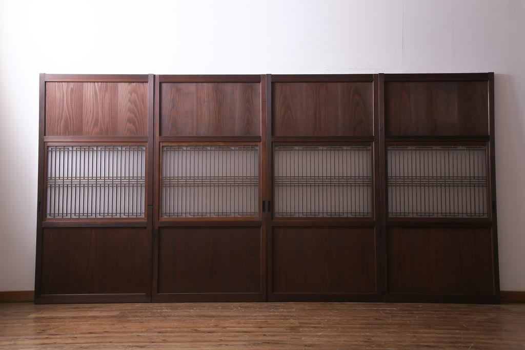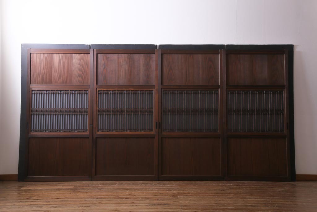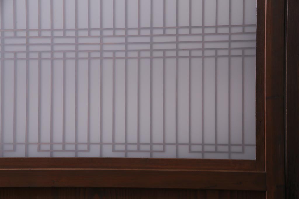 和製アンティーク 昭和初期 杉材 組子入り ダイナミックな木目が魅力的な板戸(引き戸、建具)4枚セット