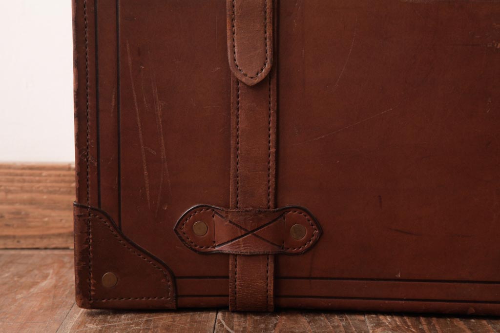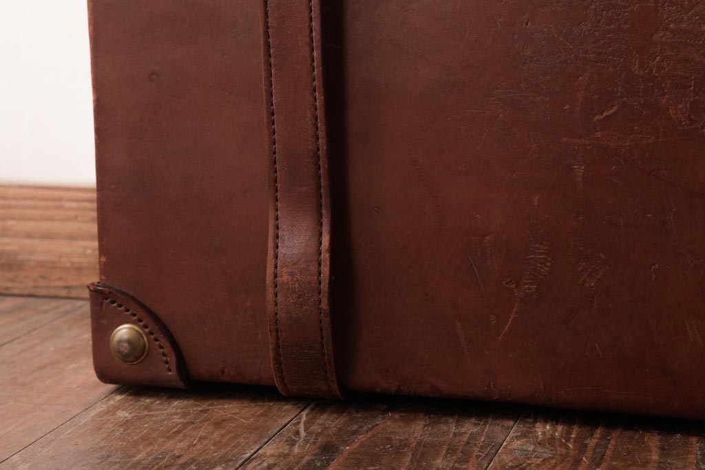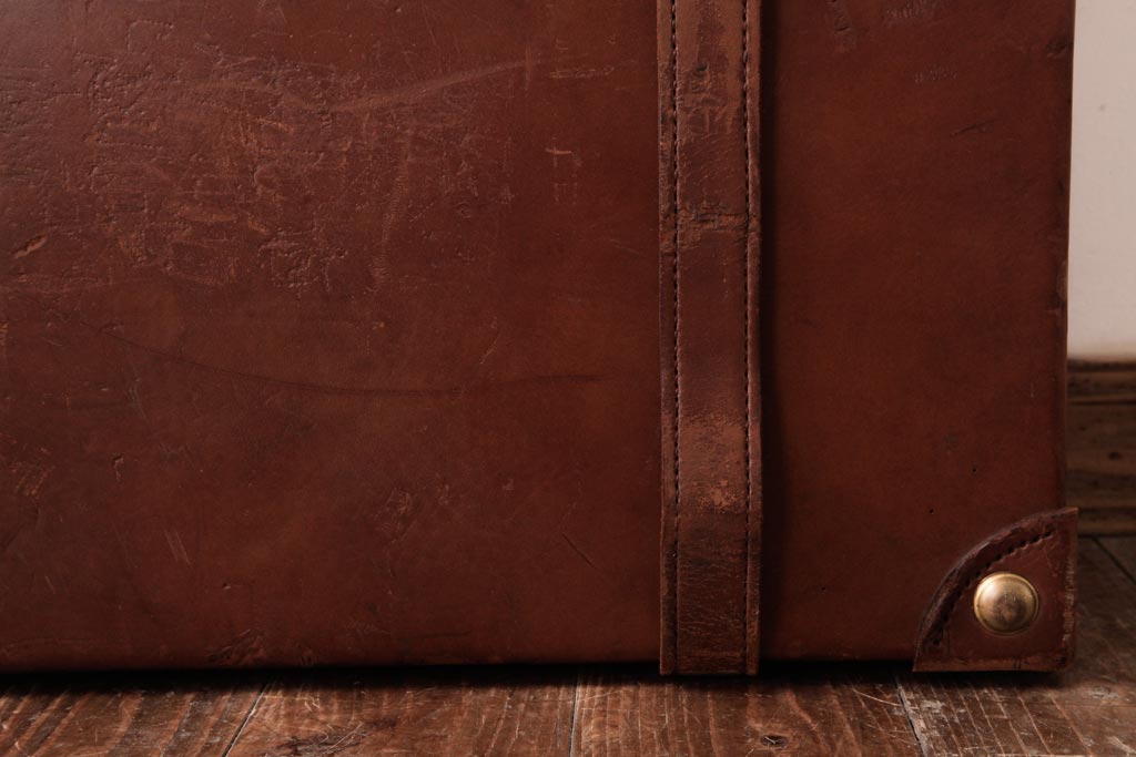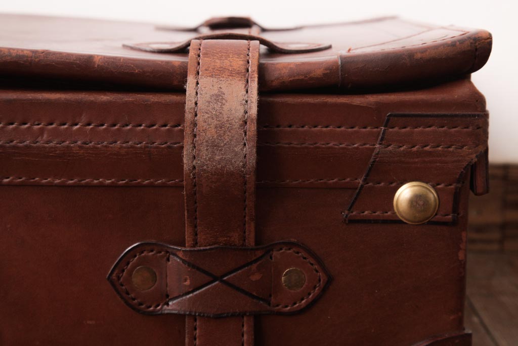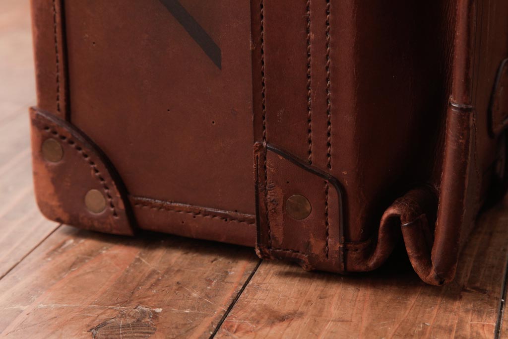 ラフジュ工房> 店舗什器 > 和製ビンテージ 本革 ヴィンテージスタイルを盛り上げる古い趣のトランク(収納、ディスプレイ)