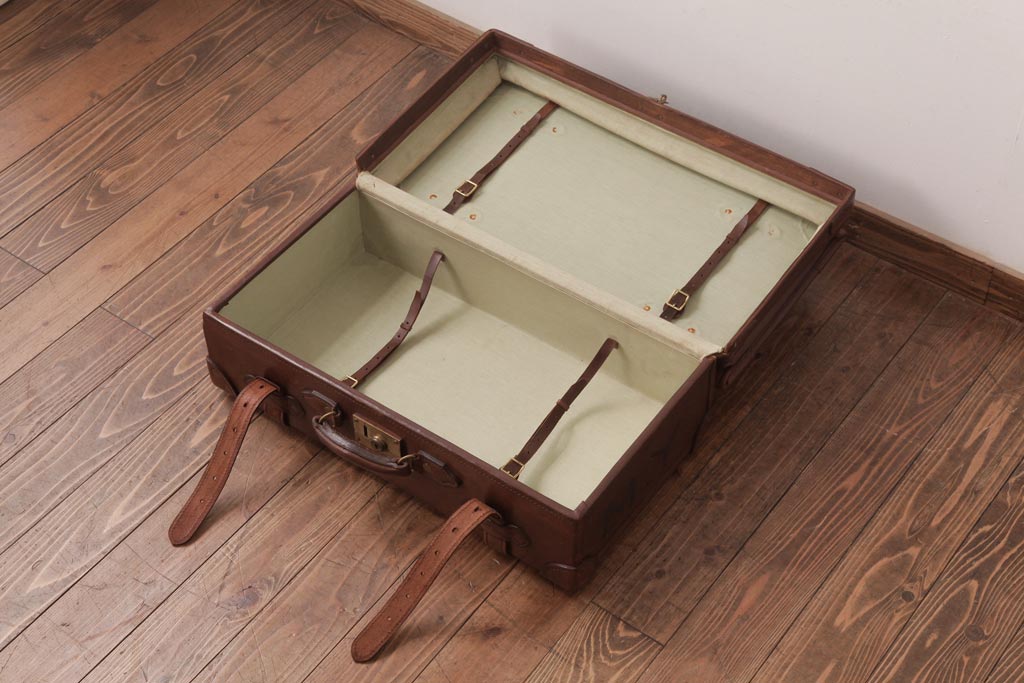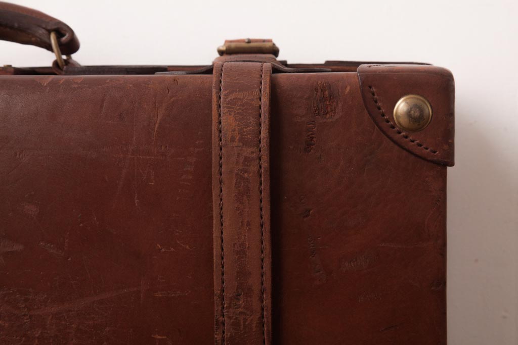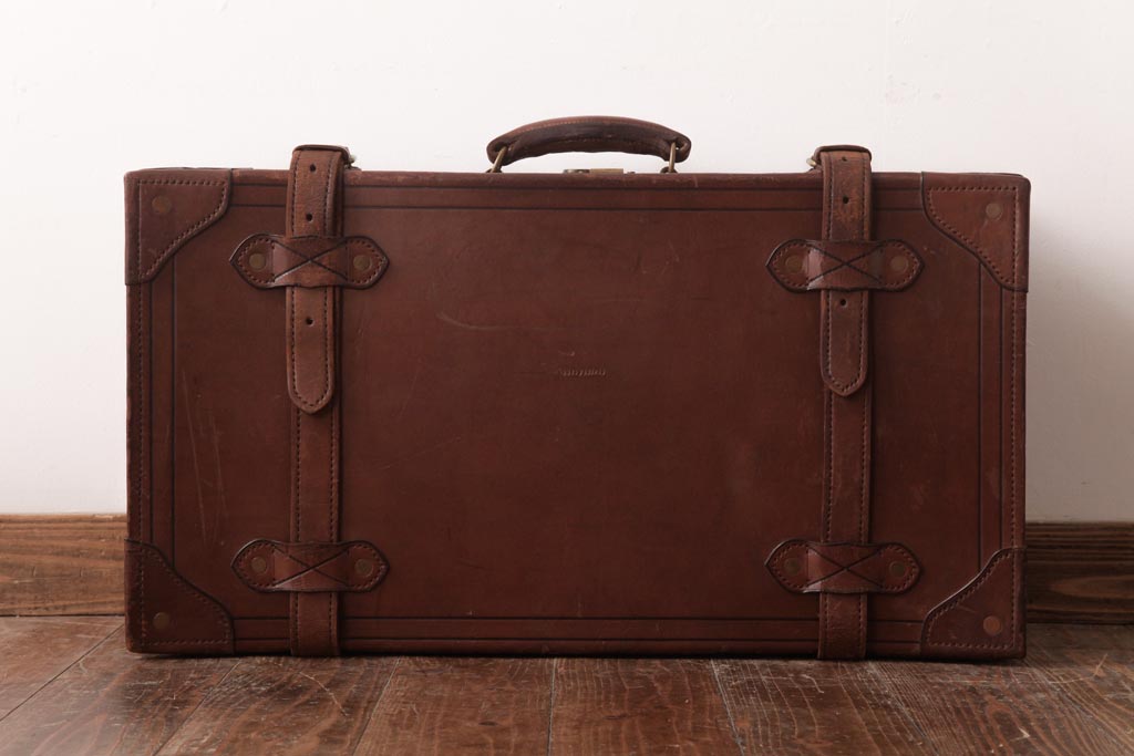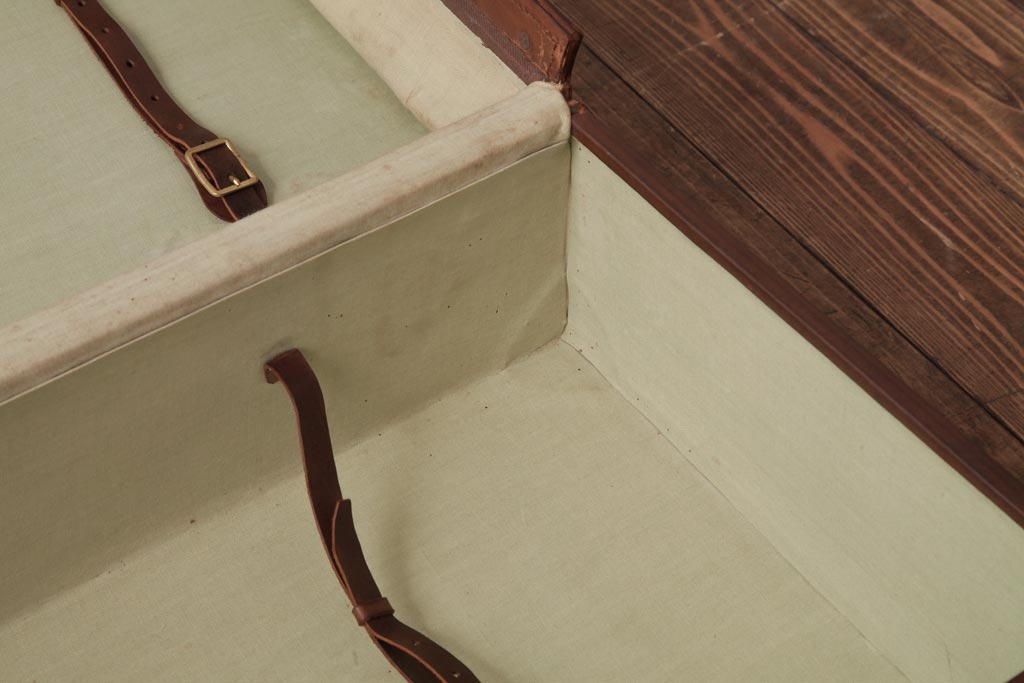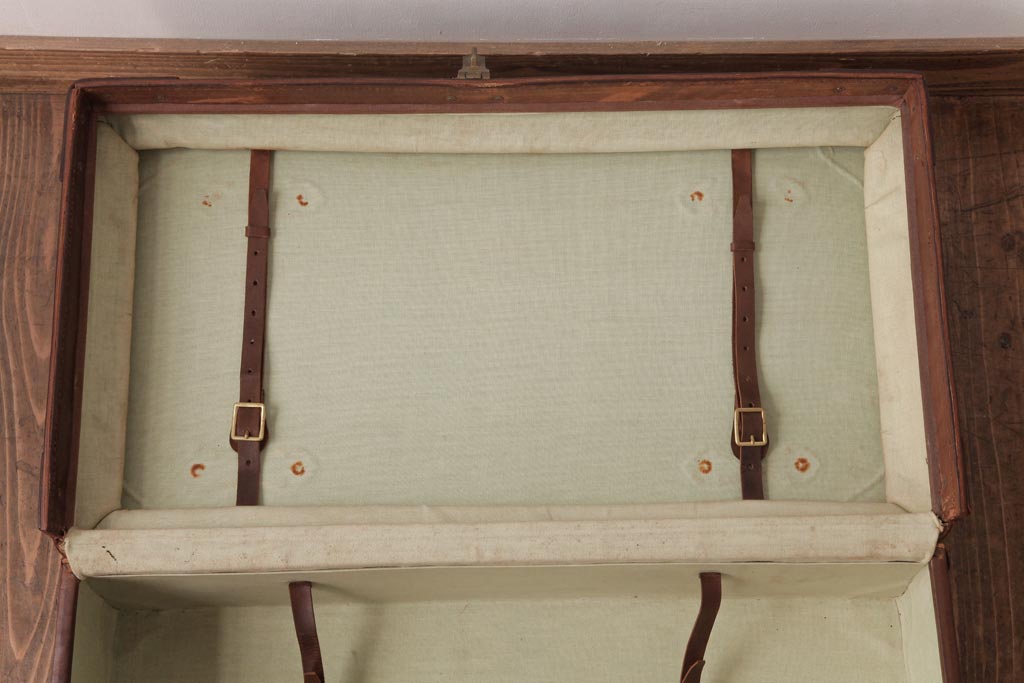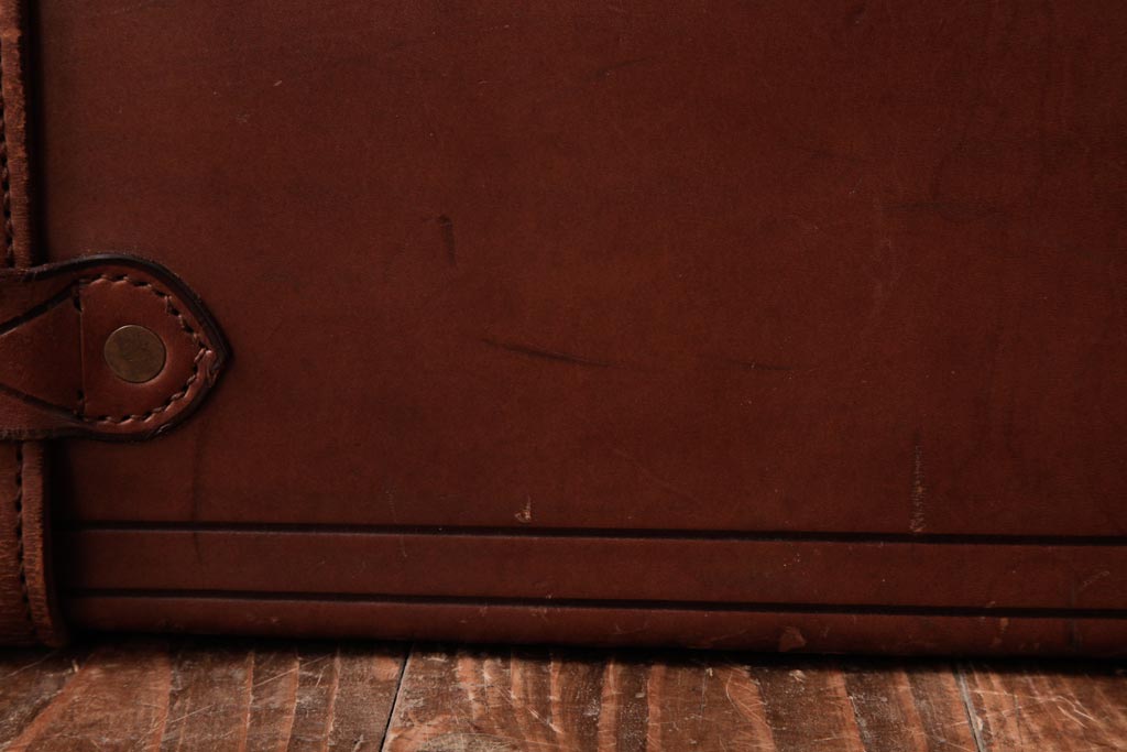 ラフジュ工房> 店舗什器 > 和製ビンテージ 本革 ヴィンテージスタイルを盛り上げる古い趣のトランク(収納、ディスプレイ)