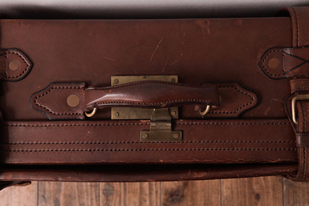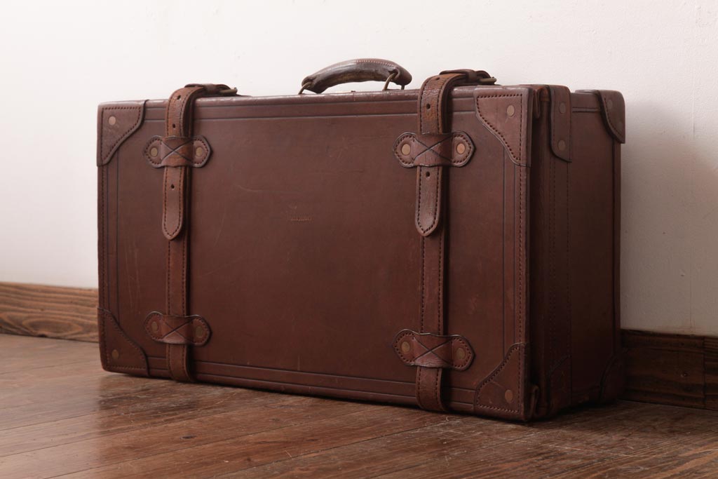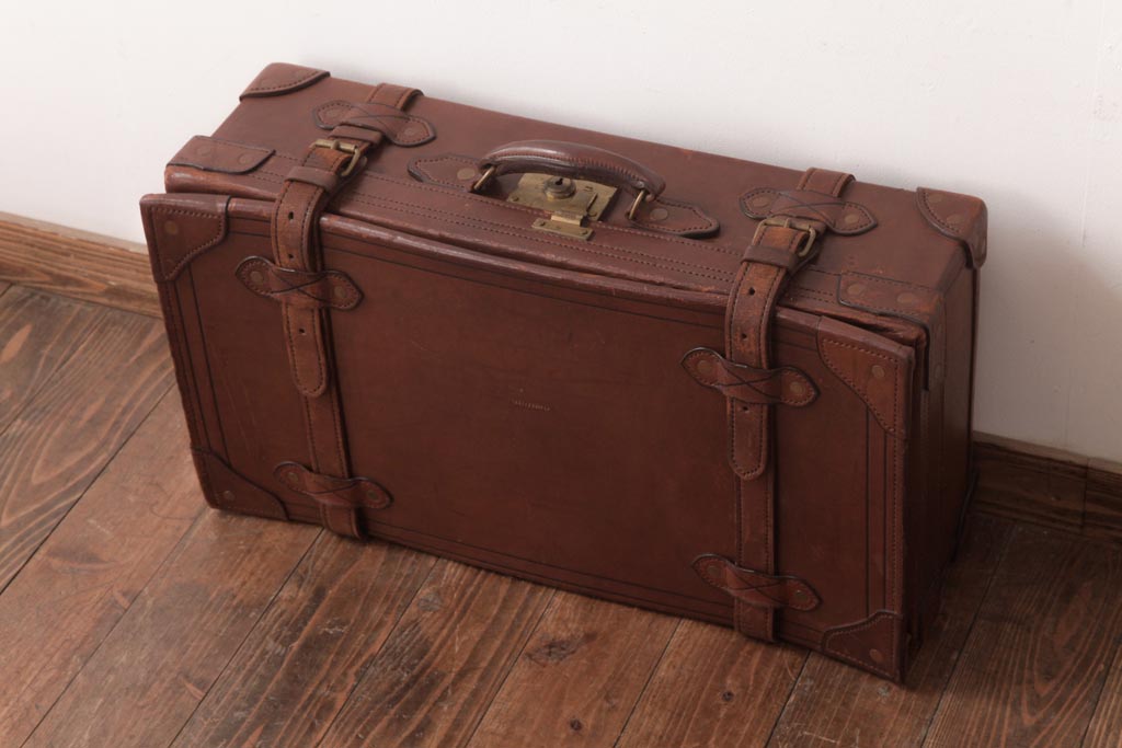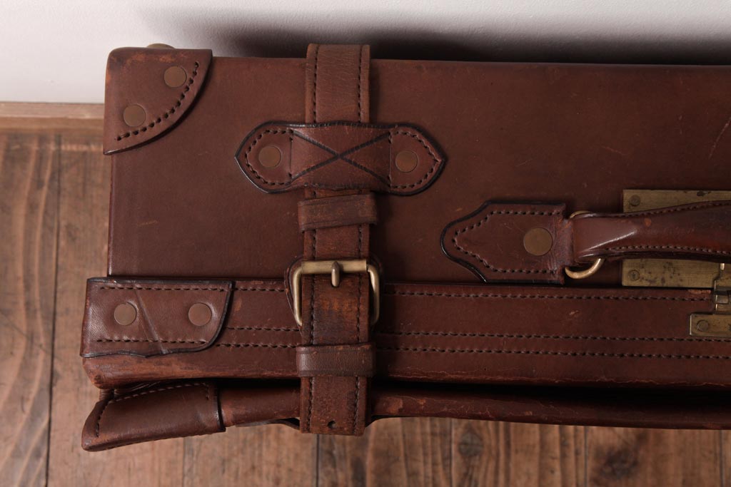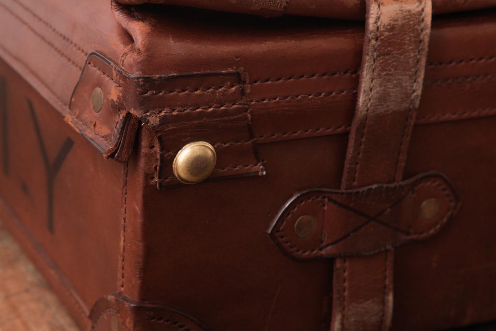 和製ビンテージ 本革 ヴィンテージスタイルを盛り上げる古い趣のトランク(収納、ディスプレイ)